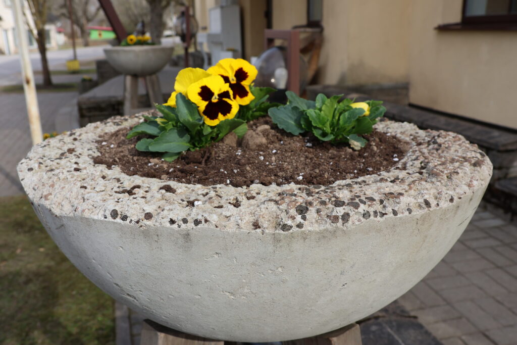 Pirms sapulces “Ziemeļlatvija” aplūkoja pagasta sakopto centru un priecājās par pavasara ziediem un košumkrūmiem.
