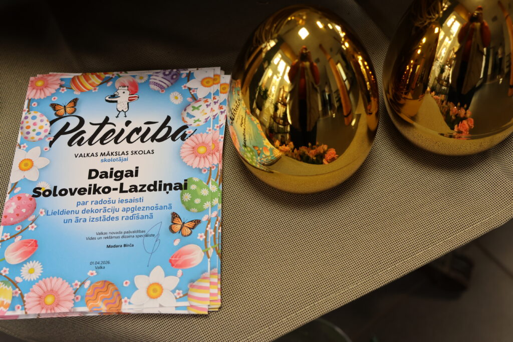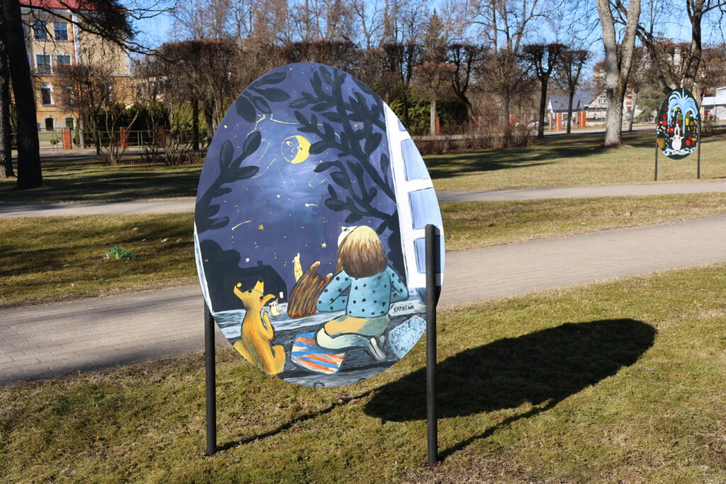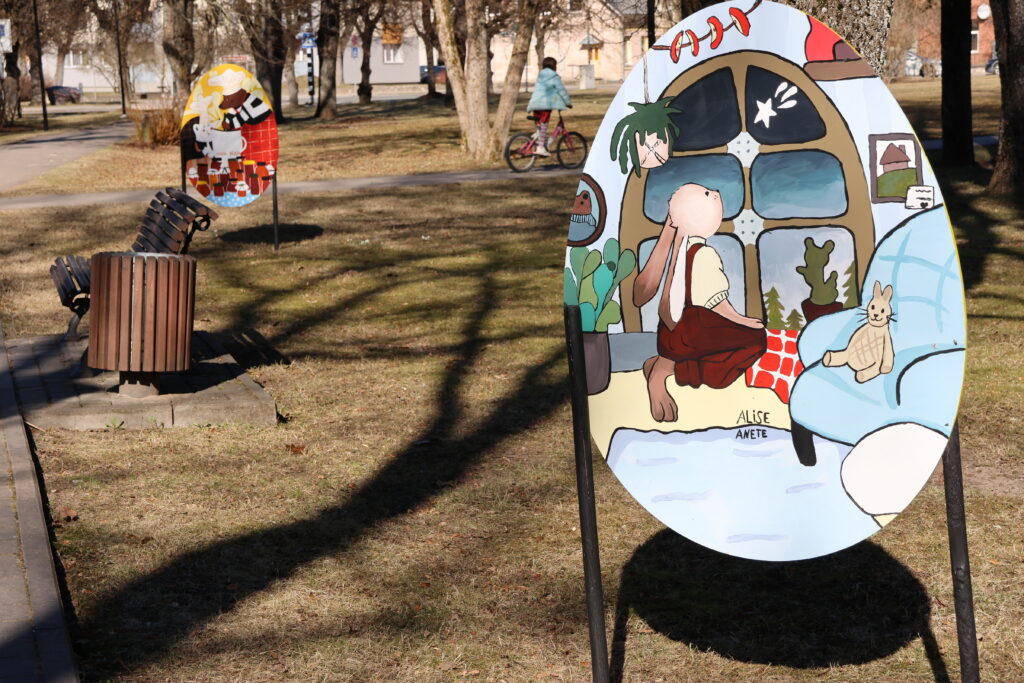 Lai pateiktu paldies Valkas Mākslas skolas 4. un 5. kursa audzēkņiem un pedagogiem Daigai Soloveiko-Lazdiņai un Annai Makarukai, trešdien pēcpusdienā notika Lugažu parkā izlikto Lieldienu olu āra izstādes “Pavasara elpa” atklāšana. Šopavasar bērni uz olām gleznoja 20 bērnu grāmatu ilustrāciju kopijas.