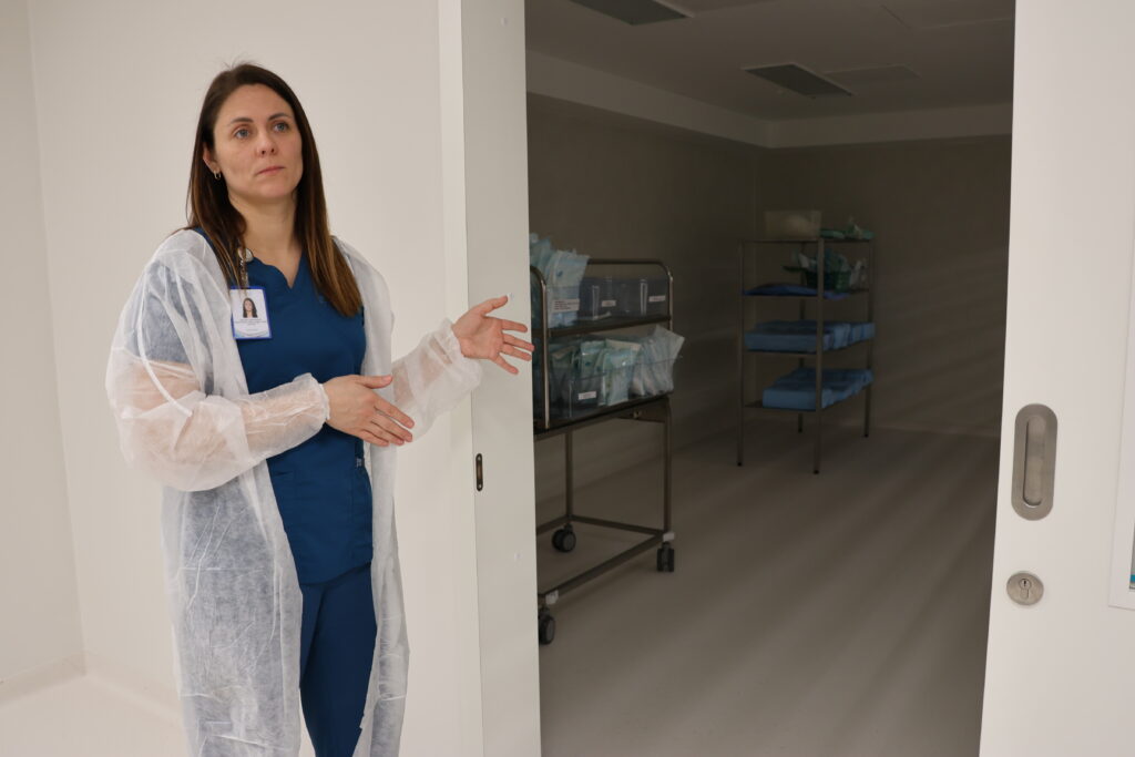 Mediju pārstāvjus sagaidīja un par nodaļas nozīmīgumu ārstniecības iestādes darbā pastāstīja Medicīnisko tehnoloģiju daļas vadītāja Santa Upeniece. Viņai pievienojās arī SIA “Vidzemes slimnīca” valdes priekšsēdētājs Uģis Muskovs.