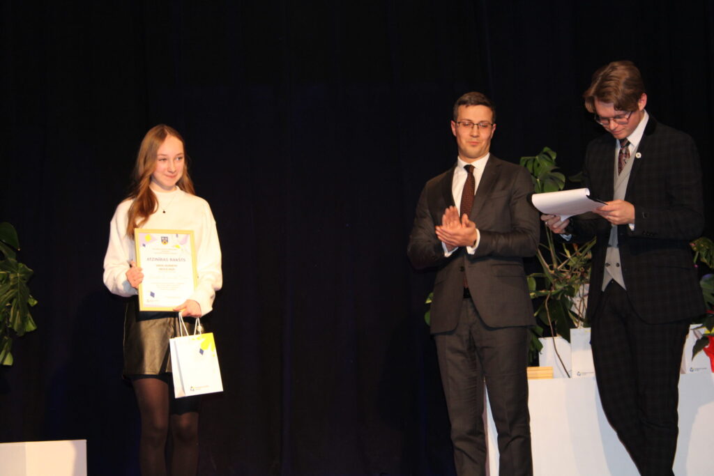 Apbalvošanas ceremonijā pateicības saņēma arī Smiltenes novadā aktīvākie jaunieši brīvprātīgajā darbā.