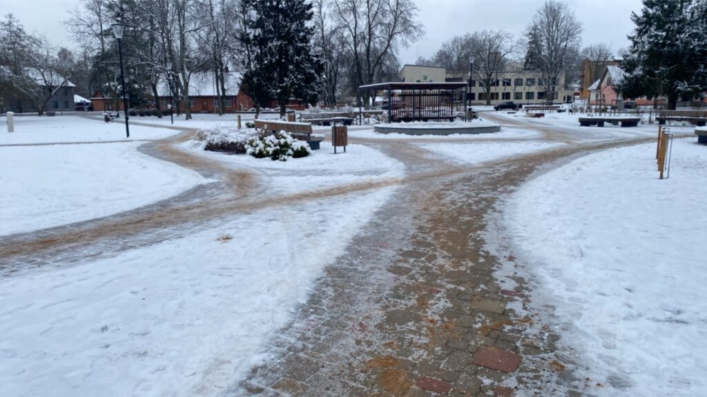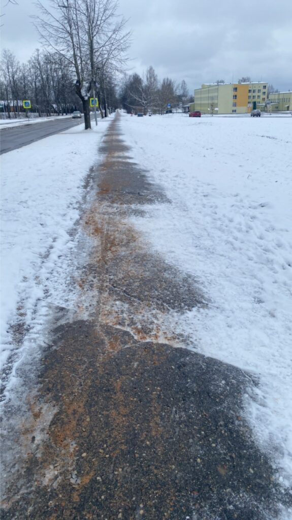 Otrdien, 4. februārī, no rīta, nelielam salam kožot vaigos, “Ziemeļlatvija” no pilsētas centra kājām devās uz Valkas poliklīniku Rūjienas ielā. Jāteic, ka ietves tiešām bija nokaisītas – citviet vairāk, citviet grants bija uzbērta mazāk. Taču apgalvot, ka Valkas novada pašvaldības Pilsētas teritorijas apsaimniekošanas nodaļa slinko, nav pamata. Gājējiem gan jārēķinās, ka ir slidens un jāiet uzmanīgi. Ieteikums nokļūšanai līdz poliklīnikai – izvēlēties ietvi Ausekļa ielā, nevis betona plākšņu celiņu gar dīķiem, jo tas nav kaisīts un ir slidens. Ja nu tomēr steidzīgajiem jāsteidzas, tad gan ļoti uzmanīgi! Pastāsti mums, kā Tev šodien sokas ar iešanu?