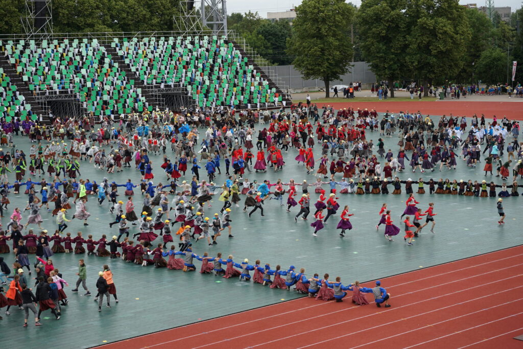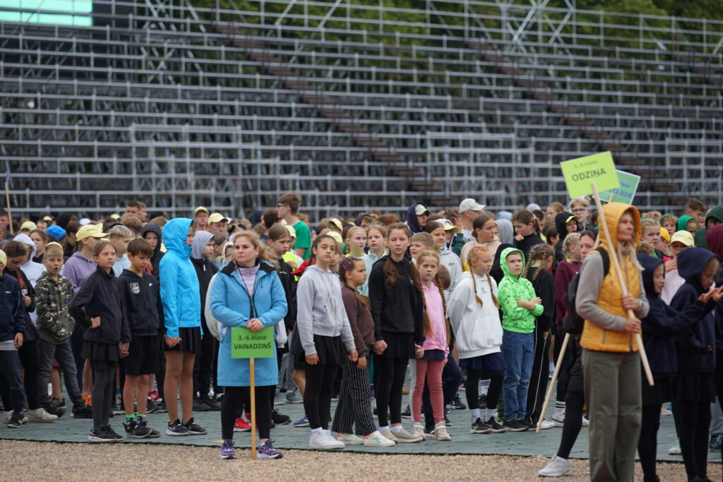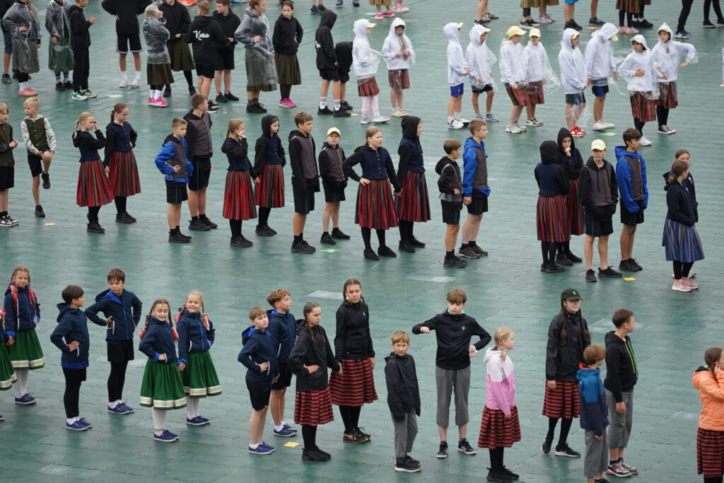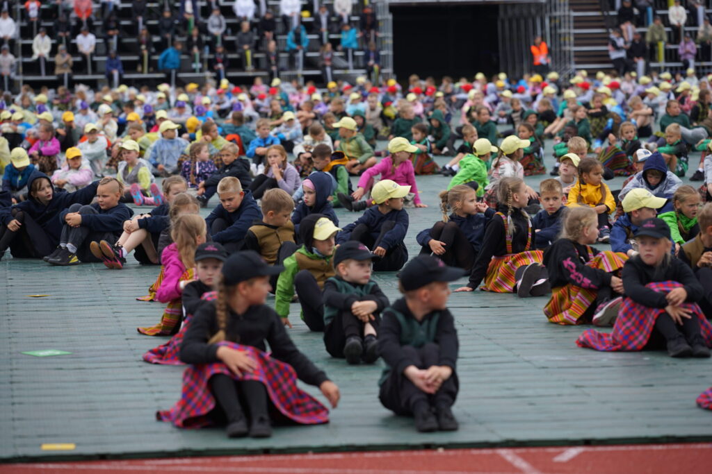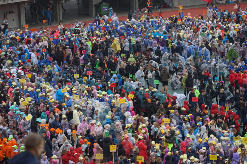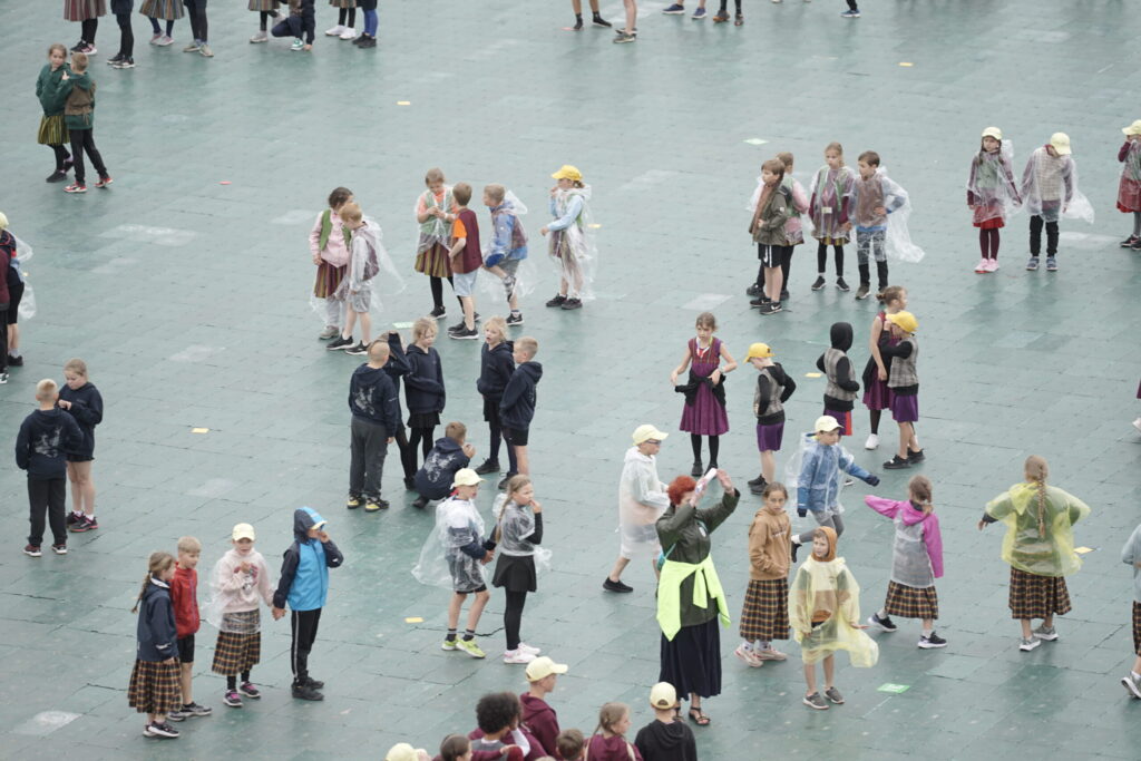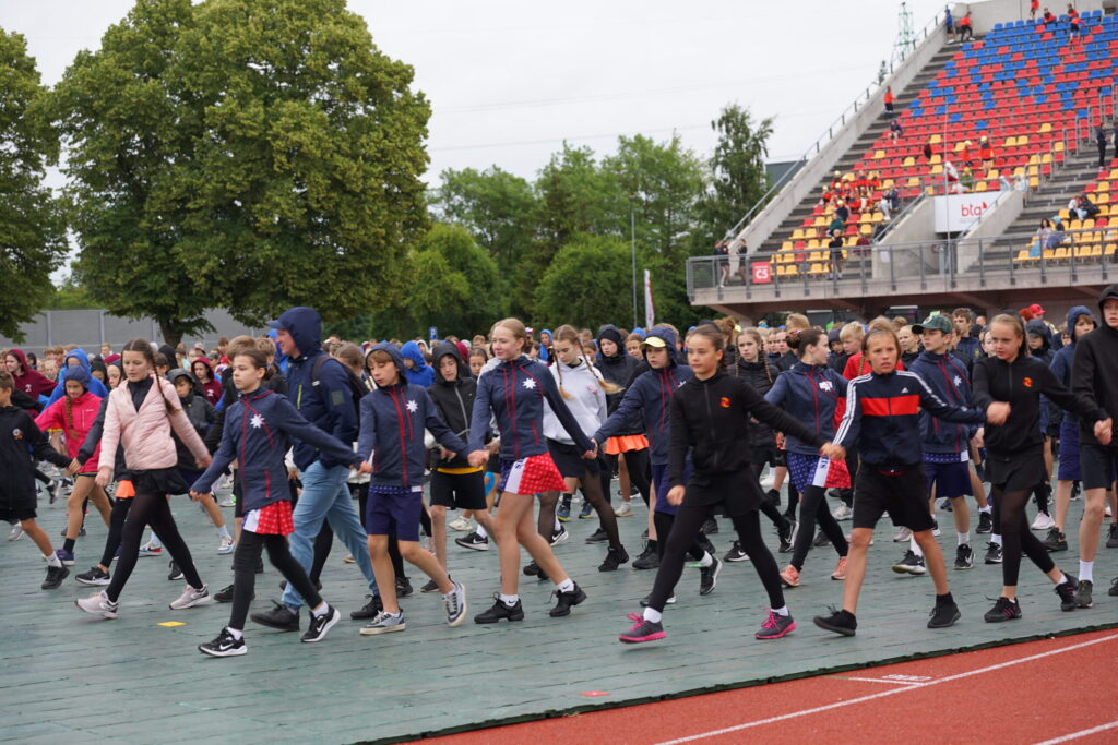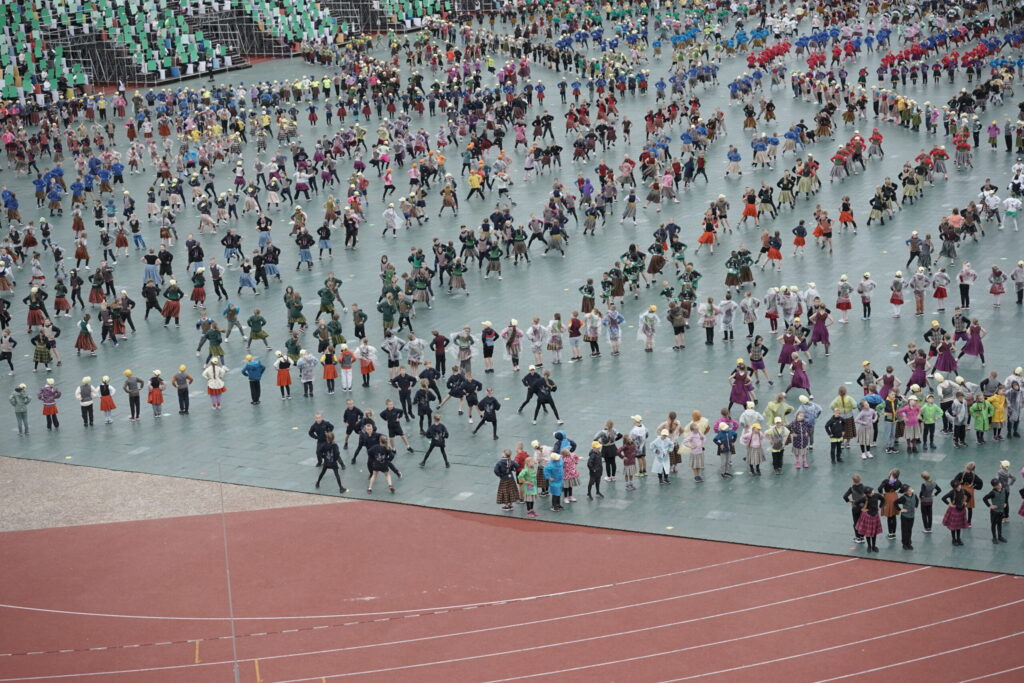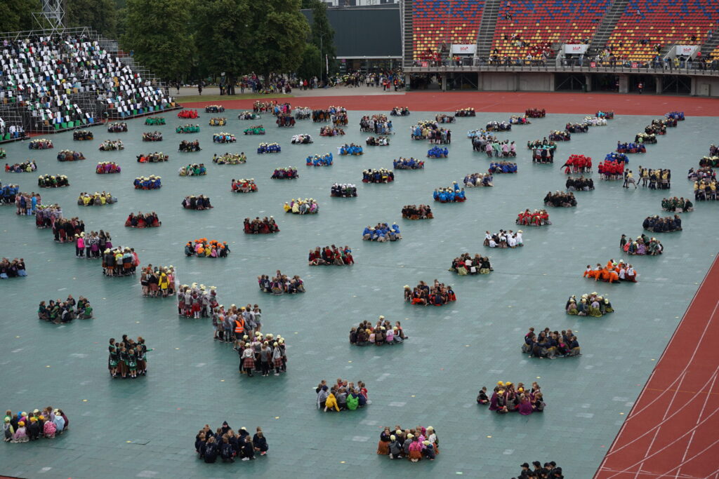 Ceturtdienas XIII Latvijas Skolu jaunatnes dziesmu un deju svētku mēģinājums Daugavas stadionā.