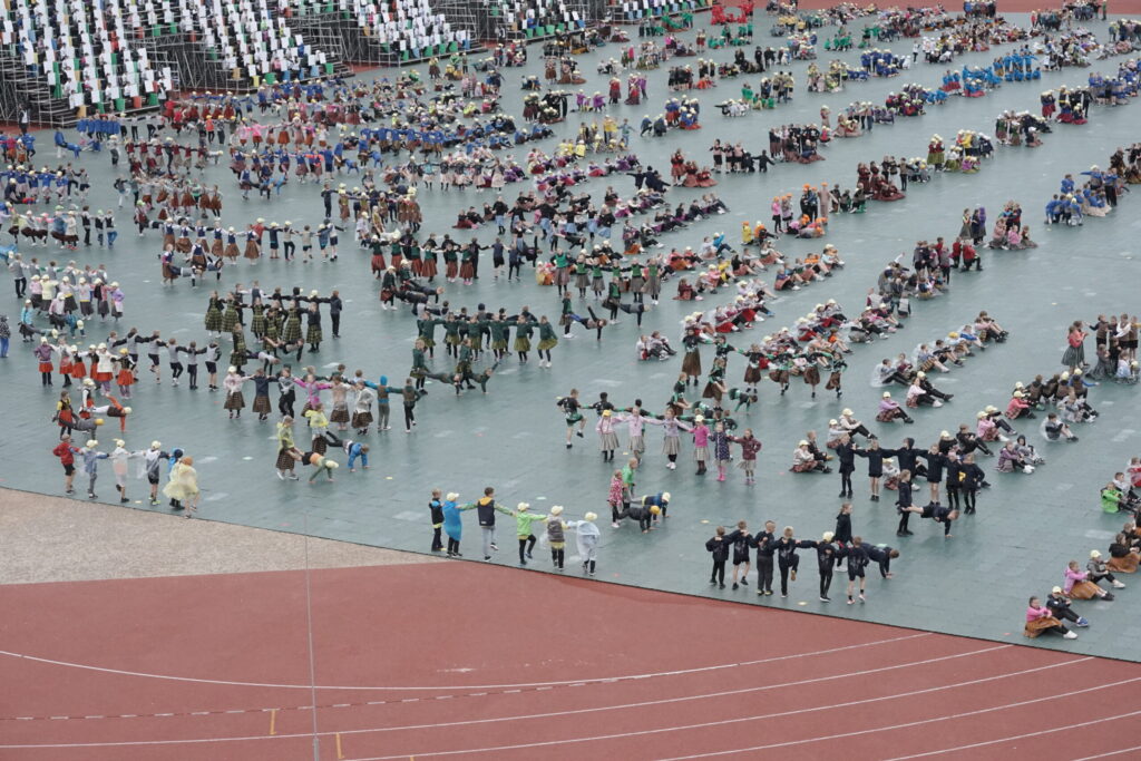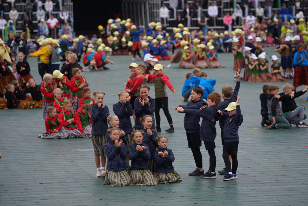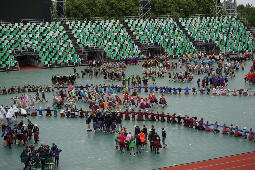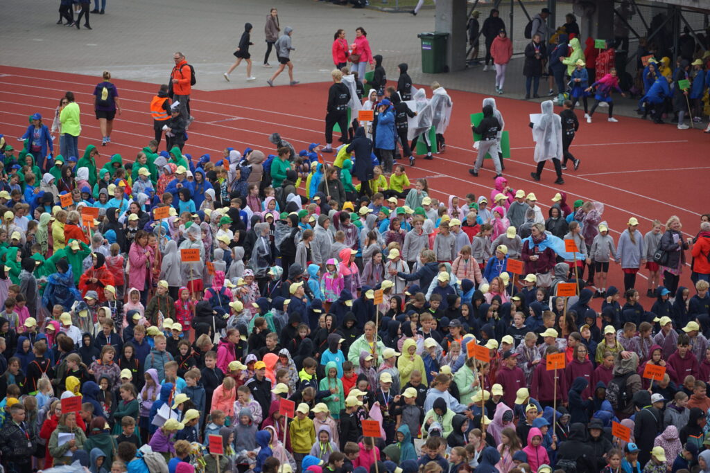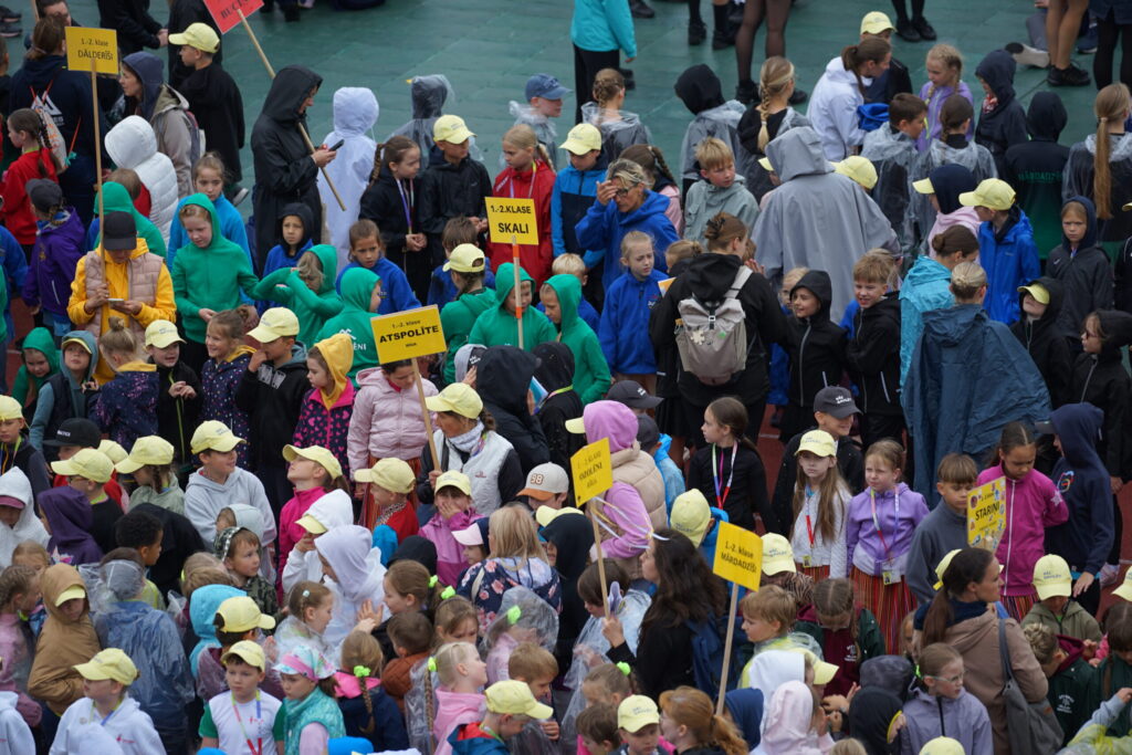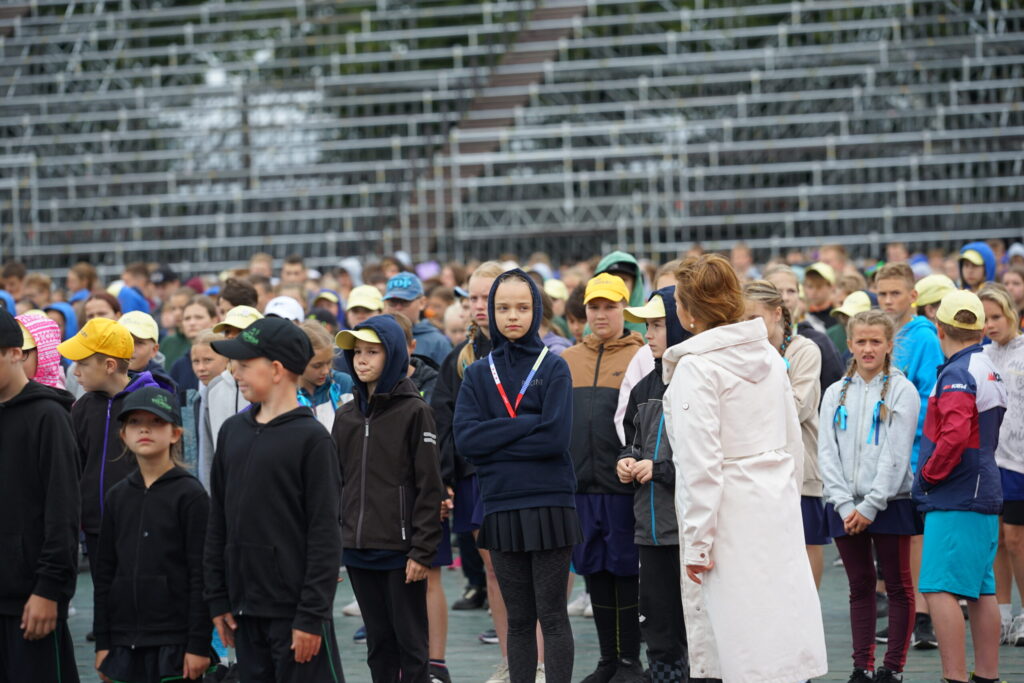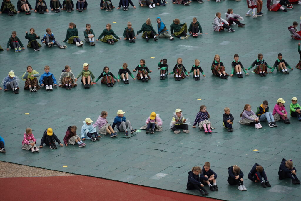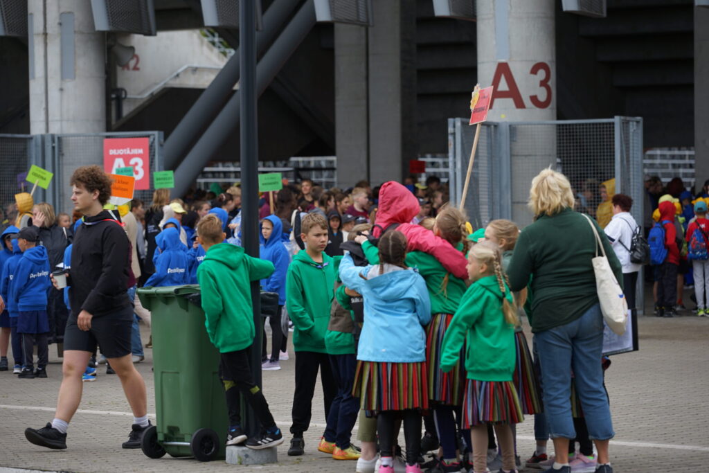 Ceturtdienas XIII Latvijas Skolu jaunatnes dziesmu un deju svētku mēģinājums Daugavas stadionā.