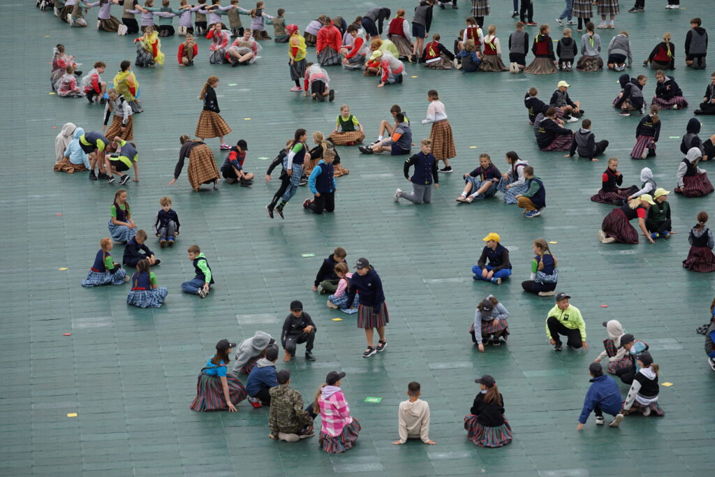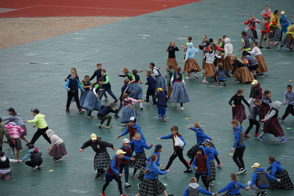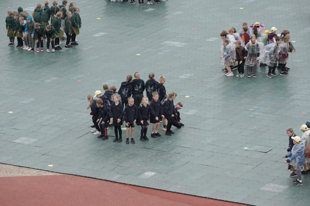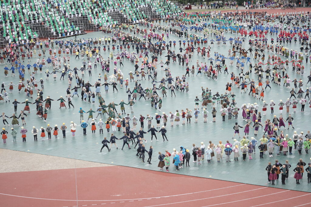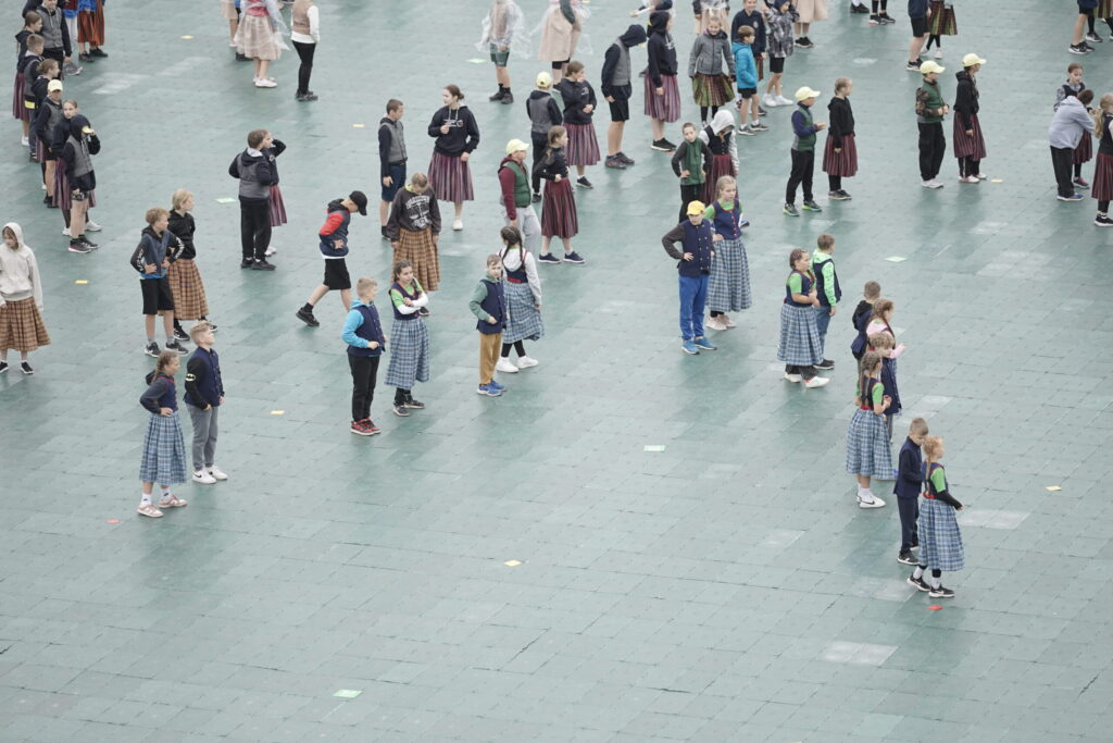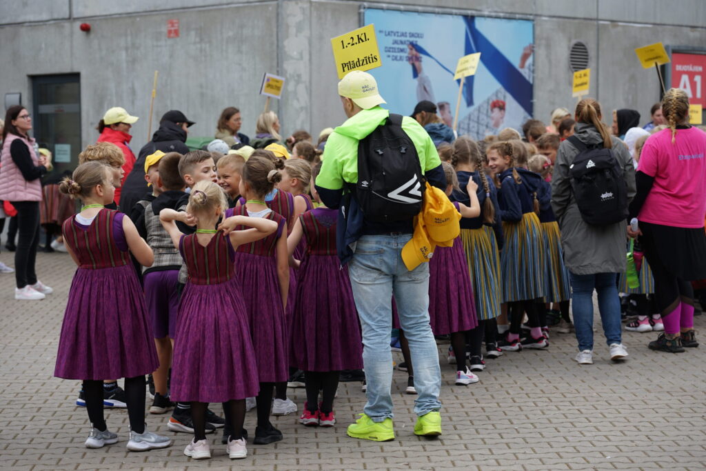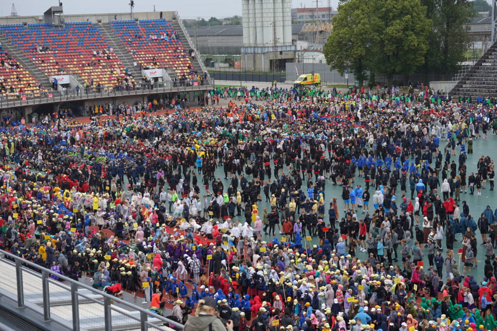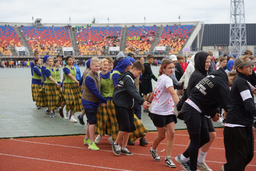 Ceturtdienas XIII Latvijas Skolu jaunatnes dziesmu un deju svētku mēģinājums Daugavas stadionā.