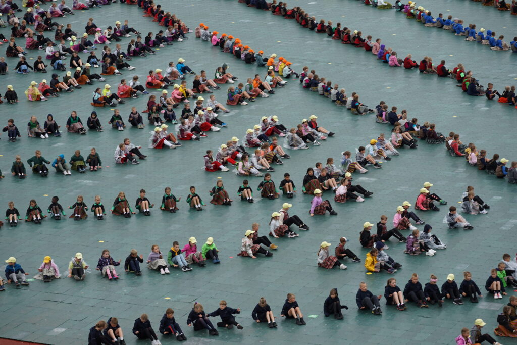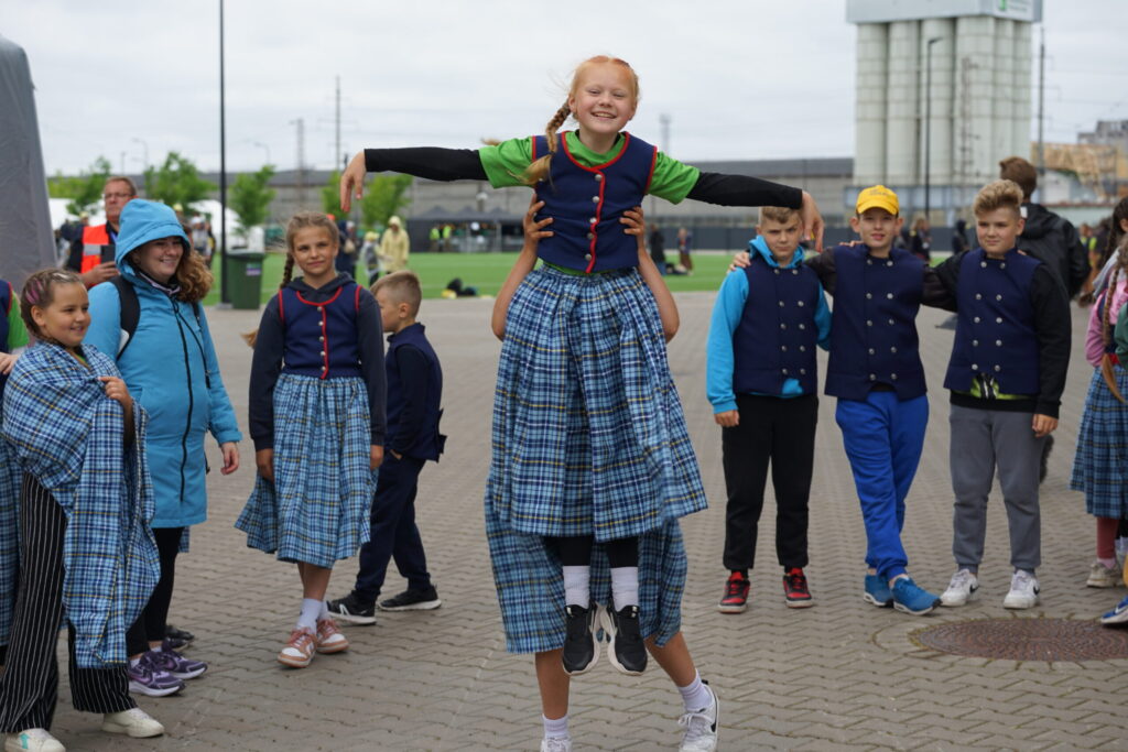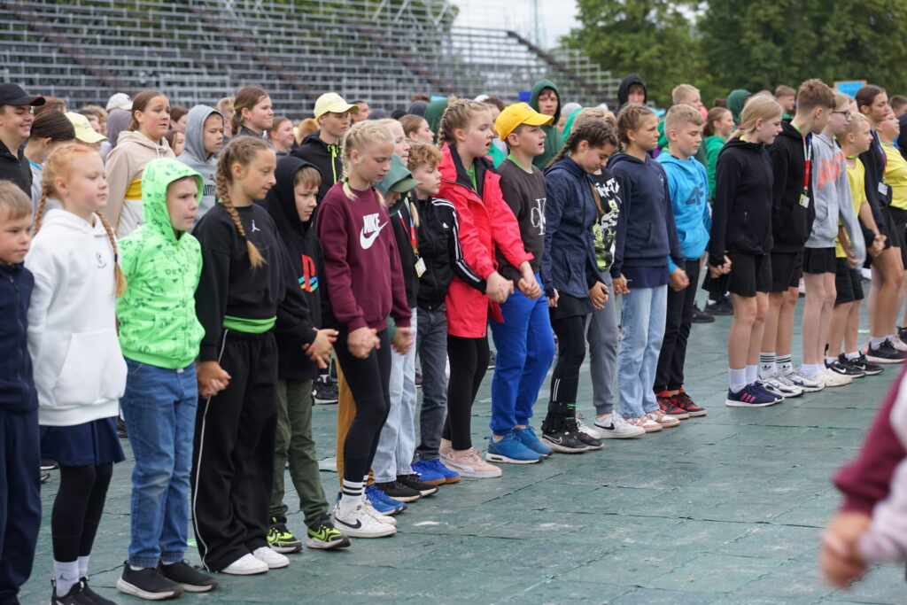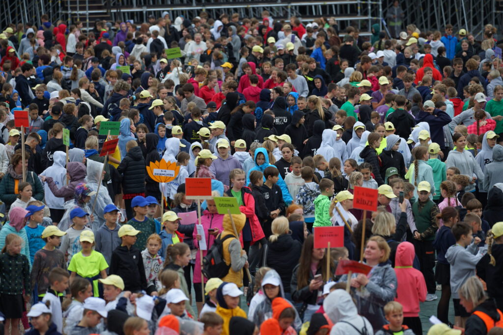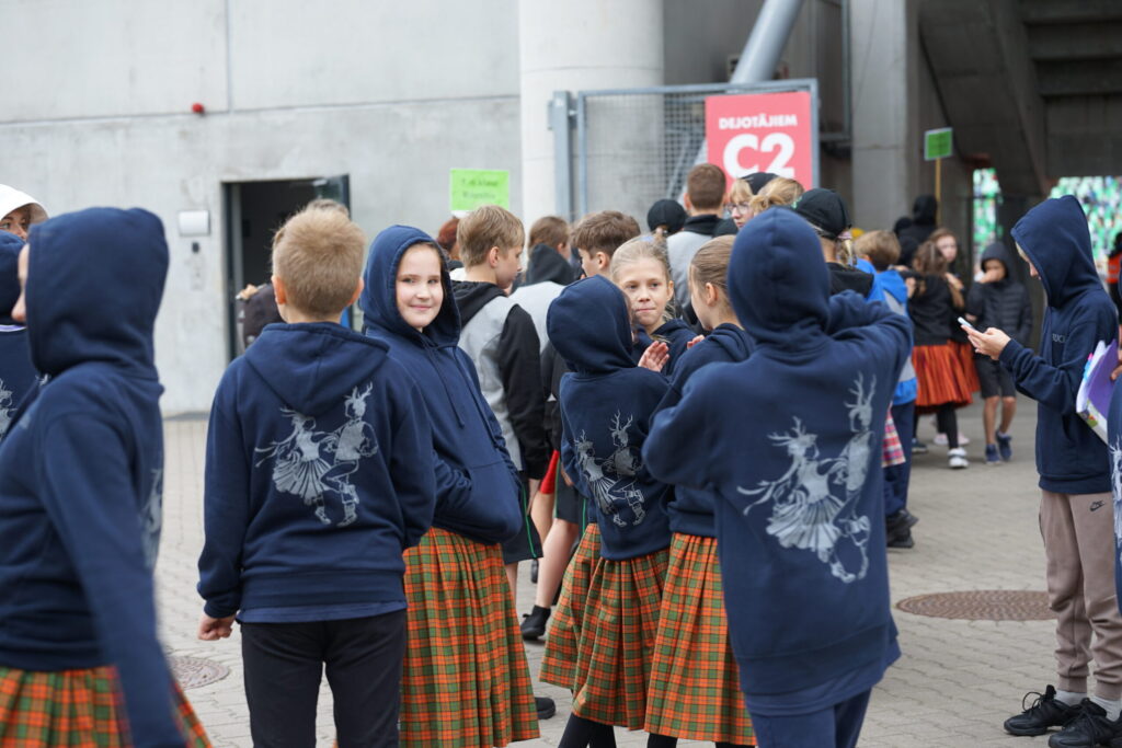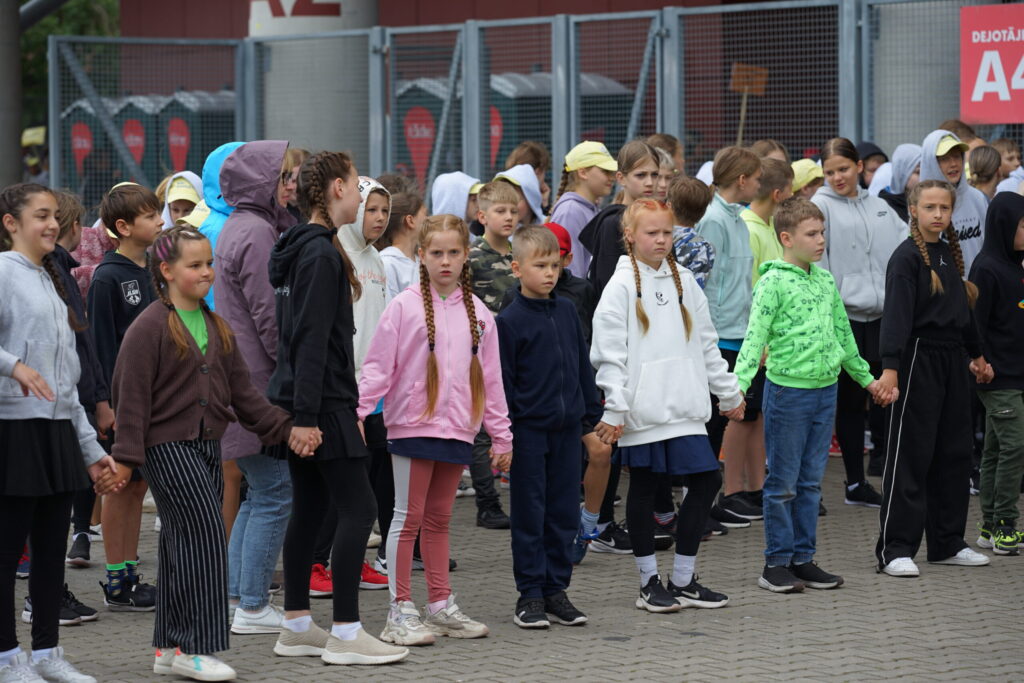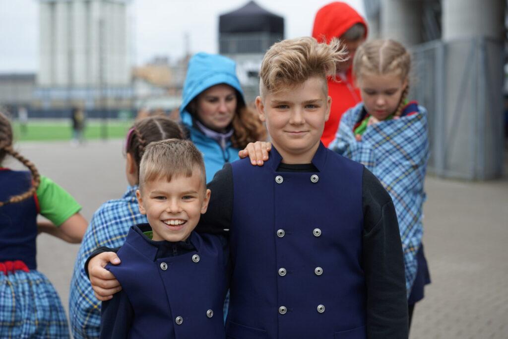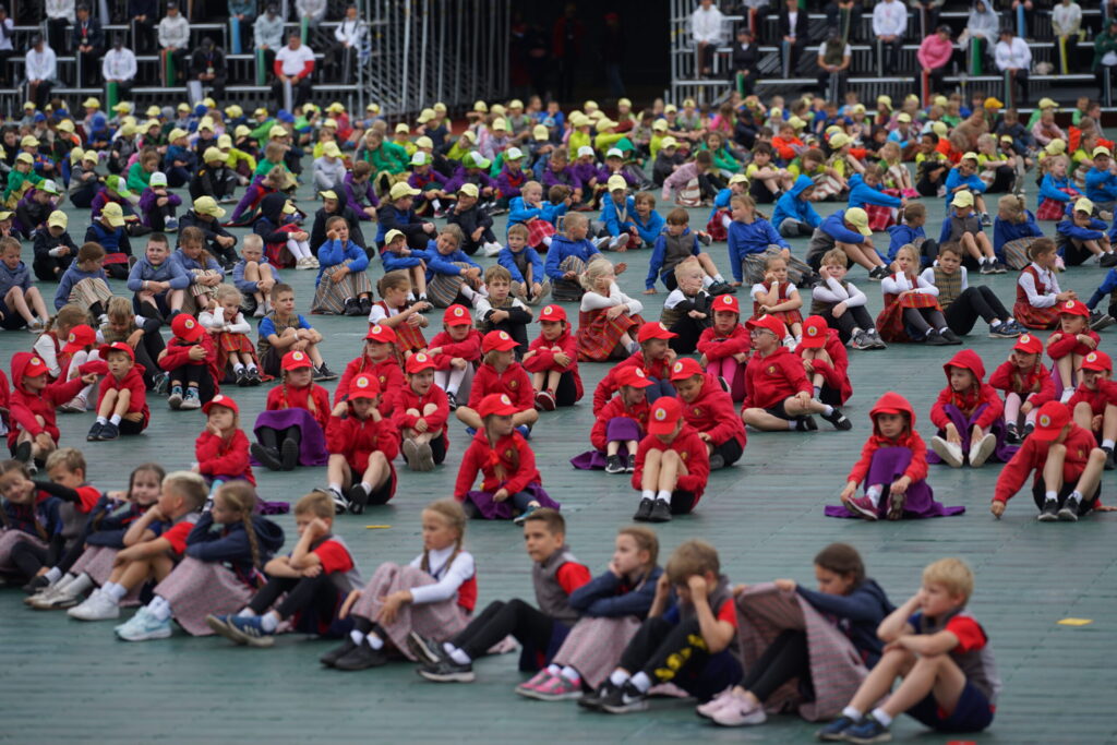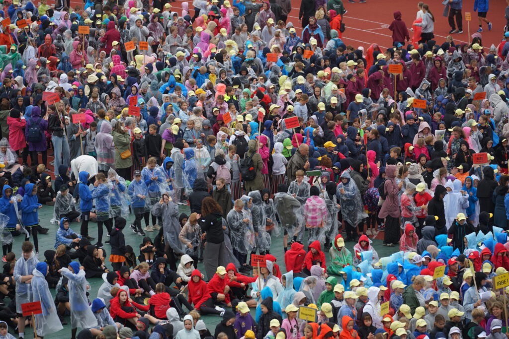 Ceturtdienas XIII Latvijas Skolu jaunatnes dziesmu un deju svētku mēģinājums Daugavas stadionā.