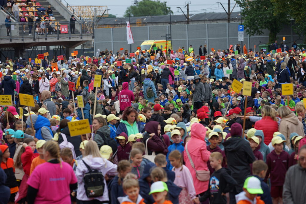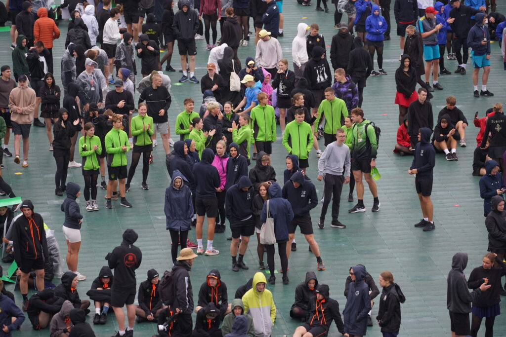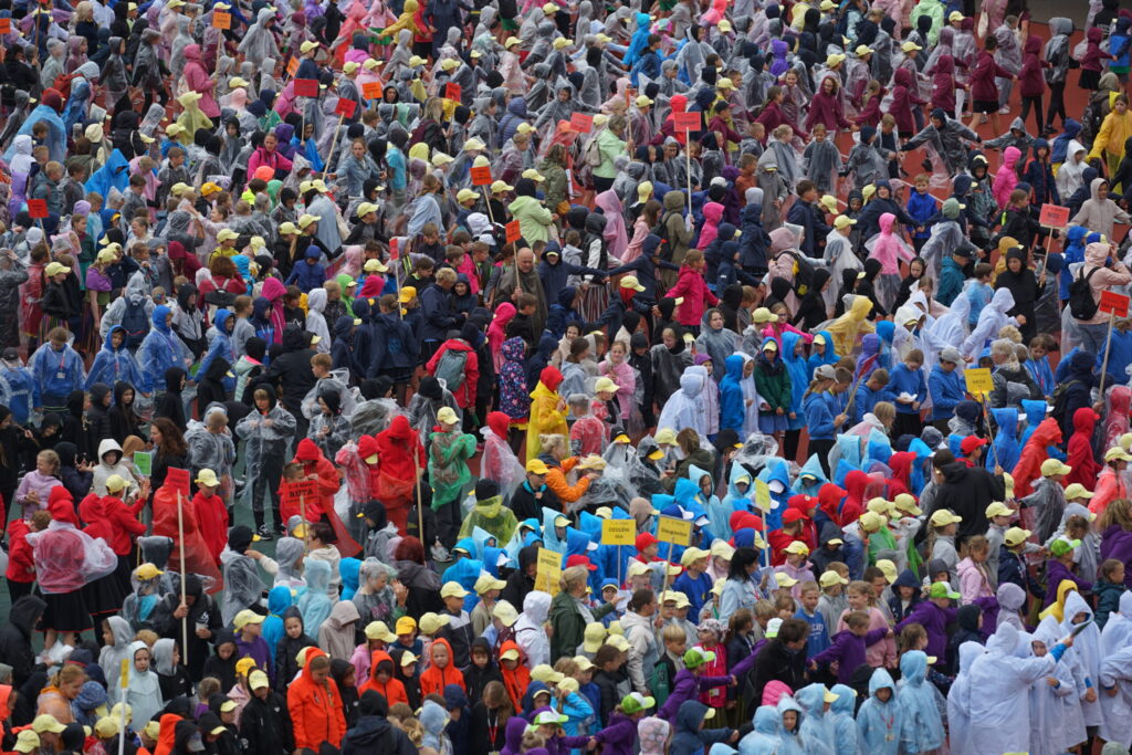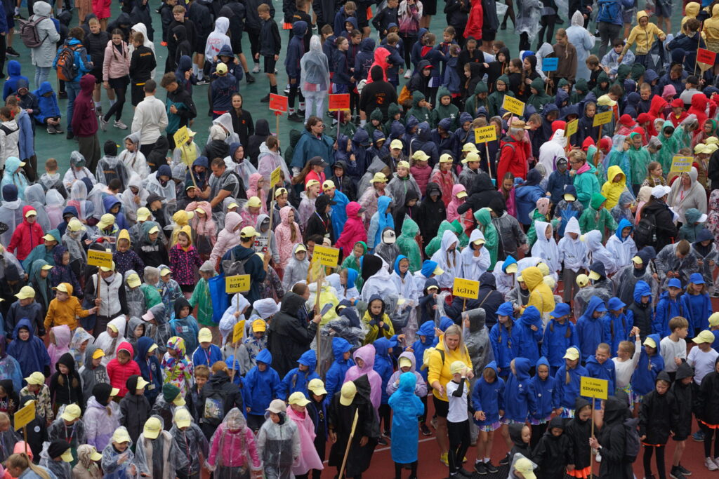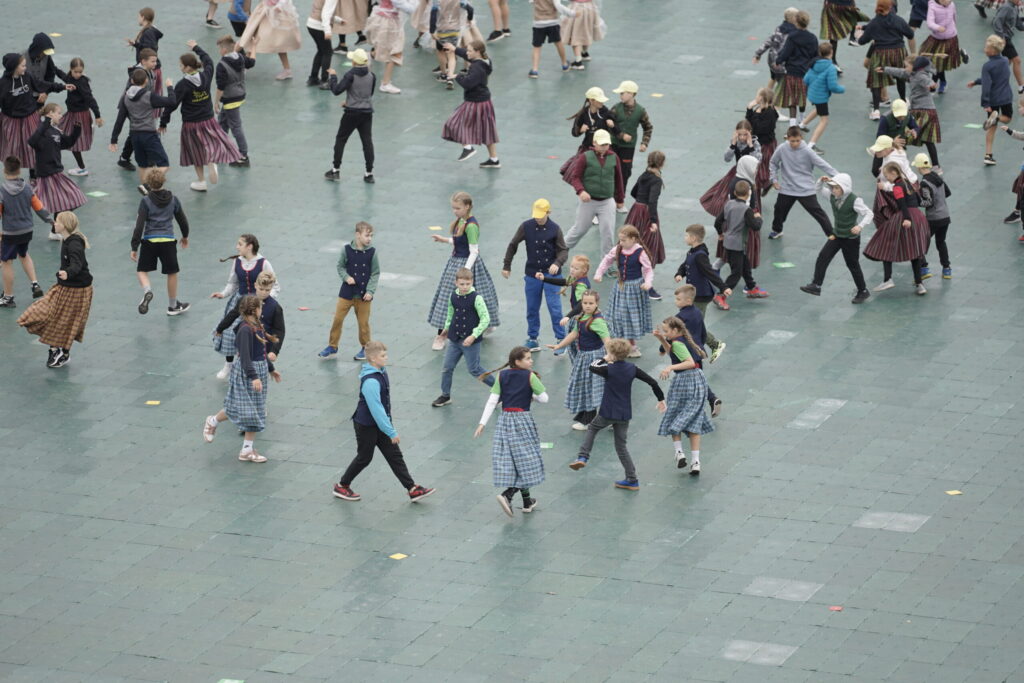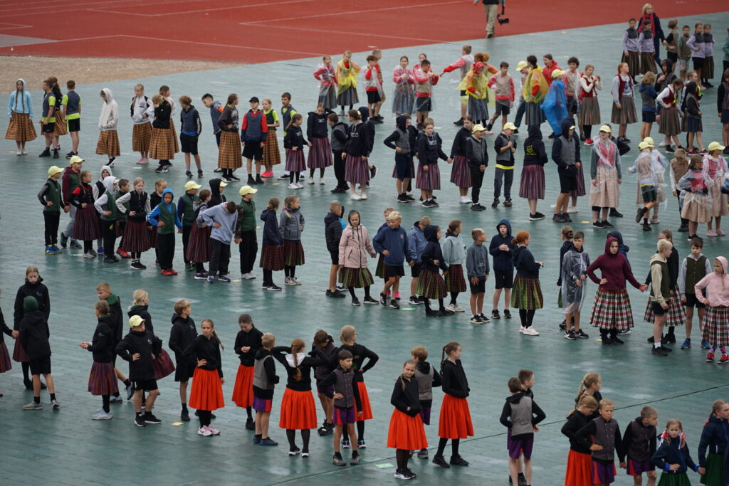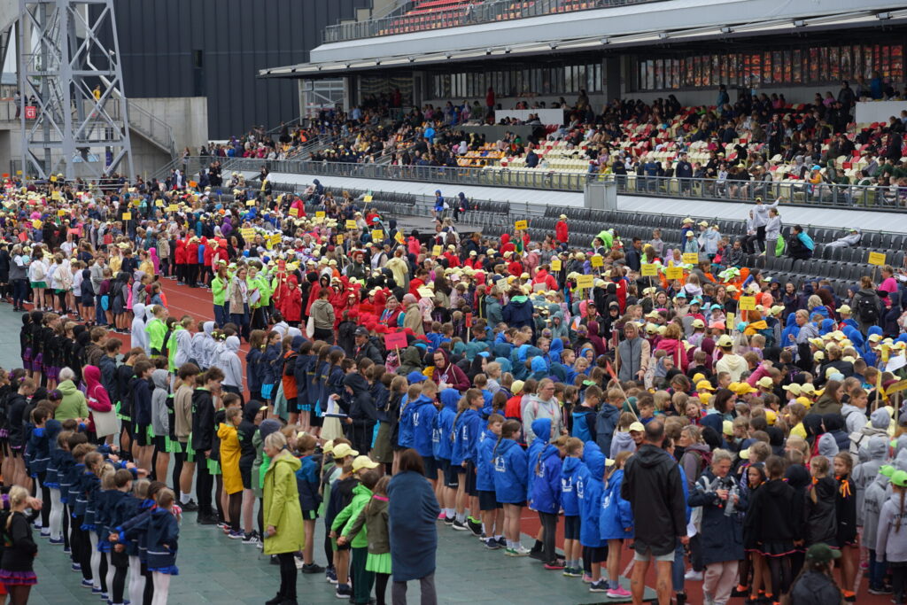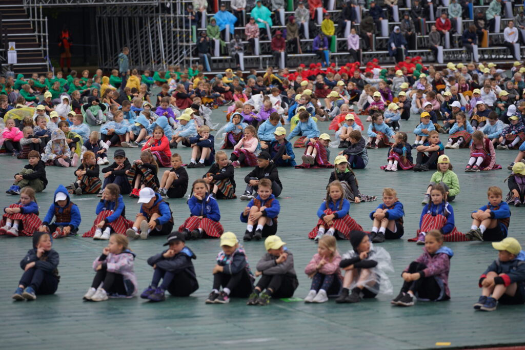 Ceturtdienas XIII Latvijas Skolu jaunatnes dziesmu un deju svētku mēģinājums Daugavas stadionā.