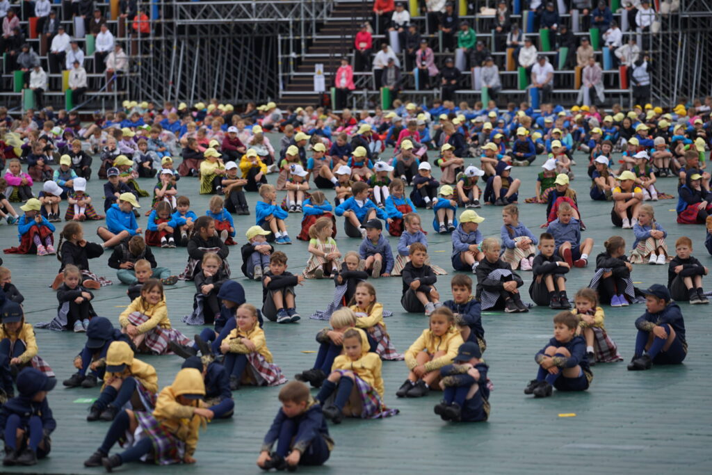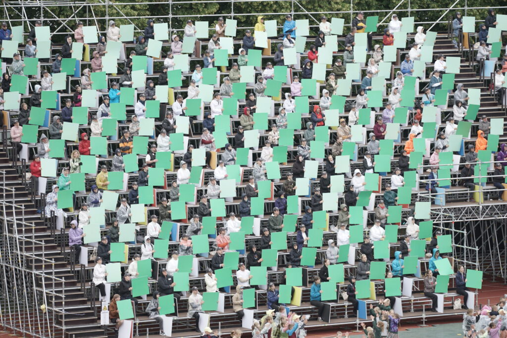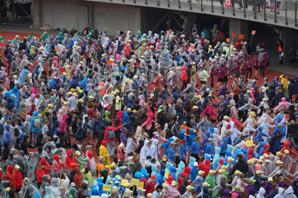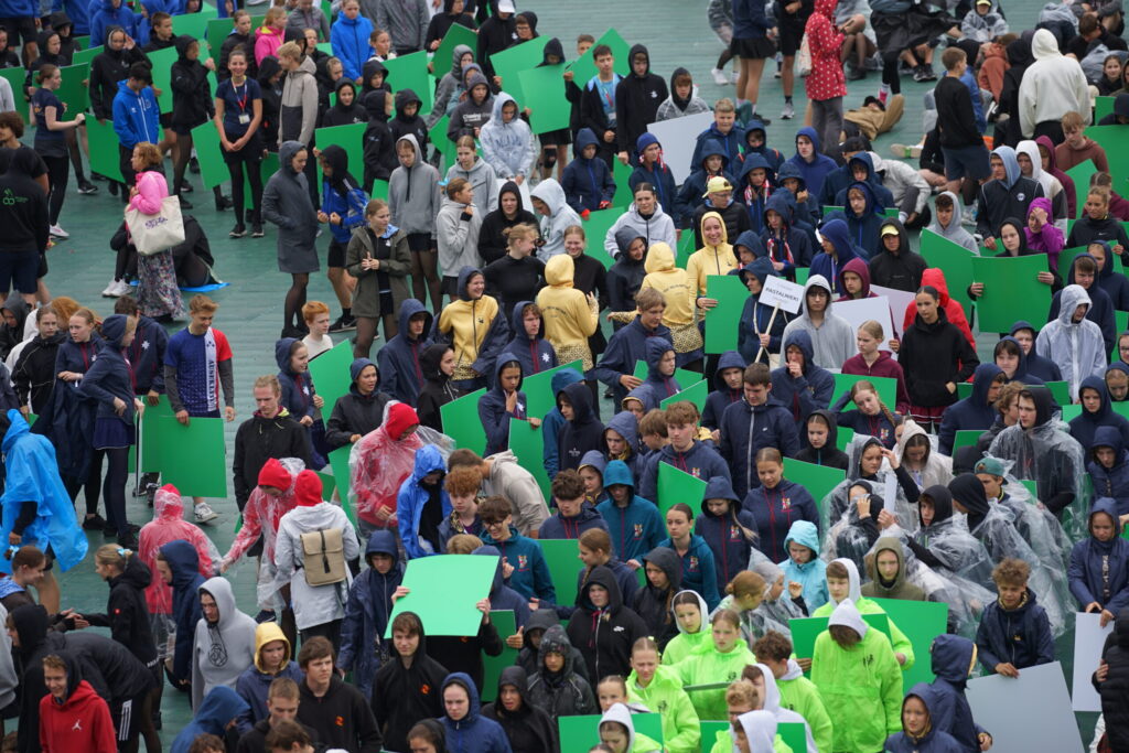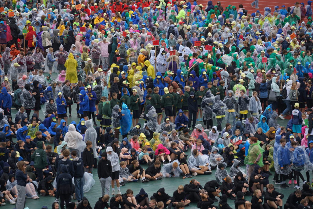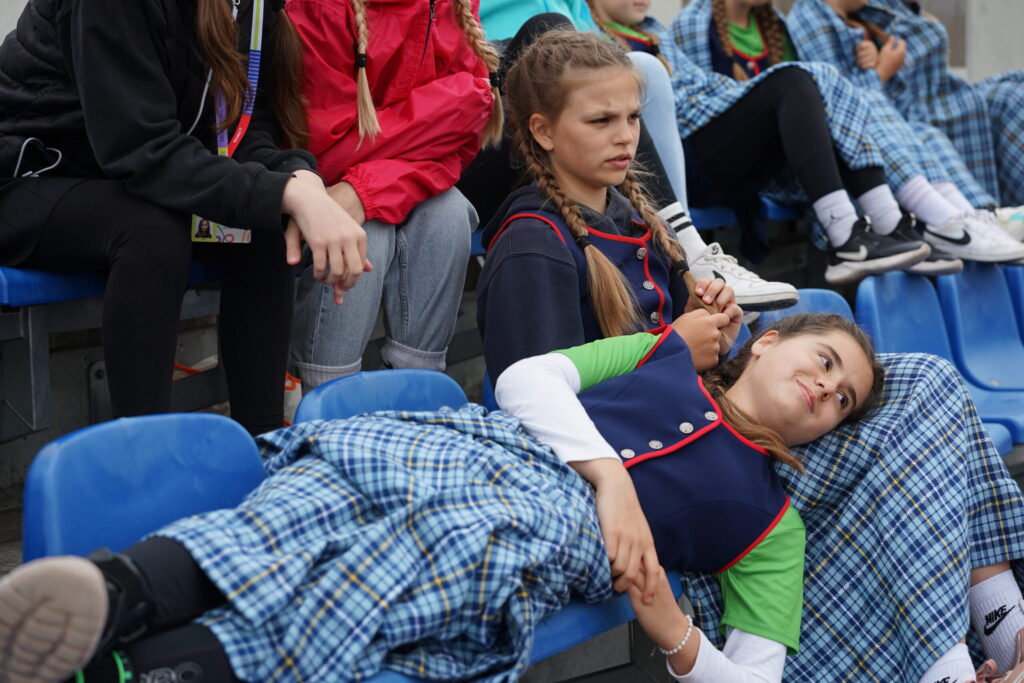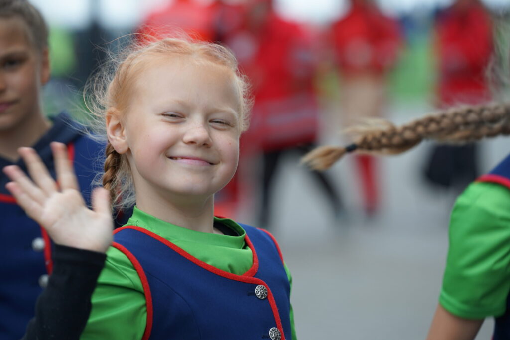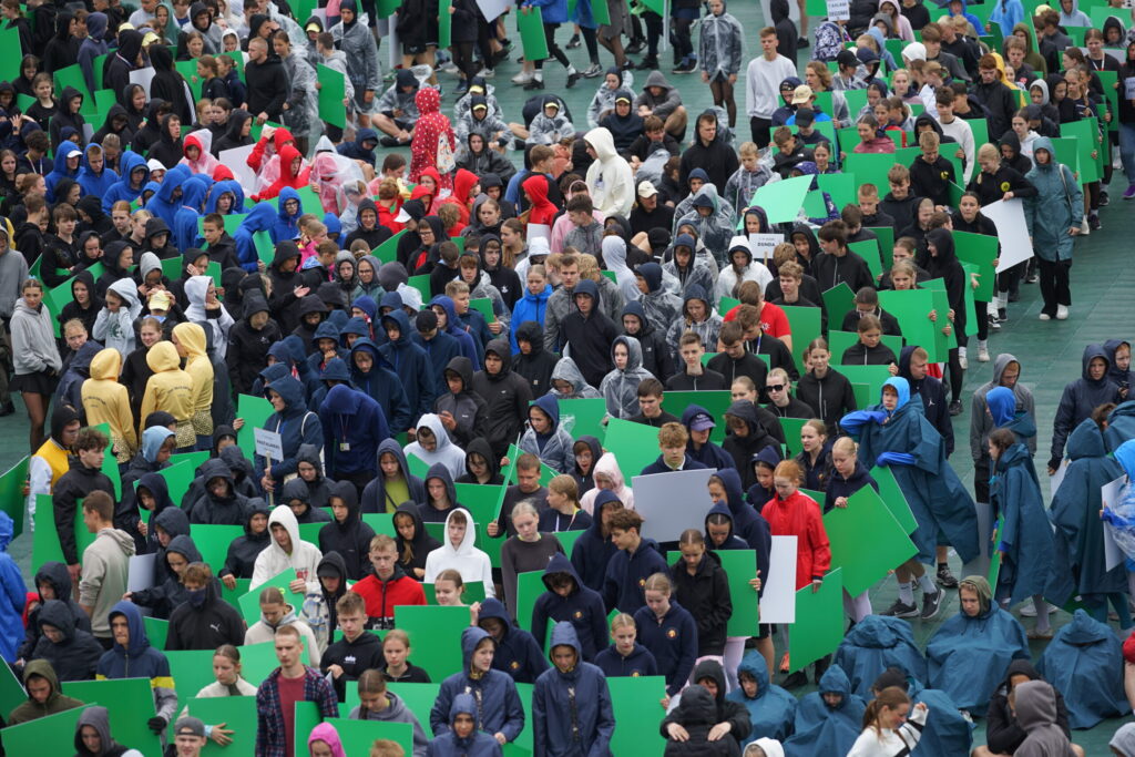 Ceturtdienas XIII Latvijas Skolu jaunatnes dziesmu un deju svētku mēģinājums Daugavas stadionā.