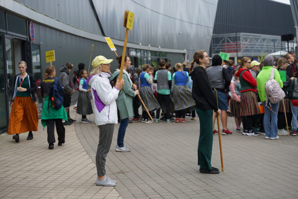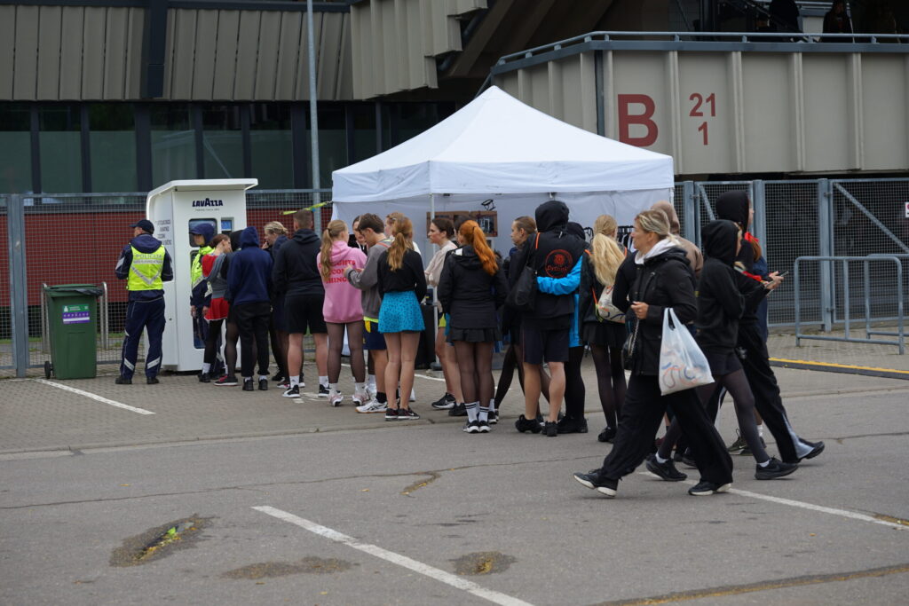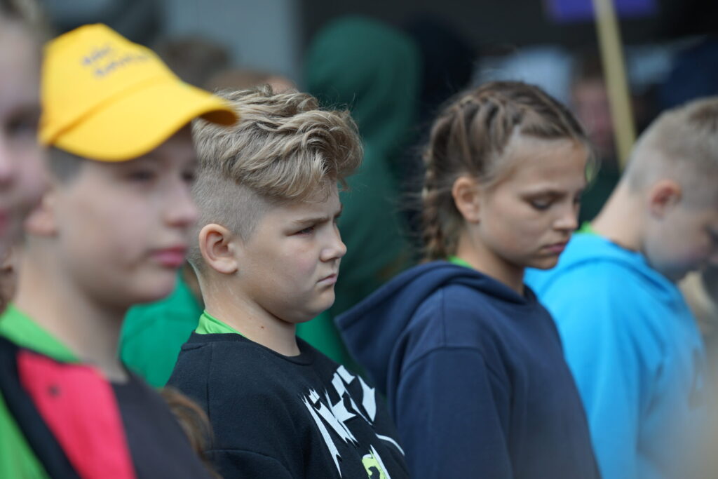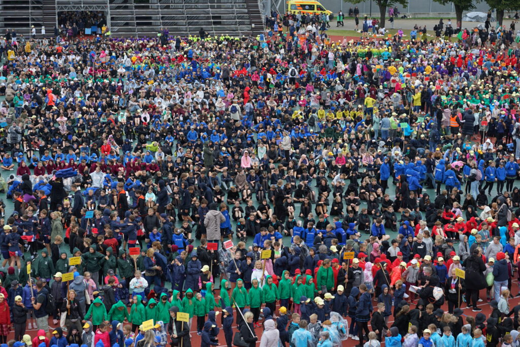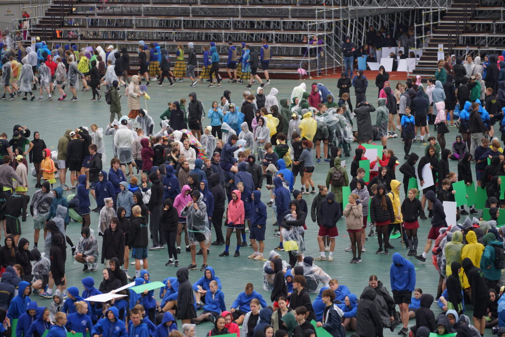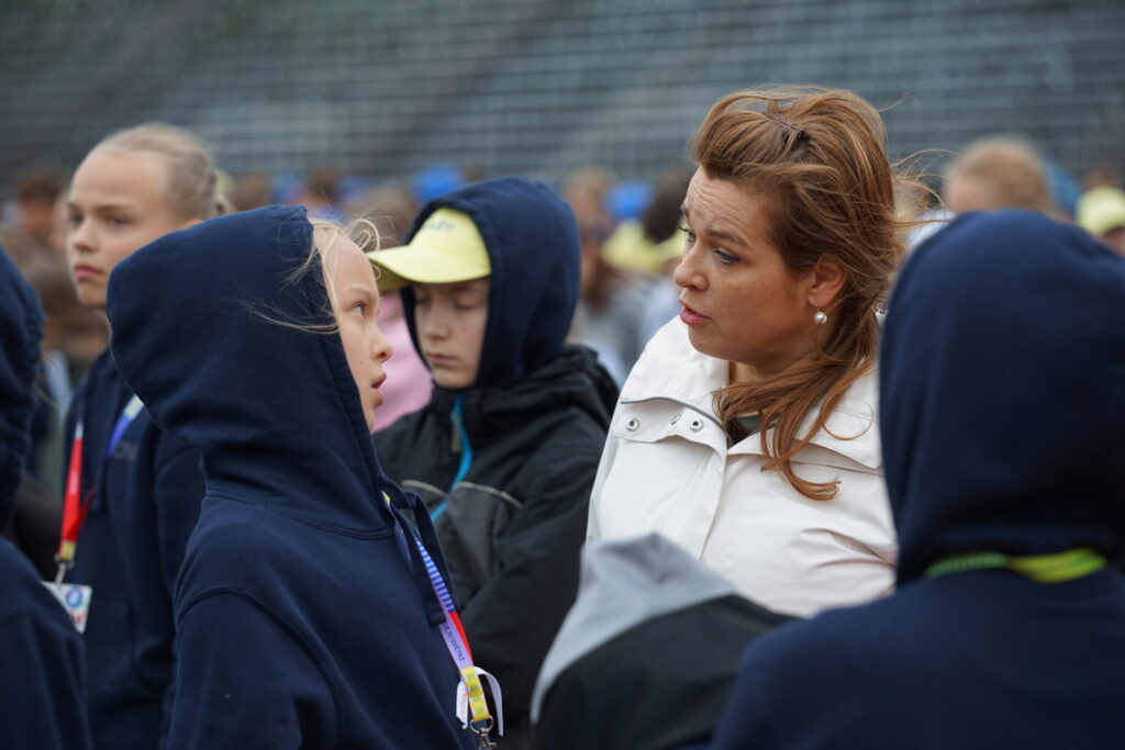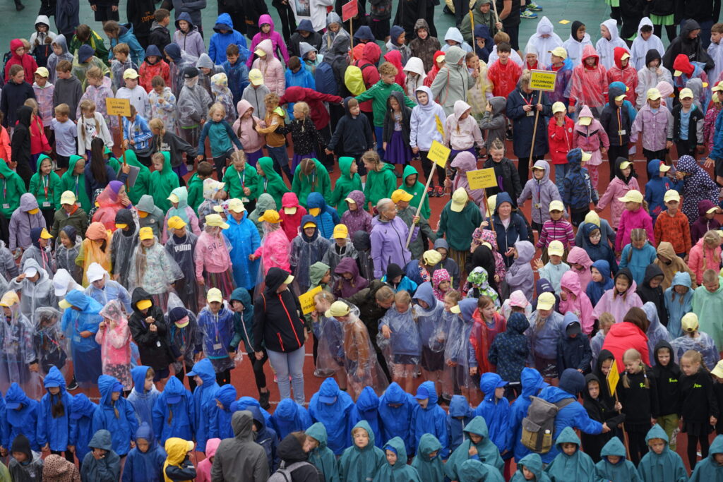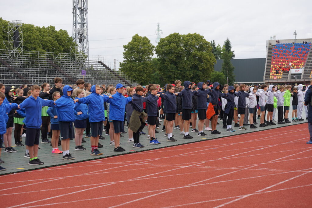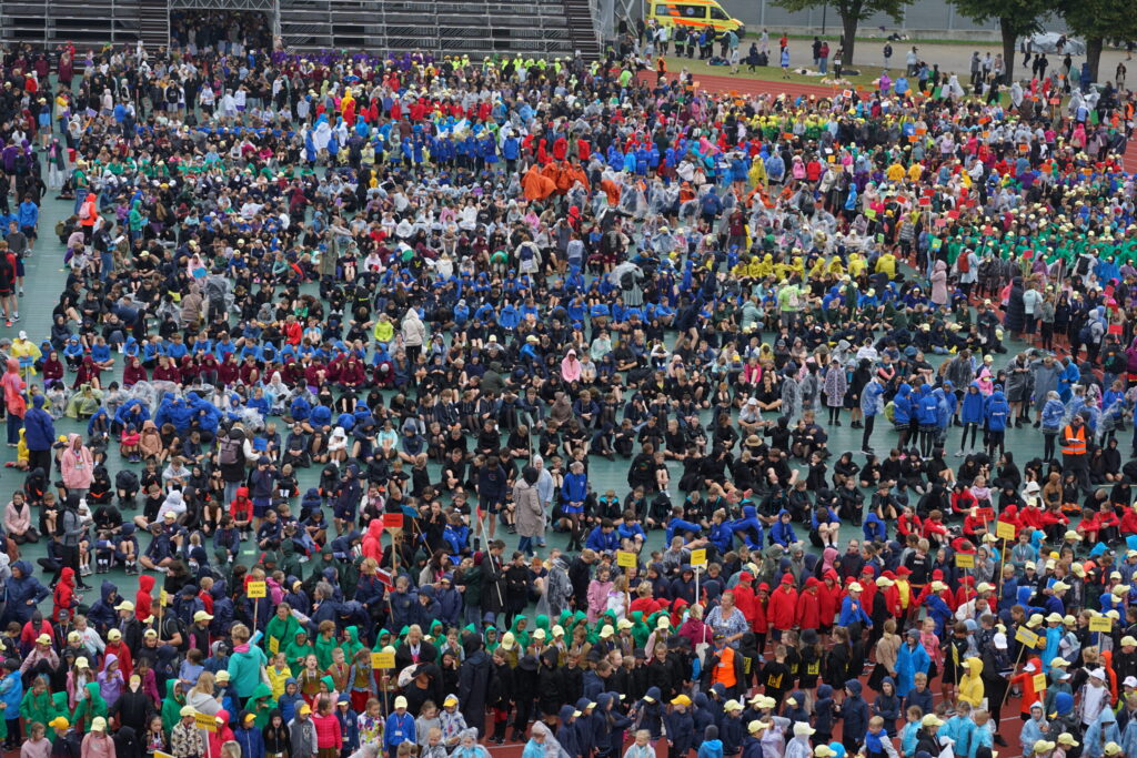 Ceturtdienas XIII Latvijas Skolu jaunatnes dziesmu un deju svētku mēģinājums Daugavas stadionā.