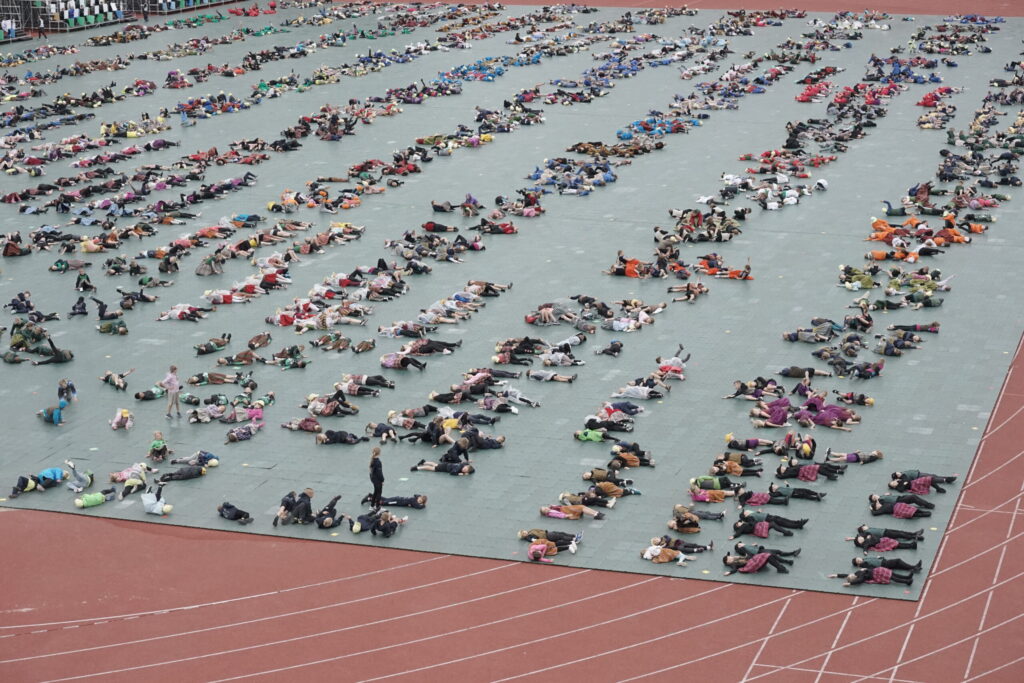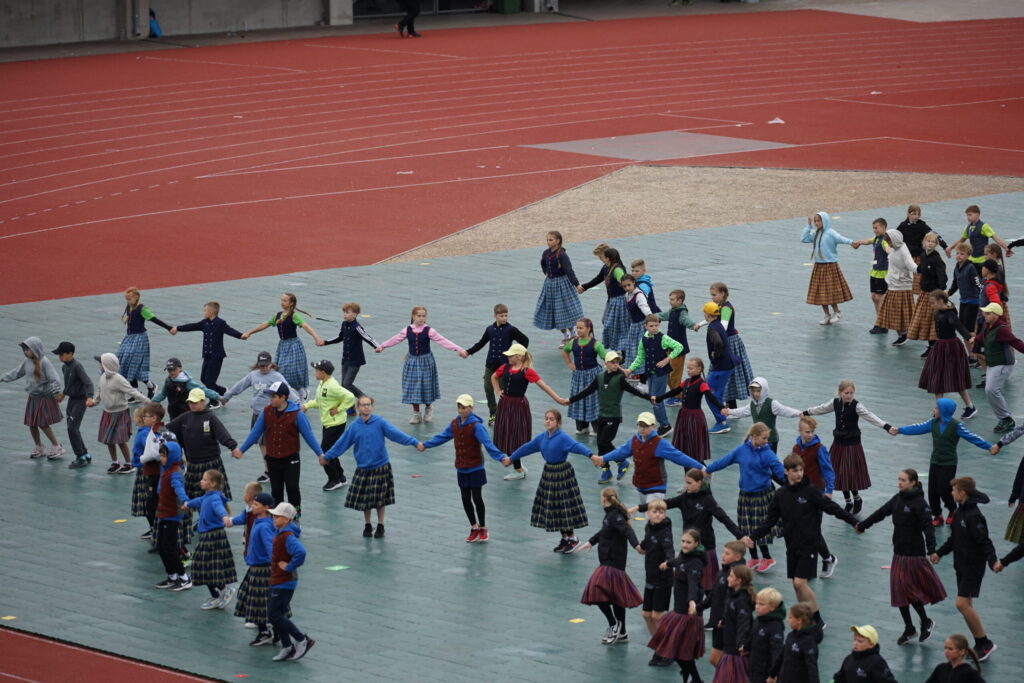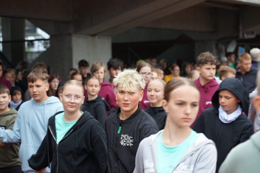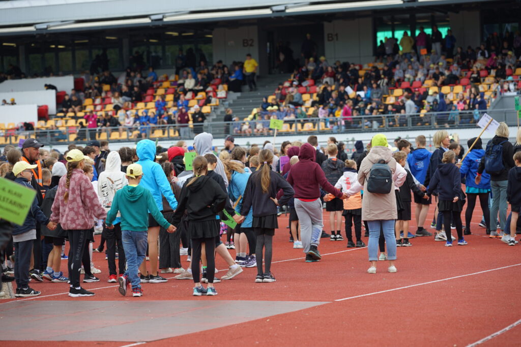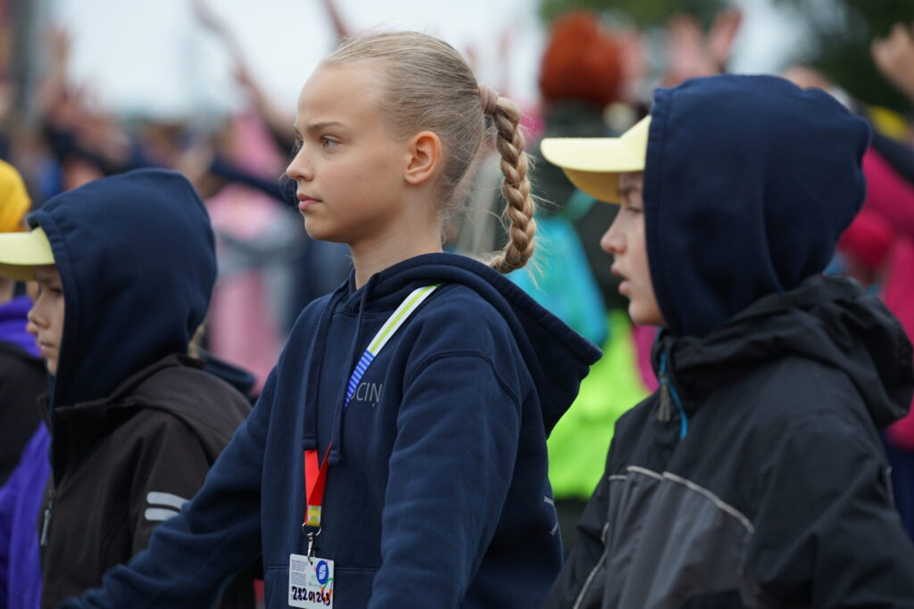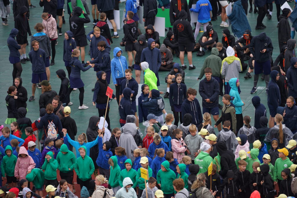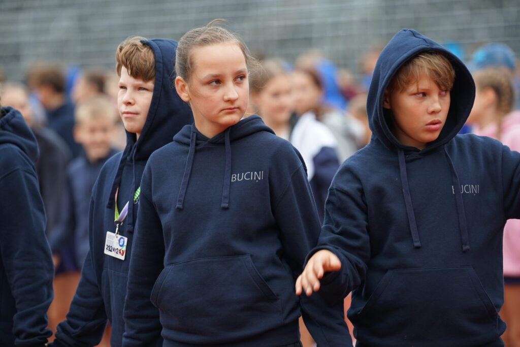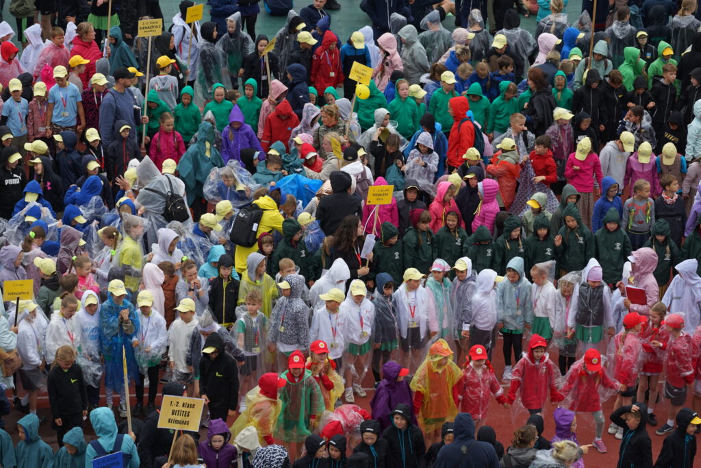 Ceturtdienas XIII Latvijas Skolu jaunatnes dziesmu un deju svētku mēģinājums Daugavas stadionā.