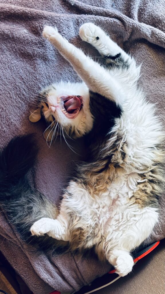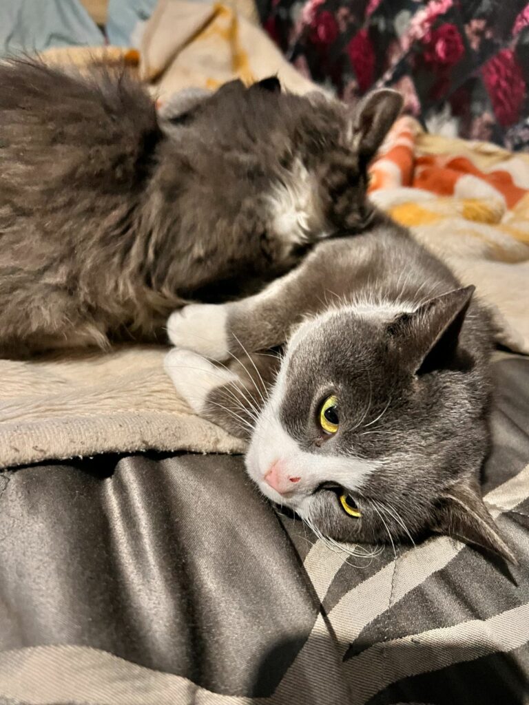 Kristīne Liene Muižniece – Mīluļi – Vinstons, Pūka un Poga. Stāsts par mīluļiem –  Vinstons (kaķu mamma, īsspalvaina pelēkbaltā krāsā) pie mums ieradās 2021.gada novembrī. Nospriedām ka Vinstons ir puisis, tāpēc arī devām šādu vārdu. Vinstons vienmēr bijis smalks savā figūrā. Viss ritēja ikdienišķi, līdz pienāca vasara – pārvākšanās laiks. Pārvācoties uz jauno māju, pēdējā dienā paņēmām arī Vinstonu, kurš pēdējās dienās izskatījās kārtīgāk paēdis. Nonākot galamērķī, Vinstons, protams, nesaprata kas noticis, noslēpās stūrī, kur slēpās veselu diennakti. Kad pienāca nākošās dienas vakars, Vinstons atnāca uz istabu pie manis, iekārtojās un devāmies gulēt. Augustā naktī ap 3.15 pamodos no ņaudēšanas. Atverot acis, sapratu, ka Vinstons ir kļuvis par mammu jeb, citādāk sakot, Vinstons patiesībā nekad nav bijis Vinstons. Piedzima 3 kaķēni (melns, melnbalts un pelēks ar baltu), no kuriem izdzīvoja divi – pelēks ar baltu (pūkainais jeb Pūka), ar melnbalto (Poga). Vēl līdz šim brīdim ģimenīte dzīvo kopā. Janvāra beigās Poga nokļūs pie jaunās ģimenes kura jau tagad ļoti gaida un ir sagatavojusies jaunā kaķīša uzņemšanai. Pūka paliek ar mums, mūsu ģimenē. Vinstons, kura vārds domājams, ka nemainīsies, šobrīd kļuvis par lielu dāmīti, pieņēmusies masā, bet veselīgā ziņā. Nu Vinstons ir lielais kaķis!
