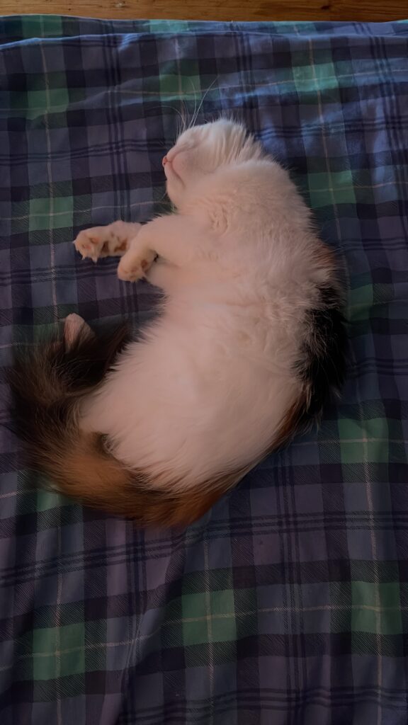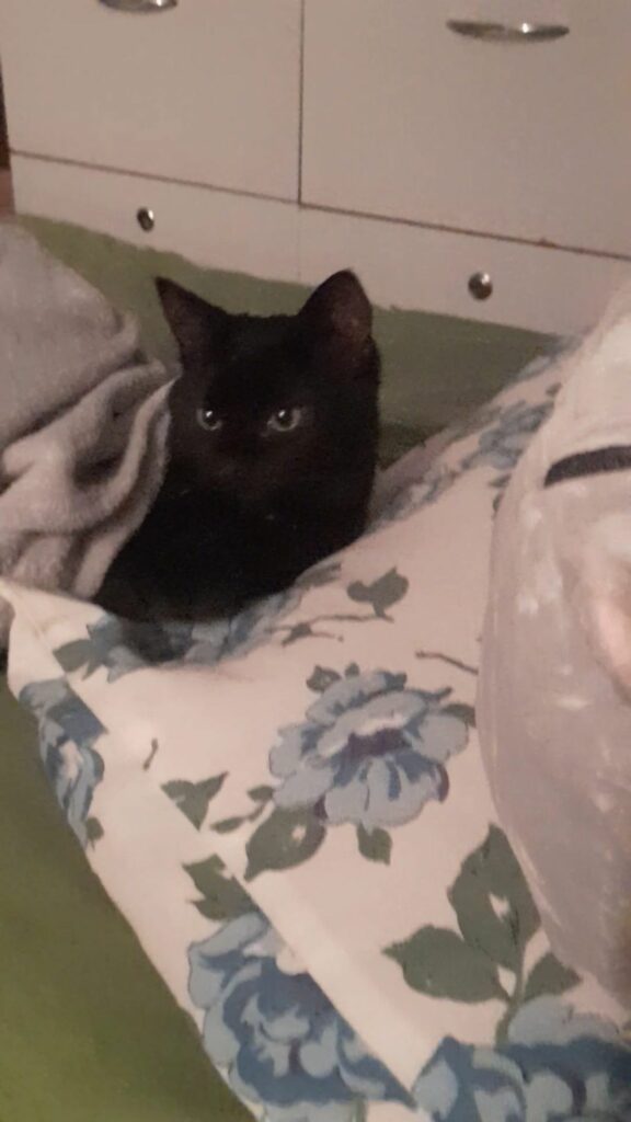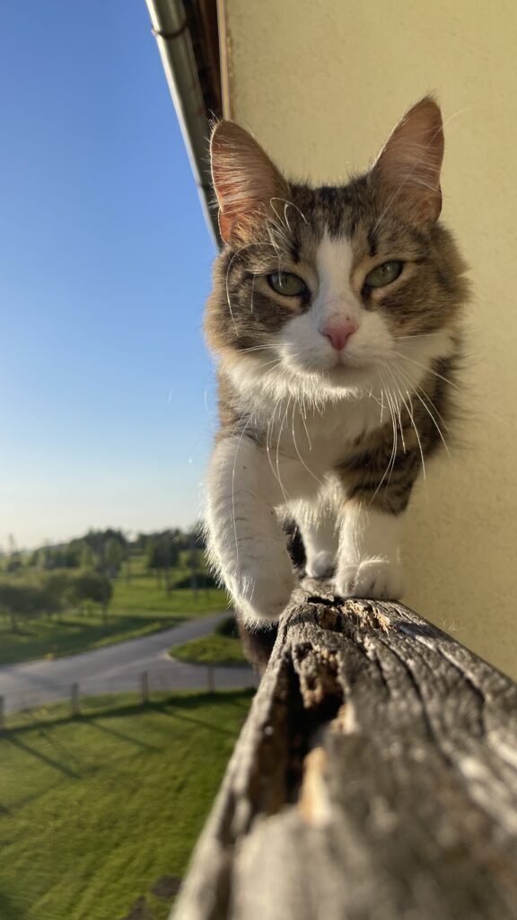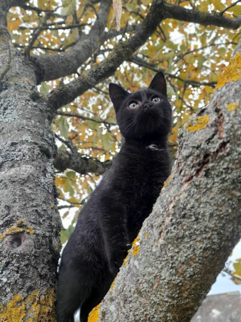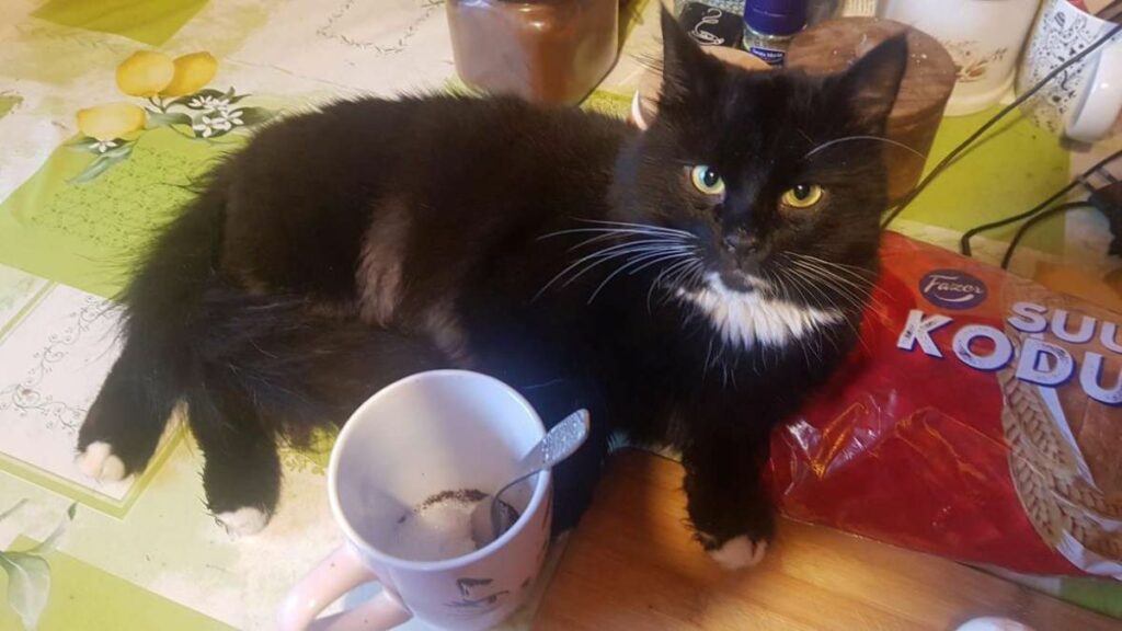 Melnbaltais – Tincis. Sākumā domājām, ka ir Tince, bet beigās sanāca Tincis. Kārtīgs savas sētas sargs, kontrolē situāciju pagalmā, ja nepieciešams, tad svešiniekus mazliet paplucina, lai tie pazūd no teritorijas. Papaijāt var precīzi trīs reizes, pēc tam seko kodiens vai skrāpējums. Ļoti labs darbinieks, ķer ne tikai peles, bet arī čūskas.