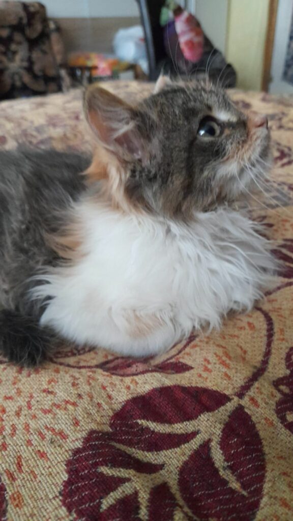 Vineta Gribuška – Greisa. Greisa ir 2 gadus jauna kaķenīte – Nebelunga šķirne. Viņa ir mūsu ģimenes mīlule.