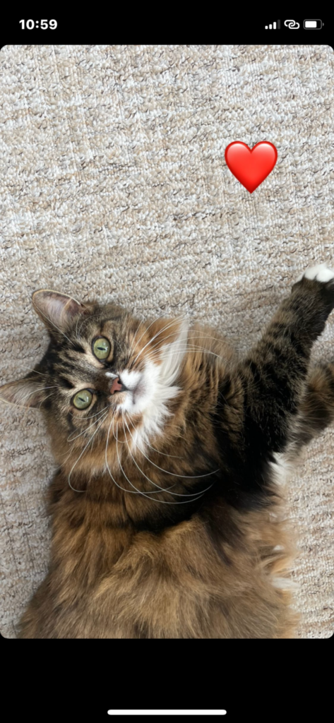 Pārsla Eglīte – Mīlule kaķene Klaudija. Klaudija mums jau ir vairāk kā gadu, paņēmām no patversmes. Viņa ir ļoti mīļa, dažreiz palaidne. Katru rītu viņa ir kā modinātājs, 5:50 no rīta pamodina.