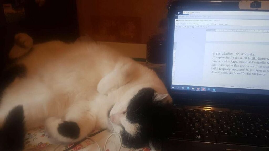 Karolina Iļjina – Stāsts par Melni. Es dzīvoju audžuģimenē, kurai izveidots mini exsotisko putnu zoo dārzs. Man radās doma, ka putnus varētu pieskatīt tieši melns kaķis. Lai gan citi saka, ka melns kaķis nes nelaimi, es gribu apgalvot pretējo. Man uzdāvinātais Melnis ģimenē ienes gan jautrību, gan nekārtību, gan uzmanību, gan rūpes. Es viņu mācu sadzīvot ar putniem (paipalām, pāviem, strausiem). Kustīgu putnu vērošana Melnim padodas grūti. Viņš metas viņu apskaušanā, ķeršanā, baidīšanā. Man tas iemāca pacietību, mīlestību, gudrību, laimi un prieku. Melnis ir zinātkārs, tīrīgs (bieži mazgājas) nekad nepārskrien pāri ceļam, bet, kad gadās kāda ceļā, tad vienmēr nes veiksmi. Pavada katru rītu mani uz skolu, diena veiksmīga, bet, kad rīta cēlienu noguļ, man vienmēr gadās kāda ķibele. Tāpēc uzskatu, ka melnam kaķim būtu jābūt katrā mājā. Es vēlētos iegādāties baltu kaķi un salīdzināt. Ceru, ka mana vēlēšanās piepildīsies. Tad es jūsu laikrakstam “Ziemeļlatvija” atsūtīšu savu pētījumu, kādas krāsas kaķis ir jālolo mājās. Savu Melni fotografēju bieži, lai noteiktu viņa raksturu un redzētu, kā viņš izaug. Labprāt dalīšos ar sava Melņa fotogrāfijām. Lai katram JUMS melns kaķis nes tikai veiksmi!