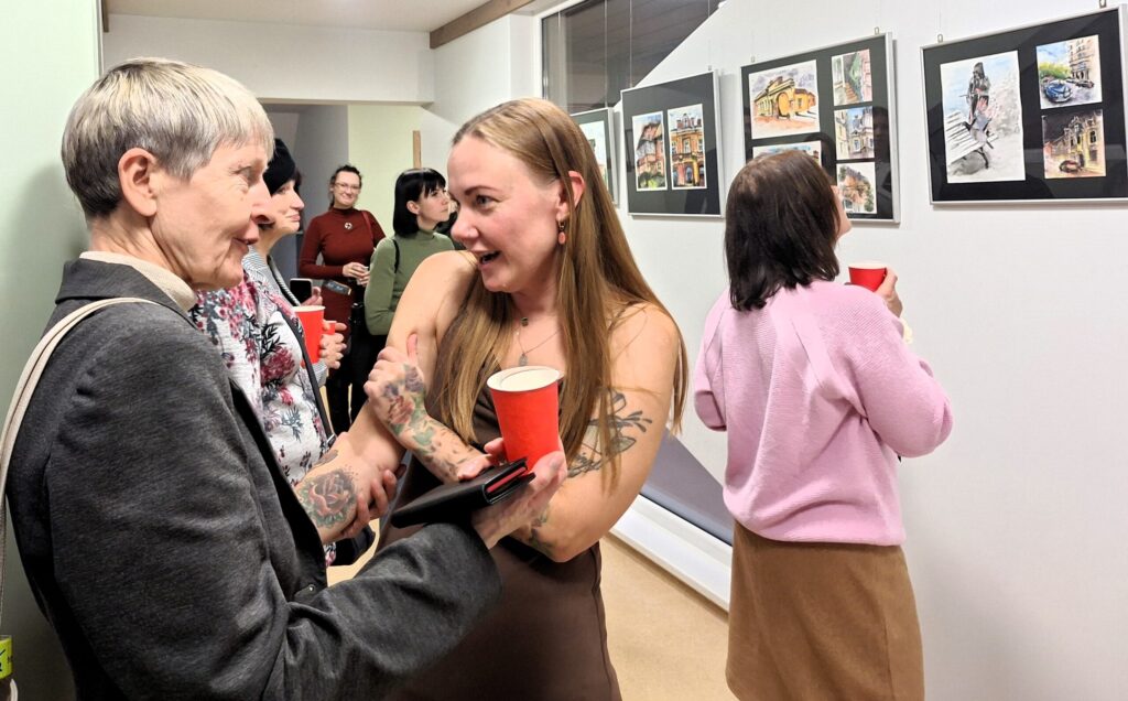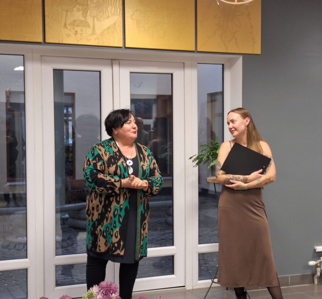 Pirms aicinot apskatīt izstādi, G.Laviņa klātesošos iepazīstināja ar sevi, atklājot arī to, ko viņai nozīmē radoša izpaušanās mākslas jomā, un kā radies izstādes nosaukums. Izstāde būs apskatāma visu novembri.