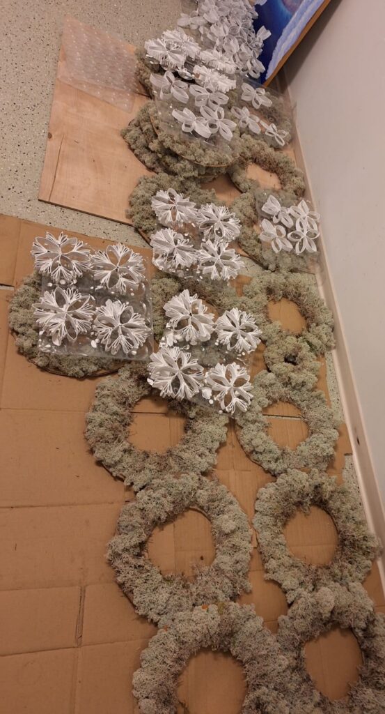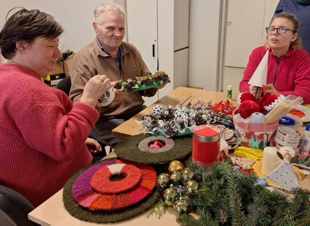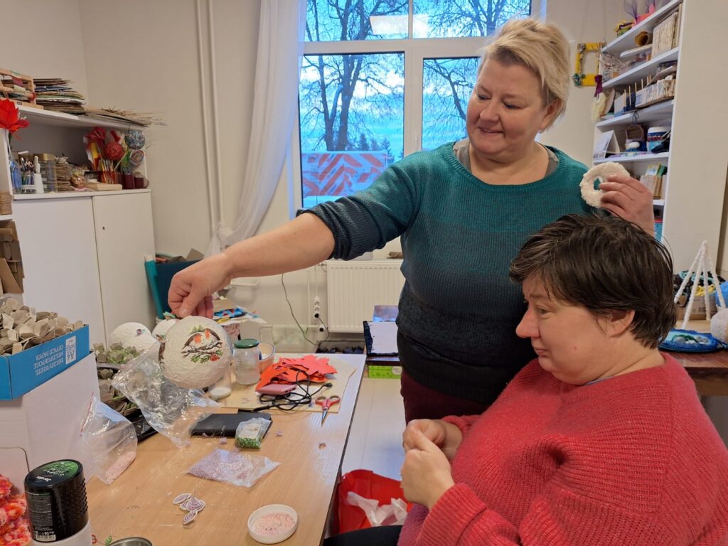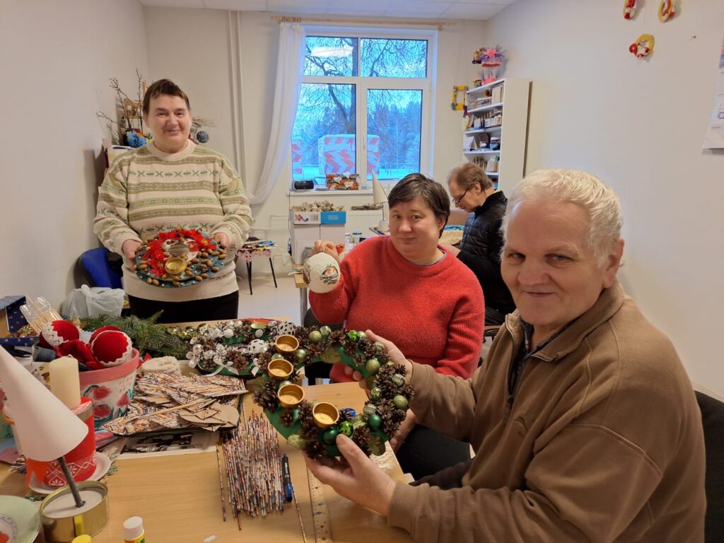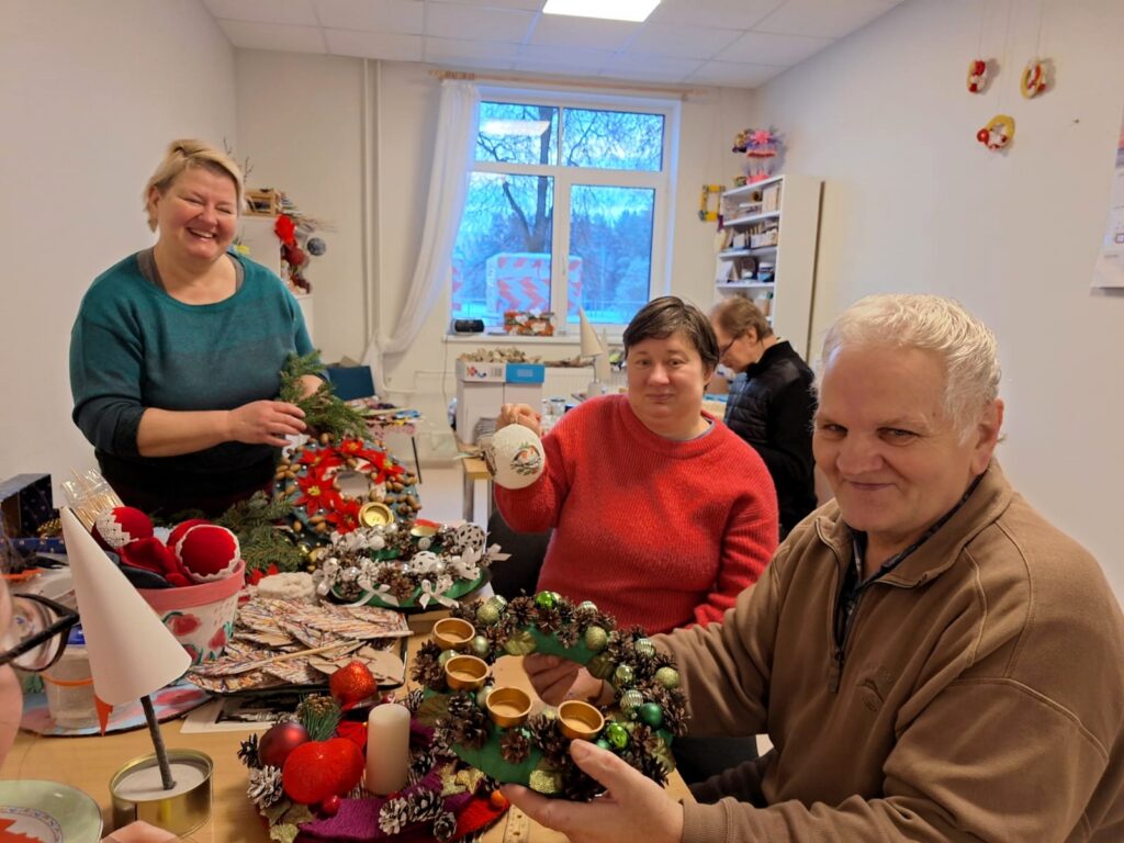 Šonedēļ “Ziemeļlatvija” ciemojās biedrības “Latvijas Sarkanais Krusts” Vidzemes komitejas dienas aprūpes centrā “Valka”. Tur centra klienti reizē ar pedagogiem cītīgi gatavojas adventes laikam ‒ gatavo vainagus, svētku dekorācijas un visdažādākos eglīšu rotājumus.