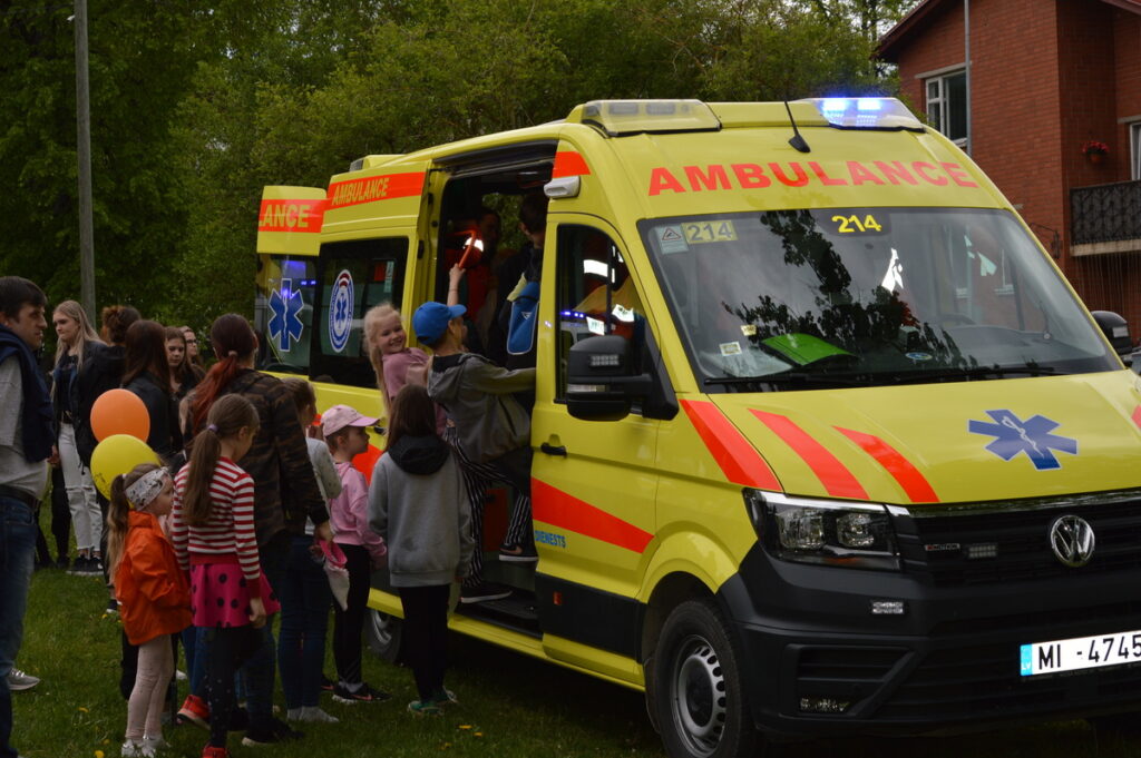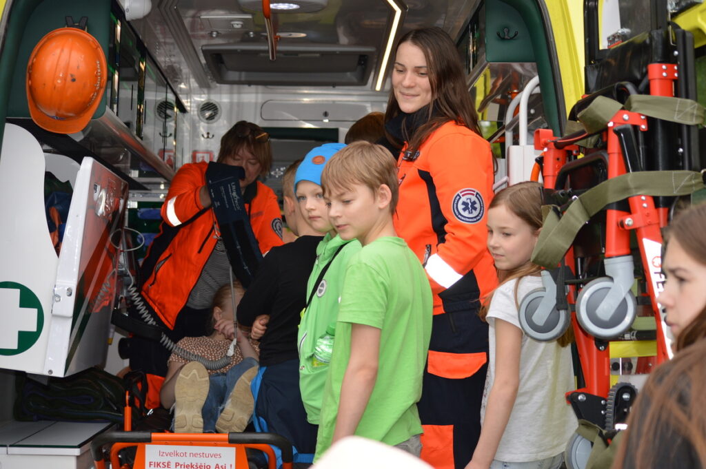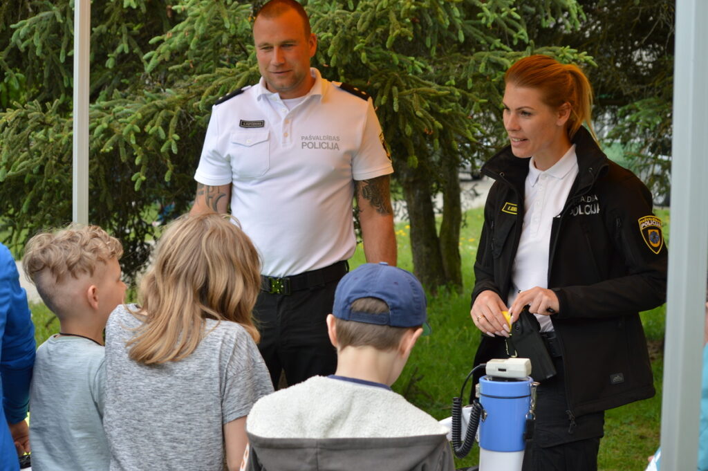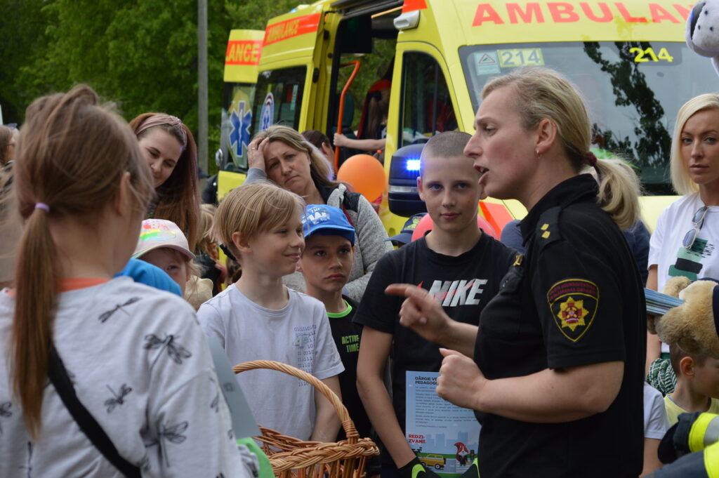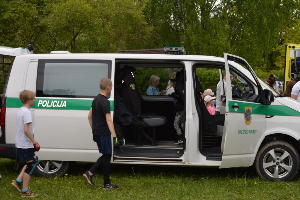 Pie bērnu rotaļu laukuma savus operatīvos transportlīdzekļus un aprīkojumu demonstrēja Smiltenes novada Pašvaldības policija,Valsts ugunsdzēsības un glābšanas dienests un Neatliekamās medicīniskās palīdzības dienests.