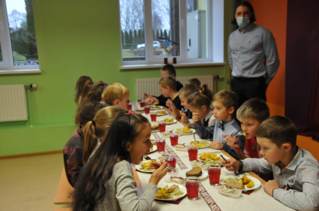 FOTO: Latvijas 103. dzimšanas dienā Valkas Jāņa Cimzes ģimnāzijas skolēni pusdieno kā restorānā