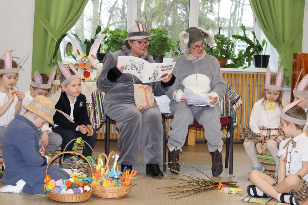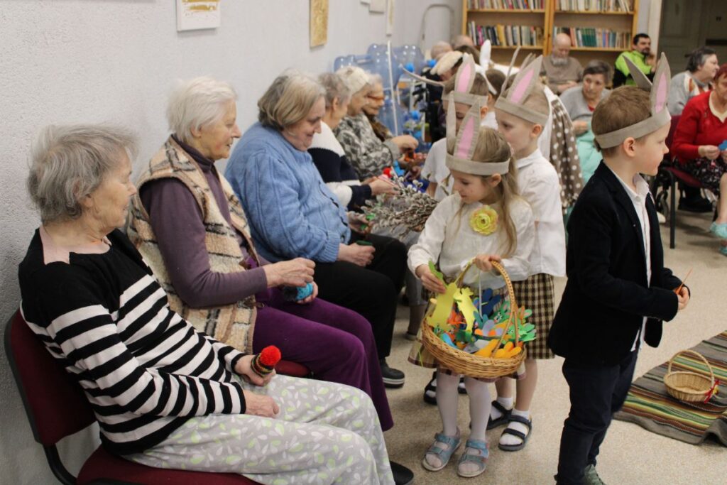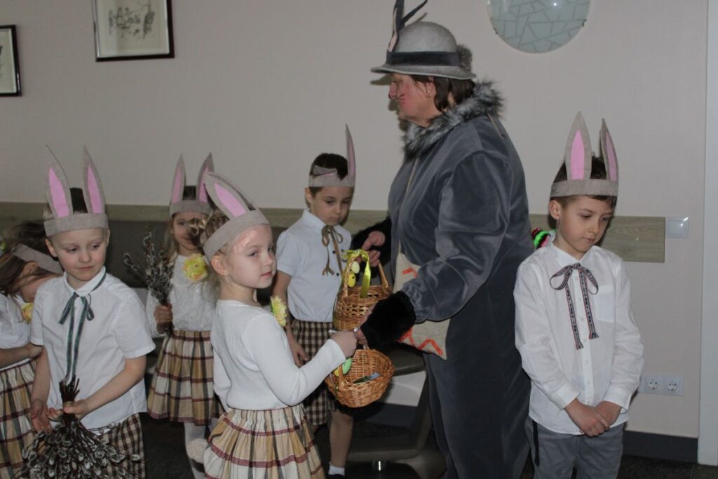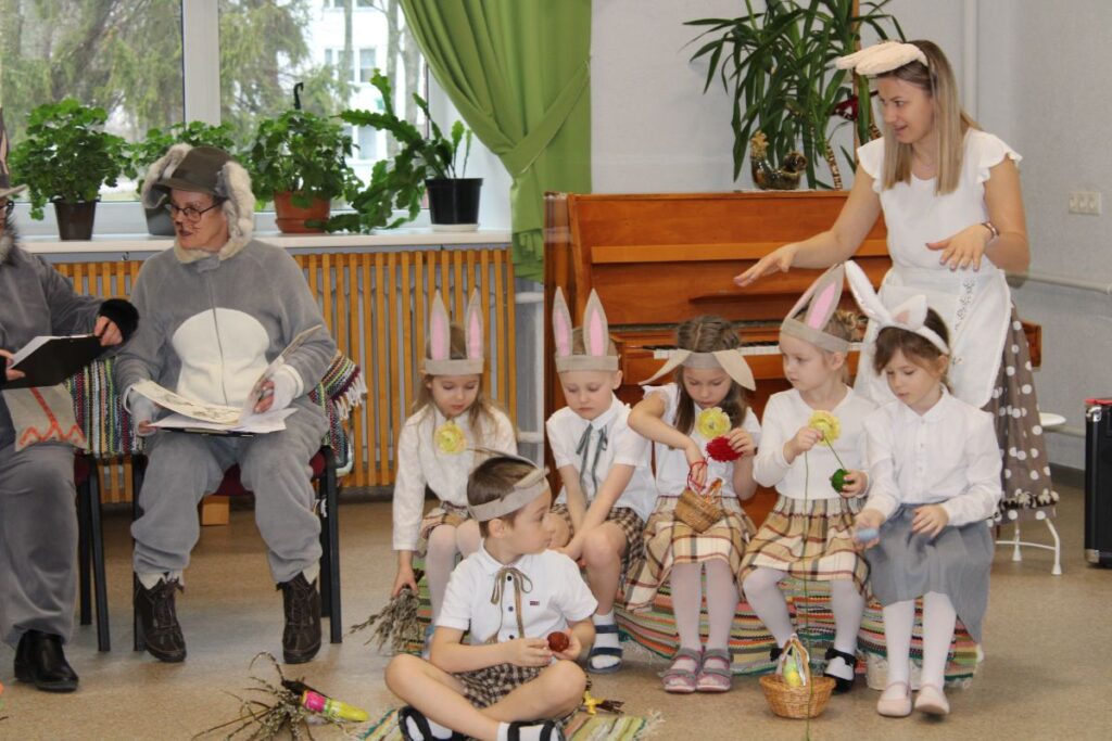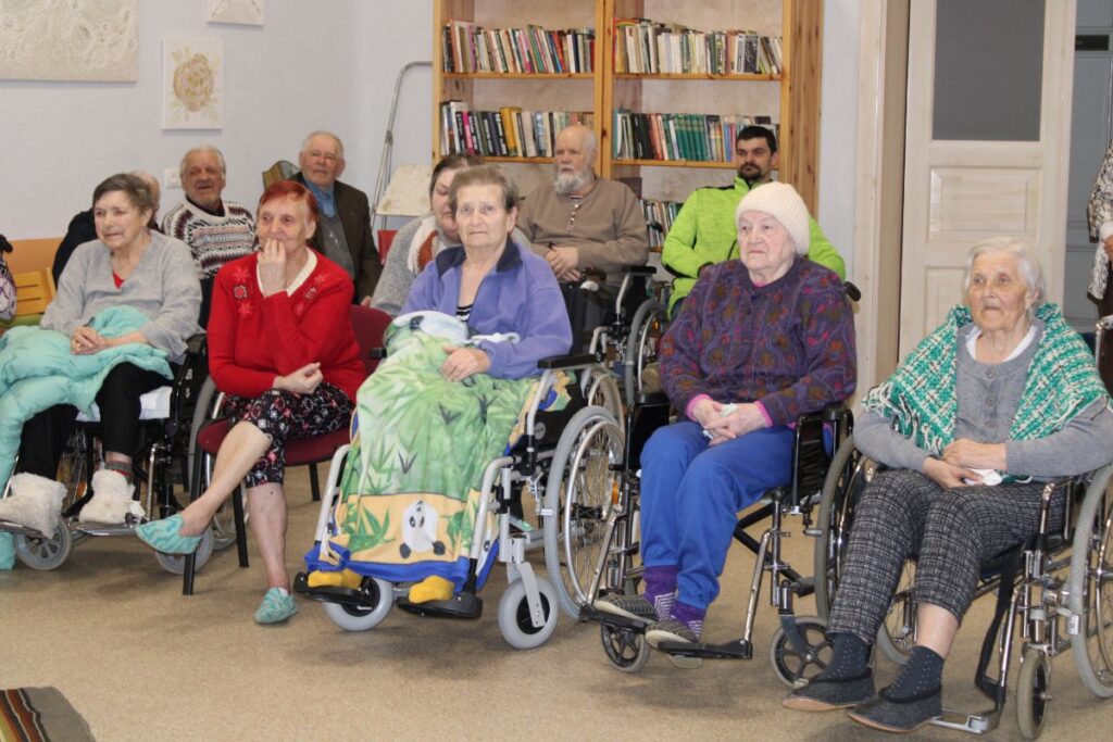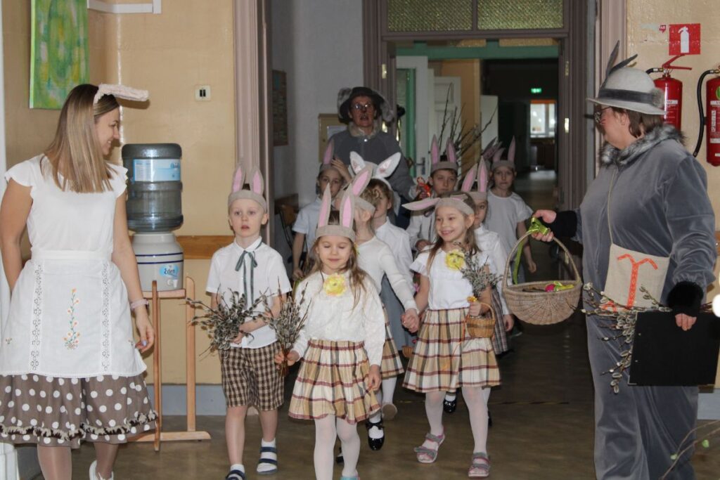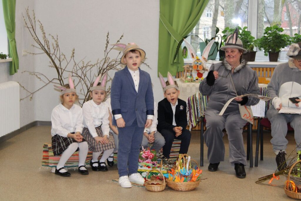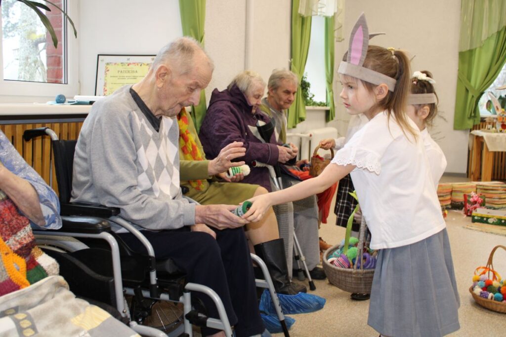 Grupiņu “Rūķi” un “Zaķēni” bērni un viņu pirmsskolas skolotājas Gunta Mežule un Inguna Slapjuma, un mūzikas skolotāja Lāsma Serdāne viesojās nodaļā pirms Lieldienām, rādot svētku uzvedumu, izdalot līdzi atvestās dāvanas un iepriecinot pansionāta iemītniekus un darbiniekus.