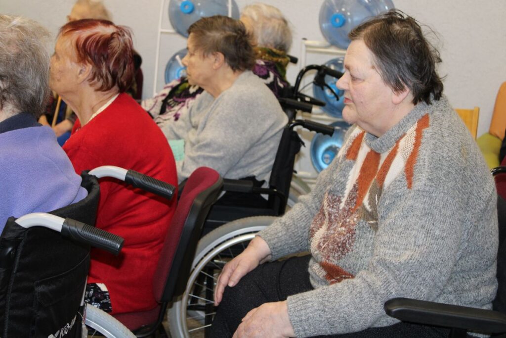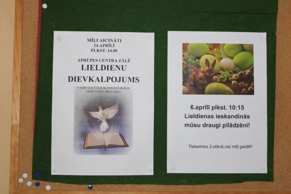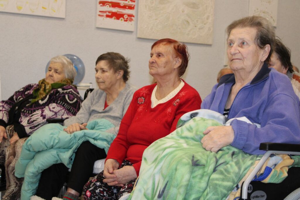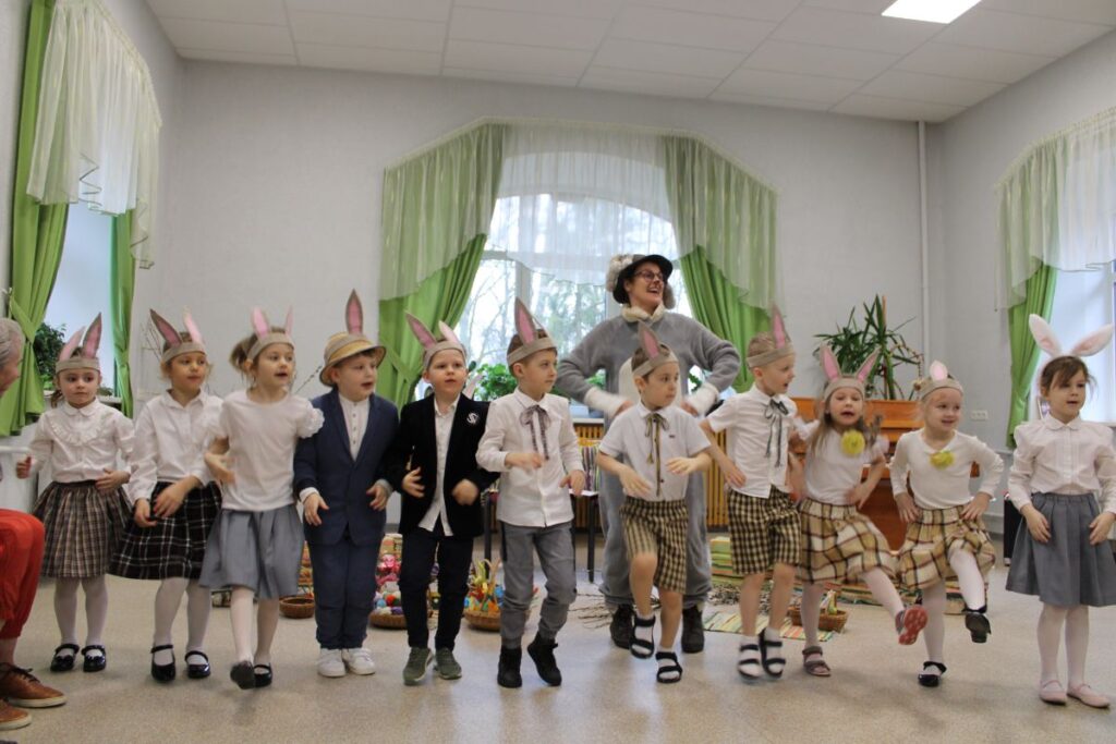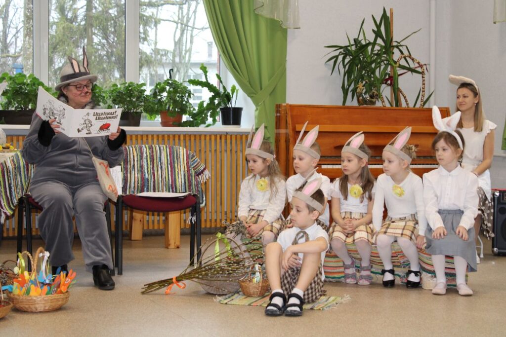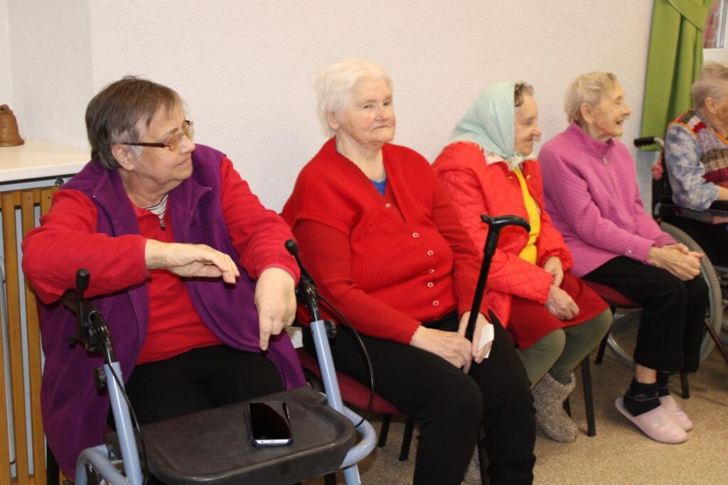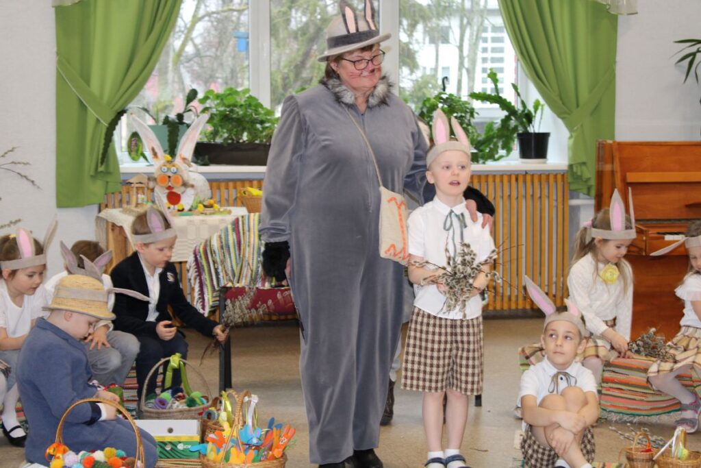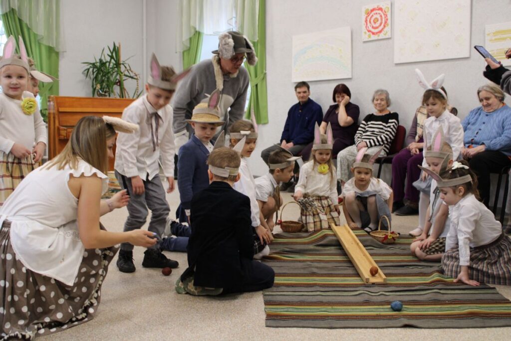 Grupiņu “Rūķi” un “Zaķēni” bērni un viņu pirmsskolas skolotājas Gunta Mežule un Inguna Slapjuma, un mūzikas skolotāja Lāsma Serdāne viesojās nodaļā pirms Lieldienām, rādot svētku uzvedumu, izdalot līdzi atvestās dāvanas un iepriecinot pansionāta iemītniekus un darbiniekus.