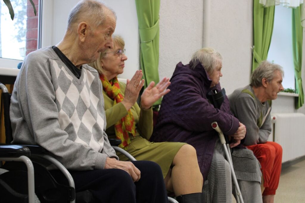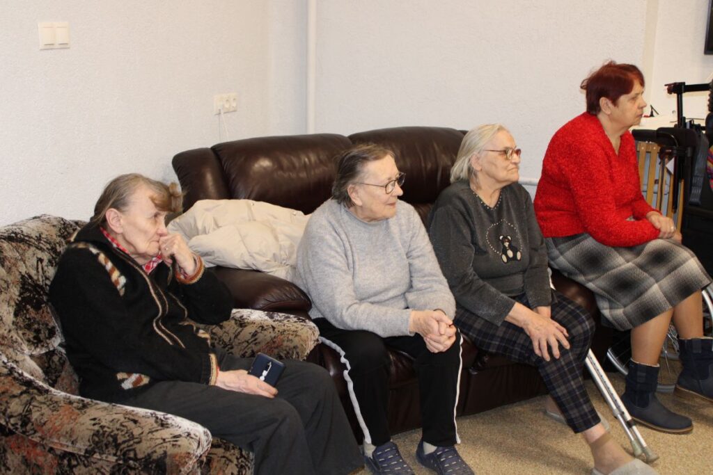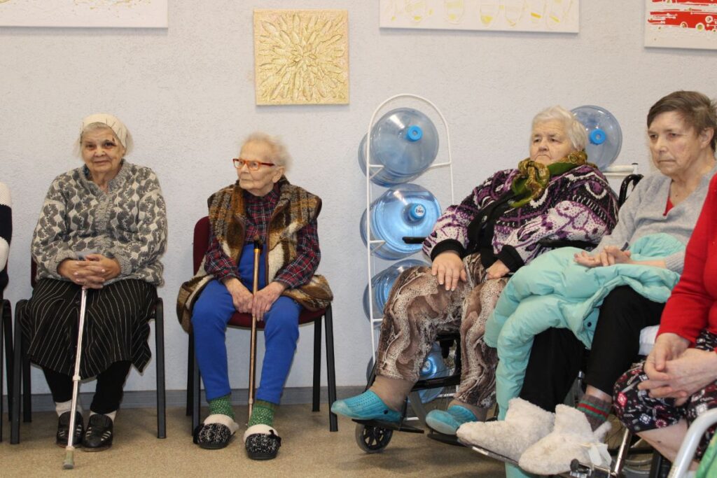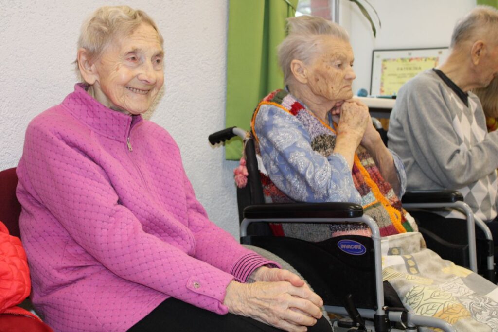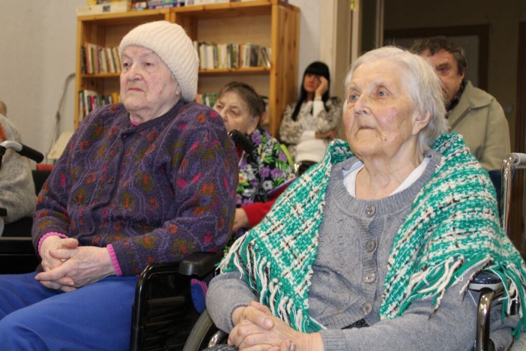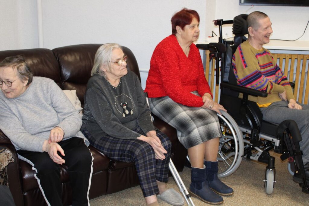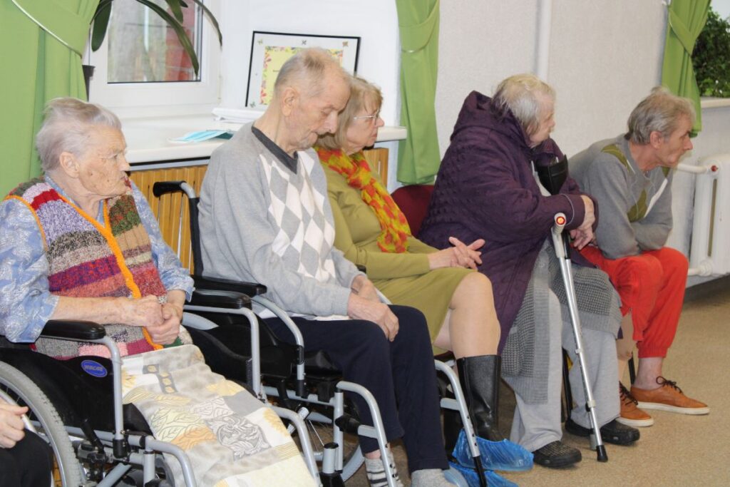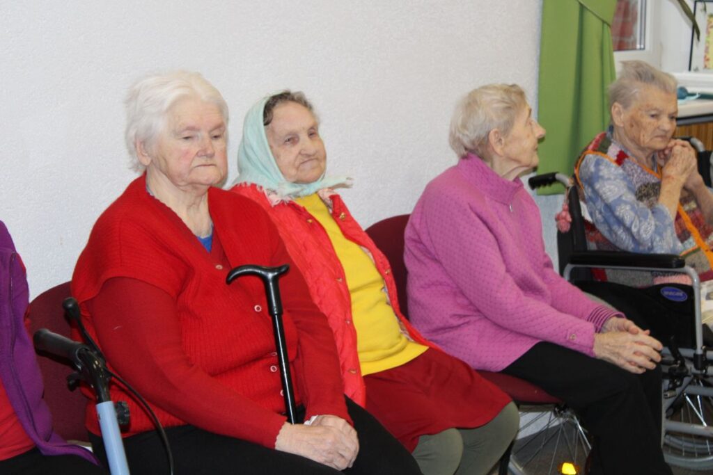Grupiņu “Rūķi” un “Zaķēni” bērni un viņu pirmsskolas skolotājas Gunta Mežule un Inguna Slapjuma, un mūzikas skolotāja Lāsma Serdāne viesojās nodaļā pirms Lieldienām, rādot svētku uzvedumu, izdalot līdzi atvestās dāvanas un iepriecinot pansionāta iemītniekus un darbiniekus.