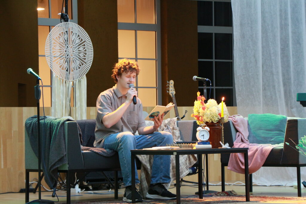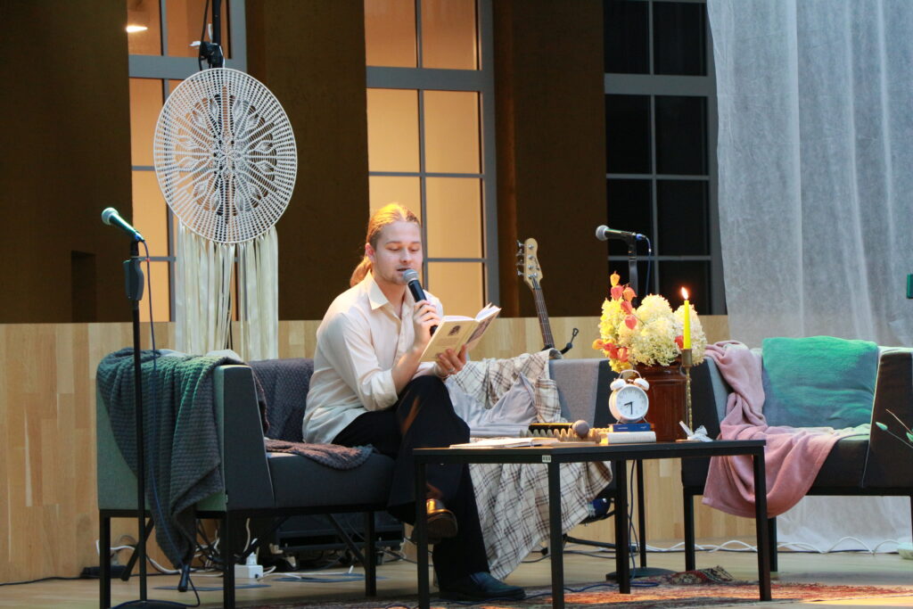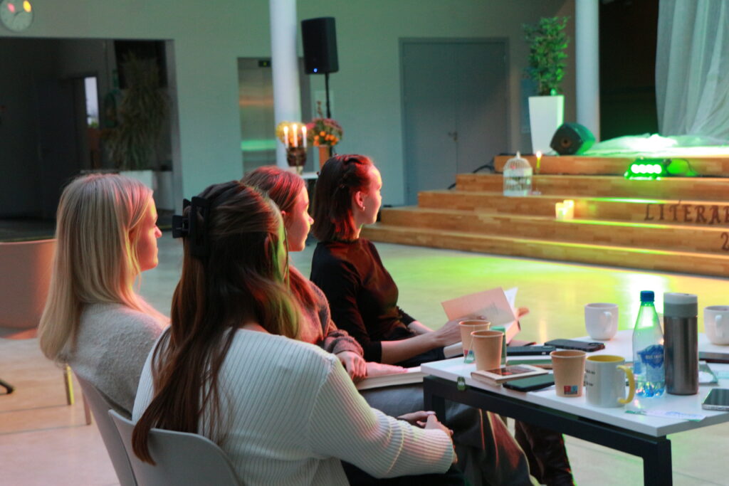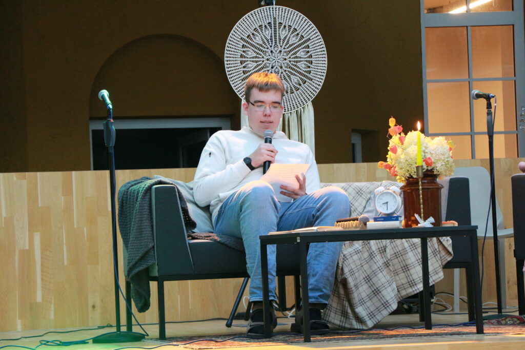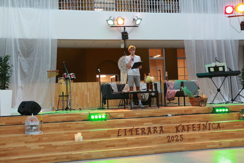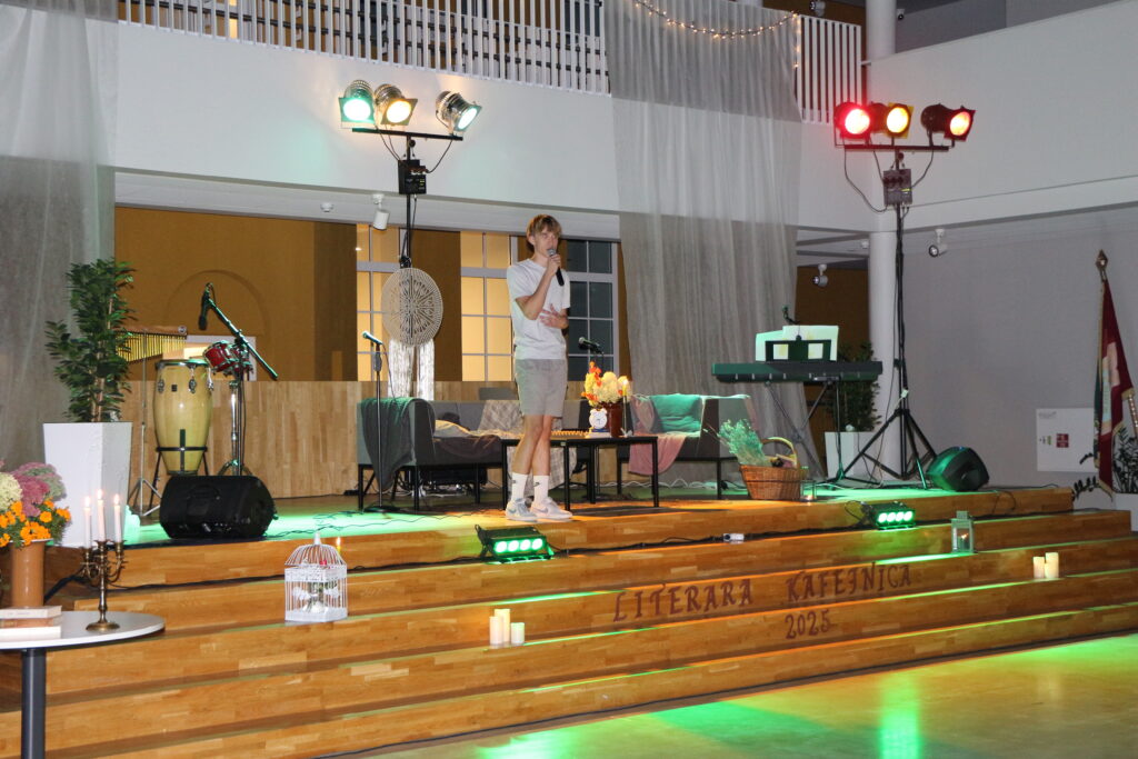 Paldies visiem drosmīgajiem jauniešiem, kuri kāpa uz skatuves, ļaujot klātesošajiem iepazīties ar saviem īpašajiem dzejoļiem! Īpašs prieks pasākumā satikt skolas absolventus, no kuriem vairāki uz “Literāro kafejnīcu” bija mērojuši tālu ceļu, izbrīvējot studentiem tik dārgo laiku… Literārajā kafejnīcā atkal skanēja Dāvja Grabovska dzejoļi, kas tapuši, vēl mācoties Smiltenes vidusskolā. Jau pavisam drīz Dāvis dosies uz Vāciju. Viņš tagad ir Pasavas universitātes (University of Passau) students.