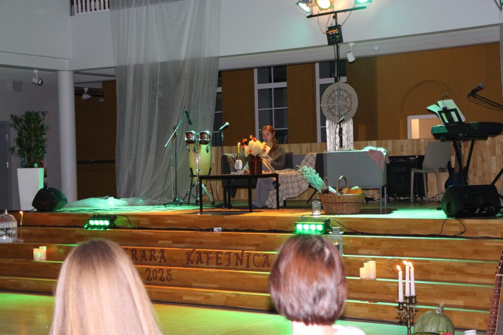 Skolas lielajā zālē smaržoja rudens ziedi, sveču gaismā skanēja mūzika un dzeja, uzrunājot sirdi un rosinot padomāt par vērtībām, kas rosina neapstāties pie ikdienišķiem sīkumiem un raudzīties šajā pasaulē plašāk – ar mīlestību, iejūtību, ar labestību un draudzīgu smaidu.