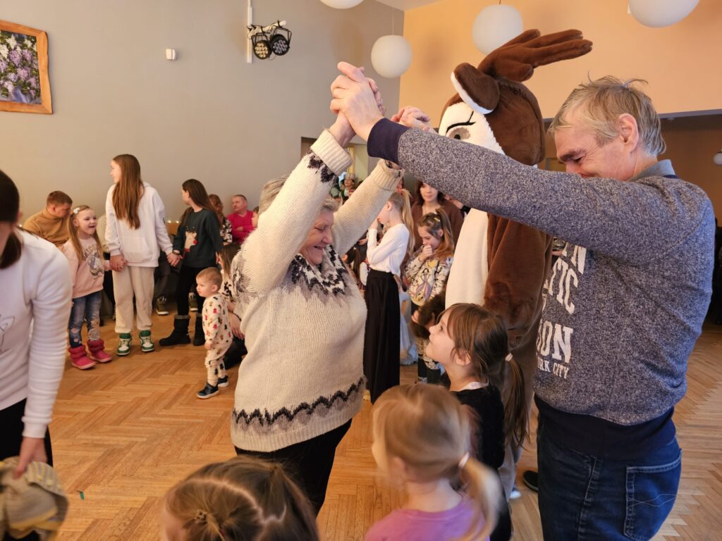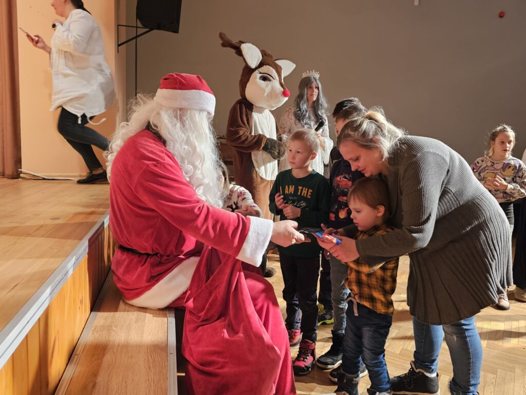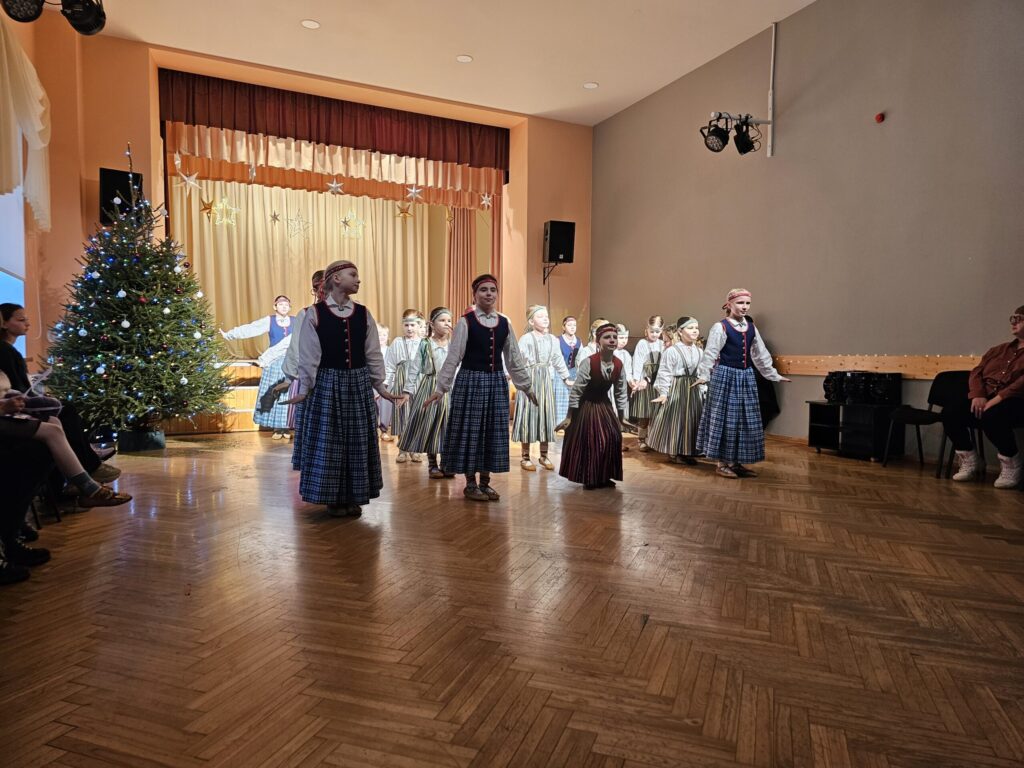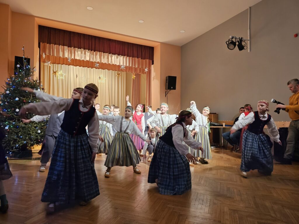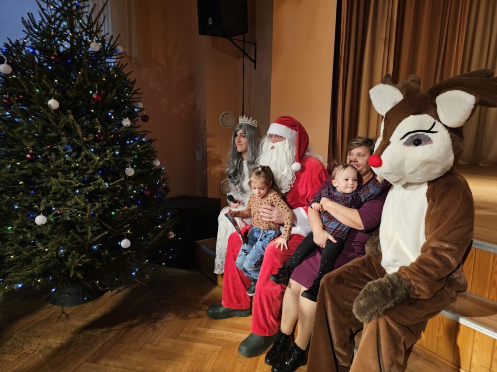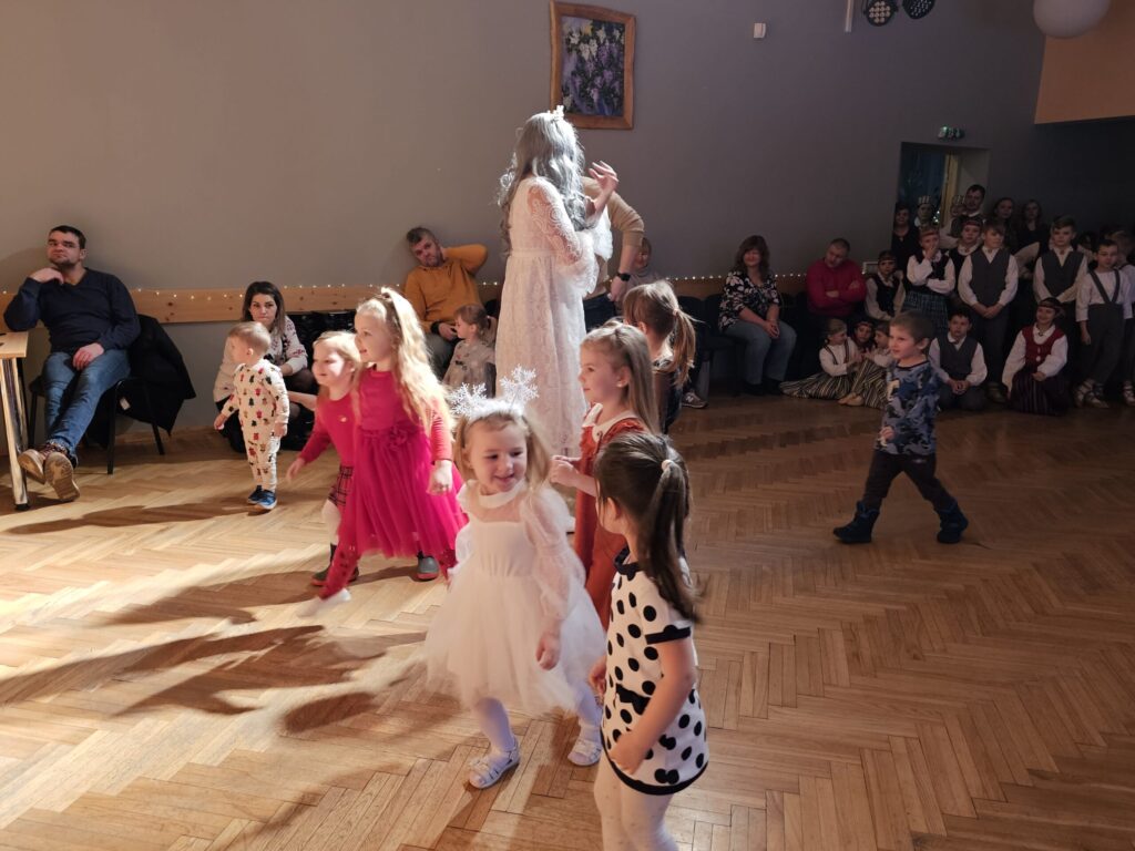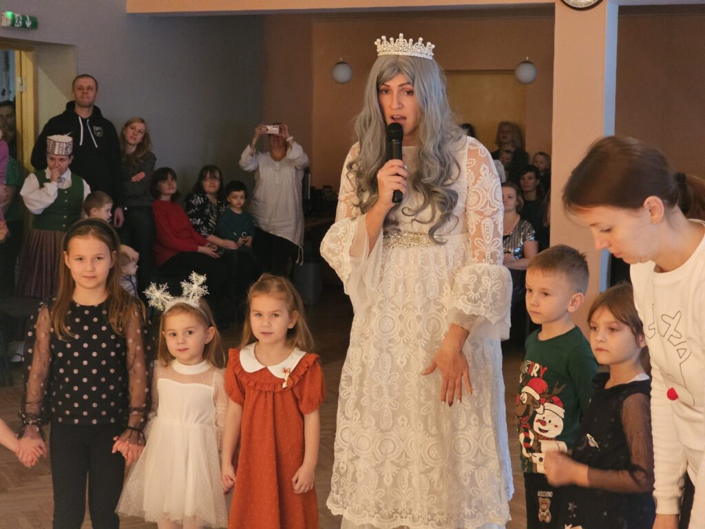 Pēc sniegpārsliņas, Ziemassvētku vecīša un brieža priekšnesuma visus iepriecināja tautas deju kolektīvs “Vainadziņš” un vidējās paaudzes deju kolektīvs “Spriņģi”. Pēc tam ikviens varēja piedalīties Ziemassvētku radošajā darbnīcā.