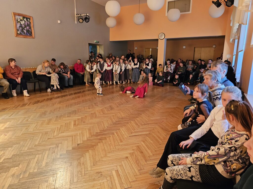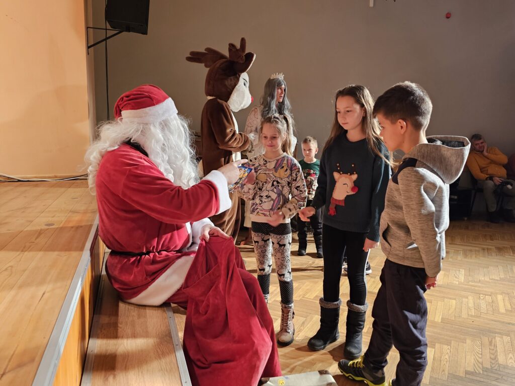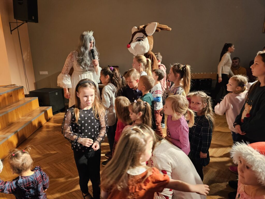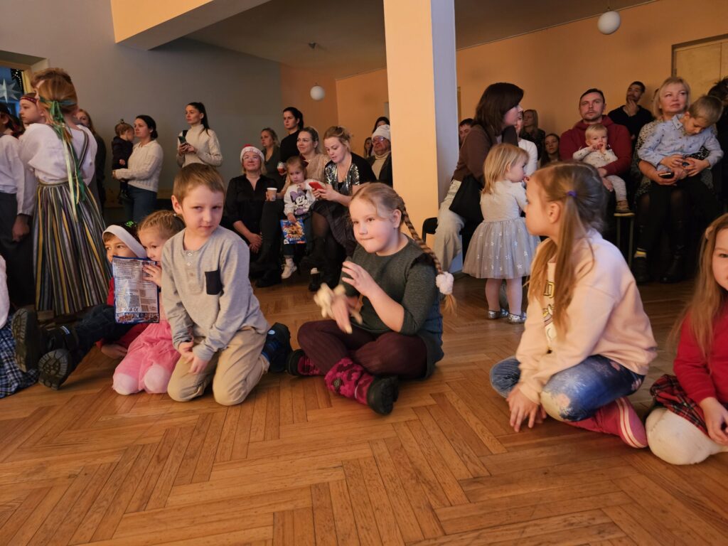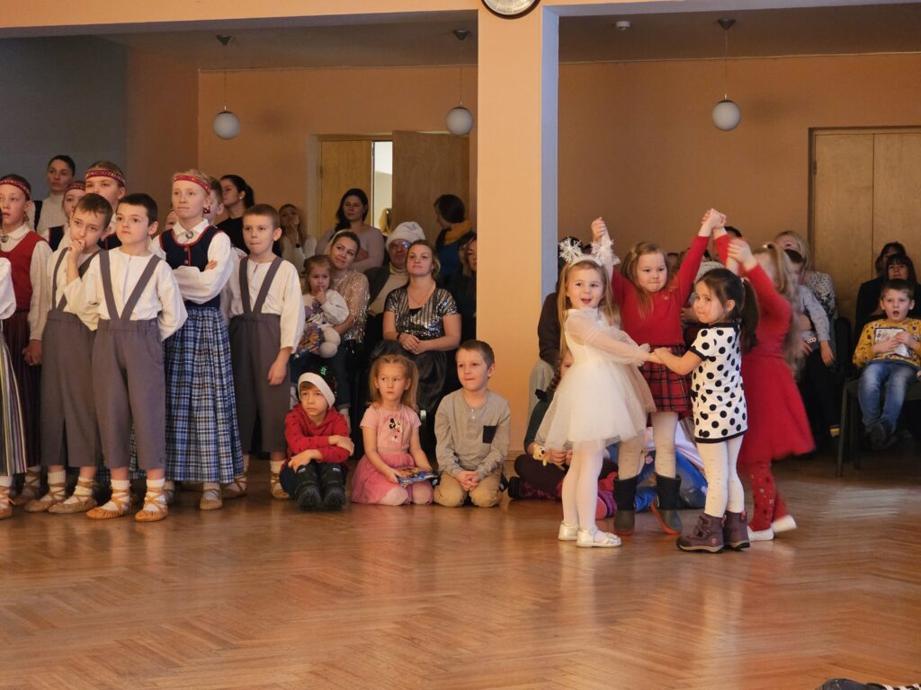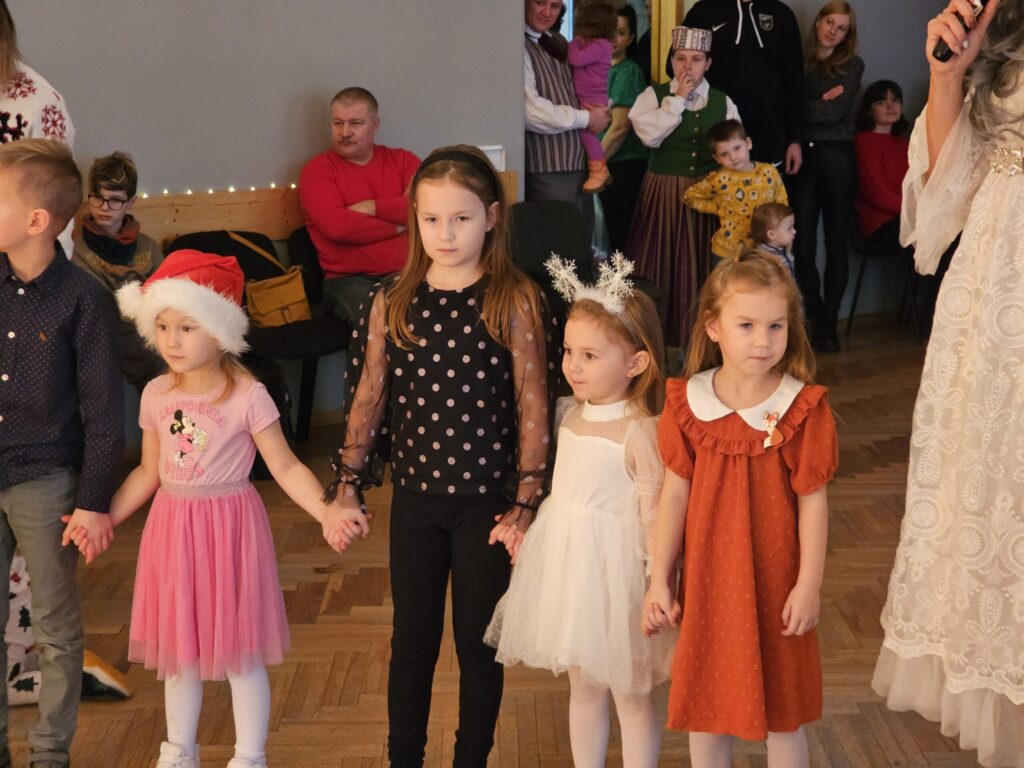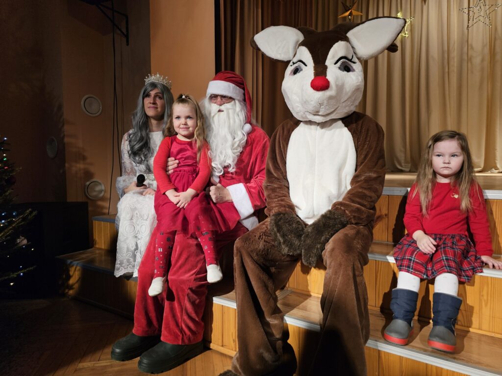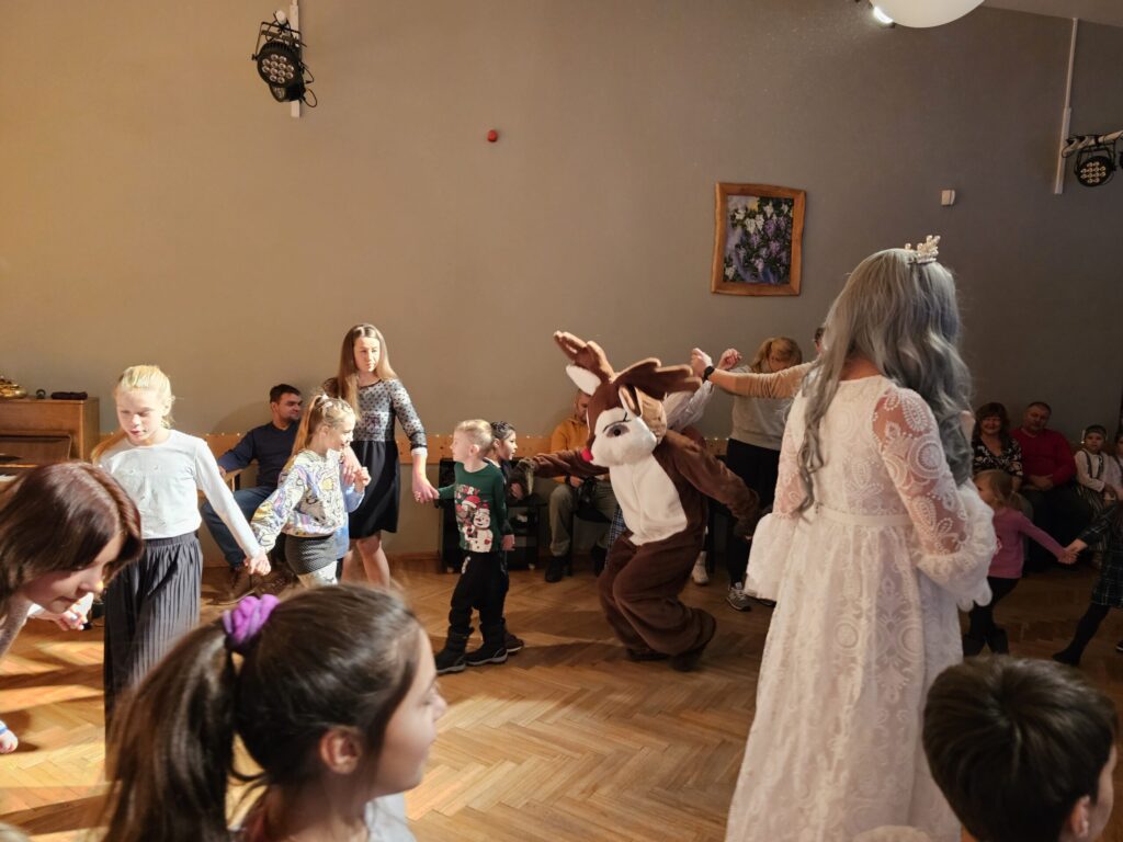 Pēc sniegpārsliņas, Ziemassvētku vecīša un brieža priekšnesuma visus iepriecināja tautas deju kolektīvs “Vainadziņš” un vidējās paaudzes deju kolektīvs “Spriņģi”. Pēc tam ikviens varēja piedalīties Ziemassvētku radošajā darbnīcā.
