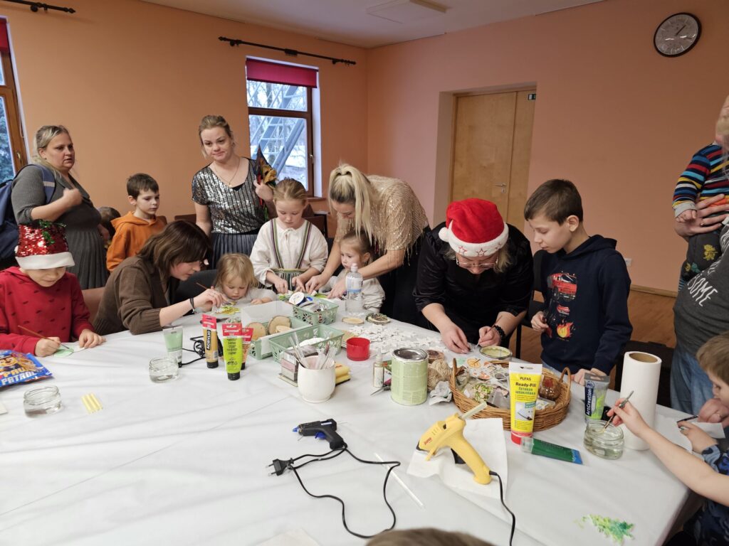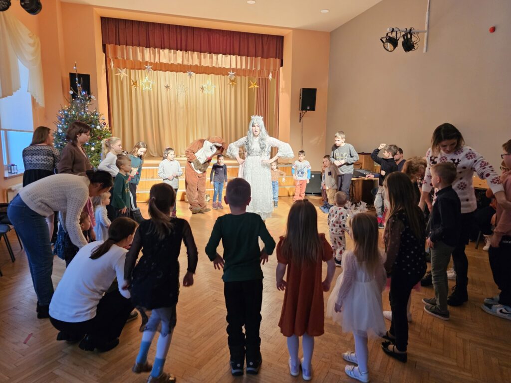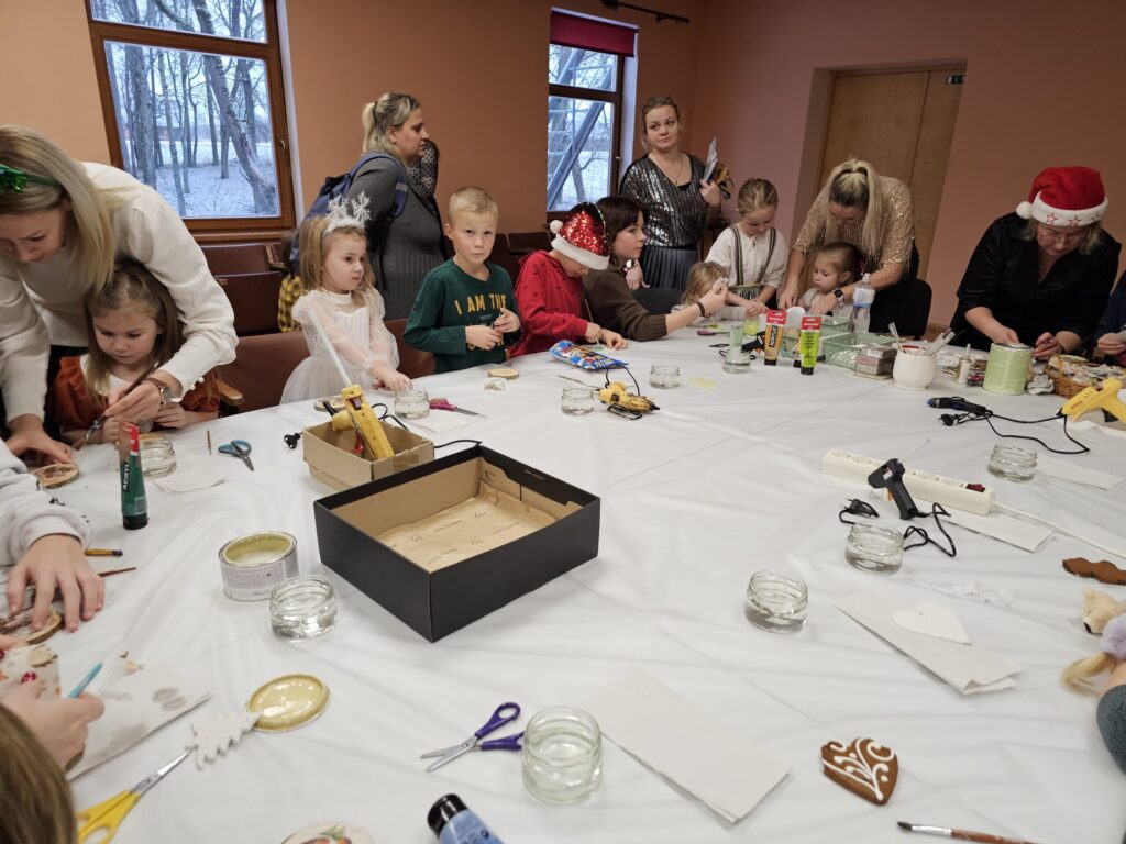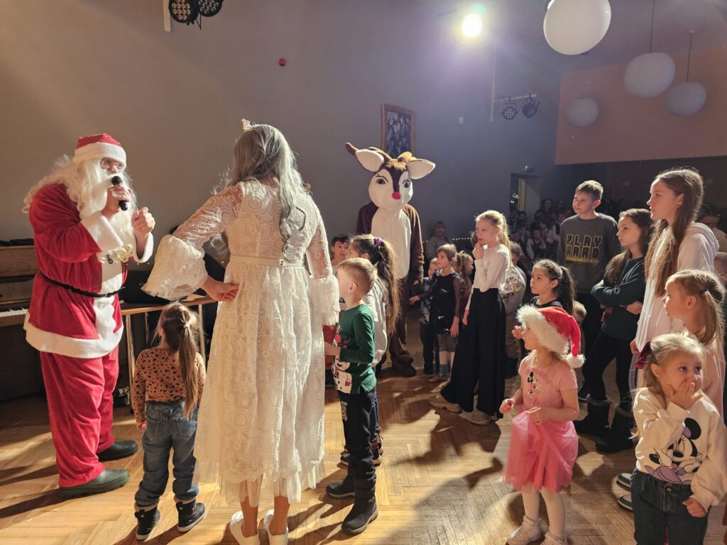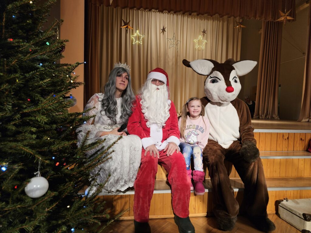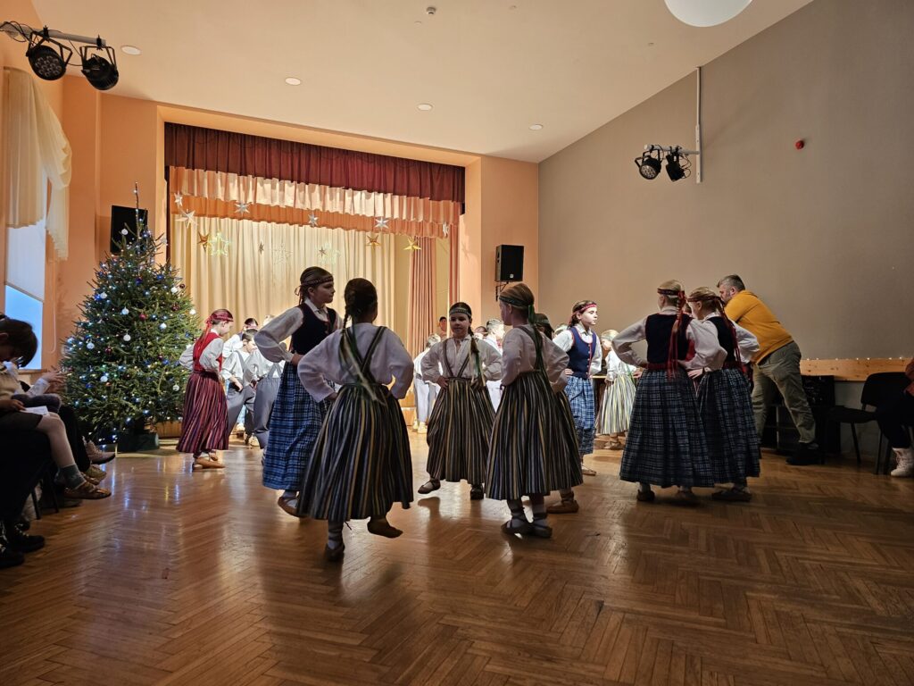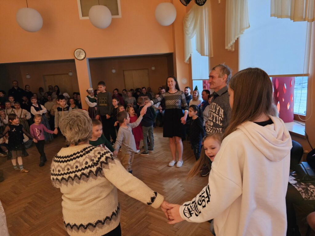 Pēc sniegpārsliņas, Ziemassvētku vecīša un brieža priekšnesuma visus iepriecināja tautas deju kolektīvs “Vainadziņš” un vidējās paaudzes deju kolektīvs “Spriņģi”. Pēc tam ikviens varēja piedalīties Ziemassvētku radošajā darbnīcā.