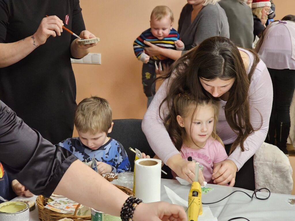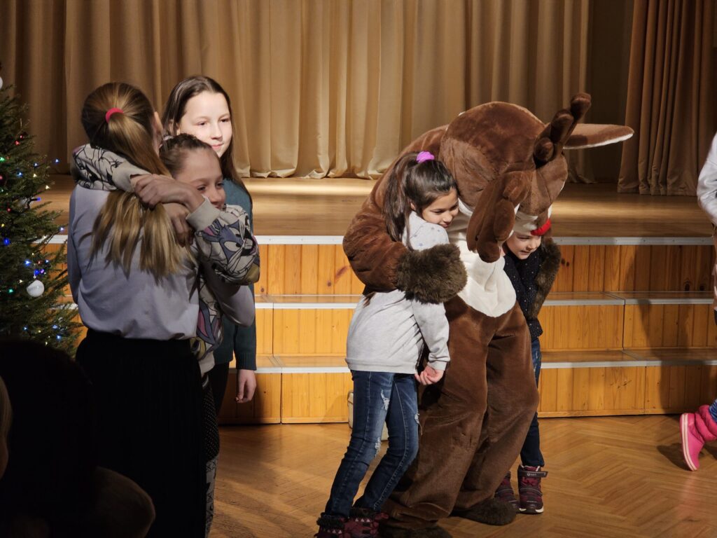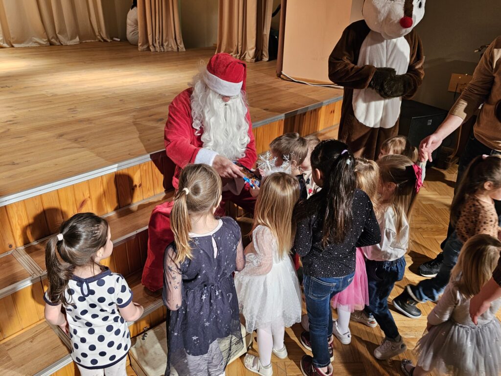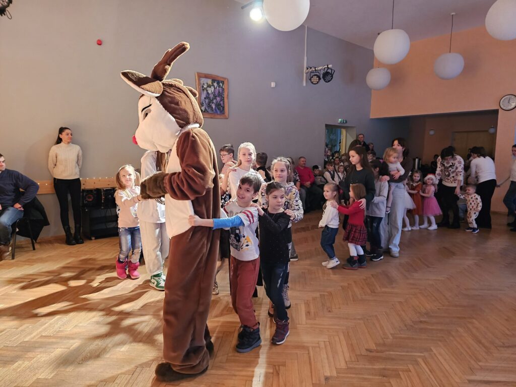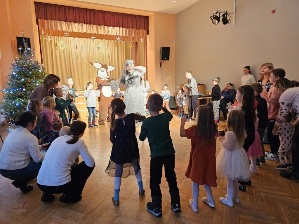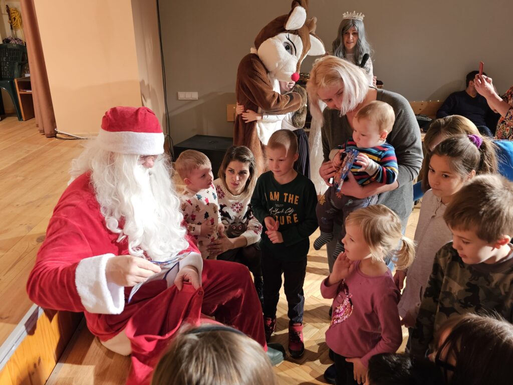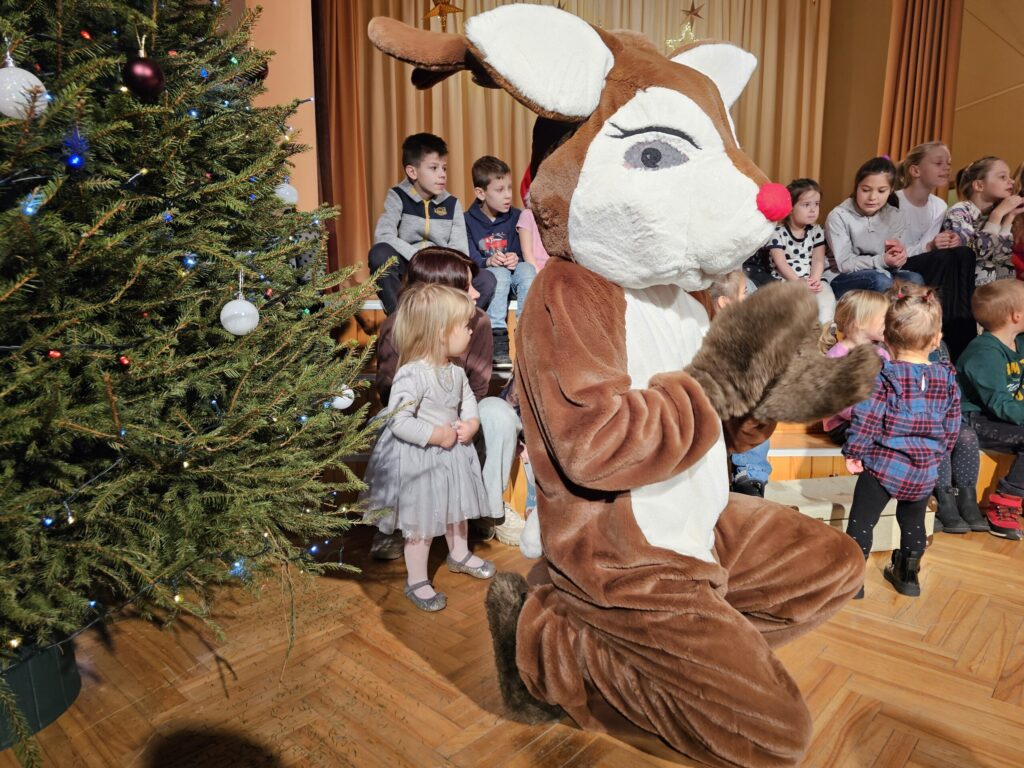 Pēc sniegpārsliņas, Ziemassvētku vecīša un brieža priekšnesuma visus iepriecināja tautas deju kolektīvs “Vainadziņš” un vidējās paaudzes deju kolektīvs “Spriņģi”. Pēc tam ikviens varēja piedalīties Ziemassvētku radošajā darbnīcā.