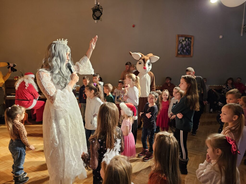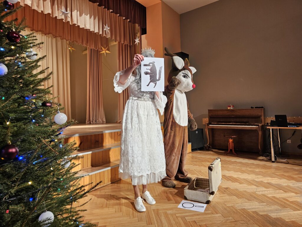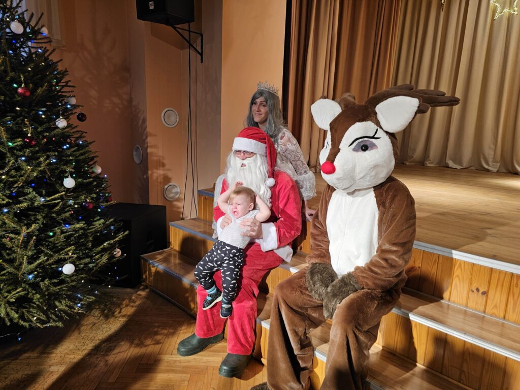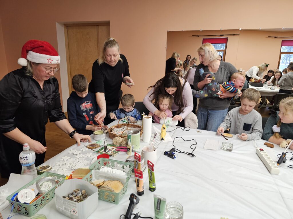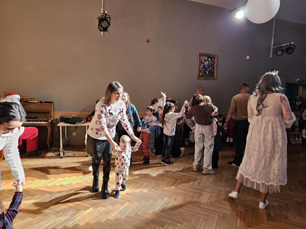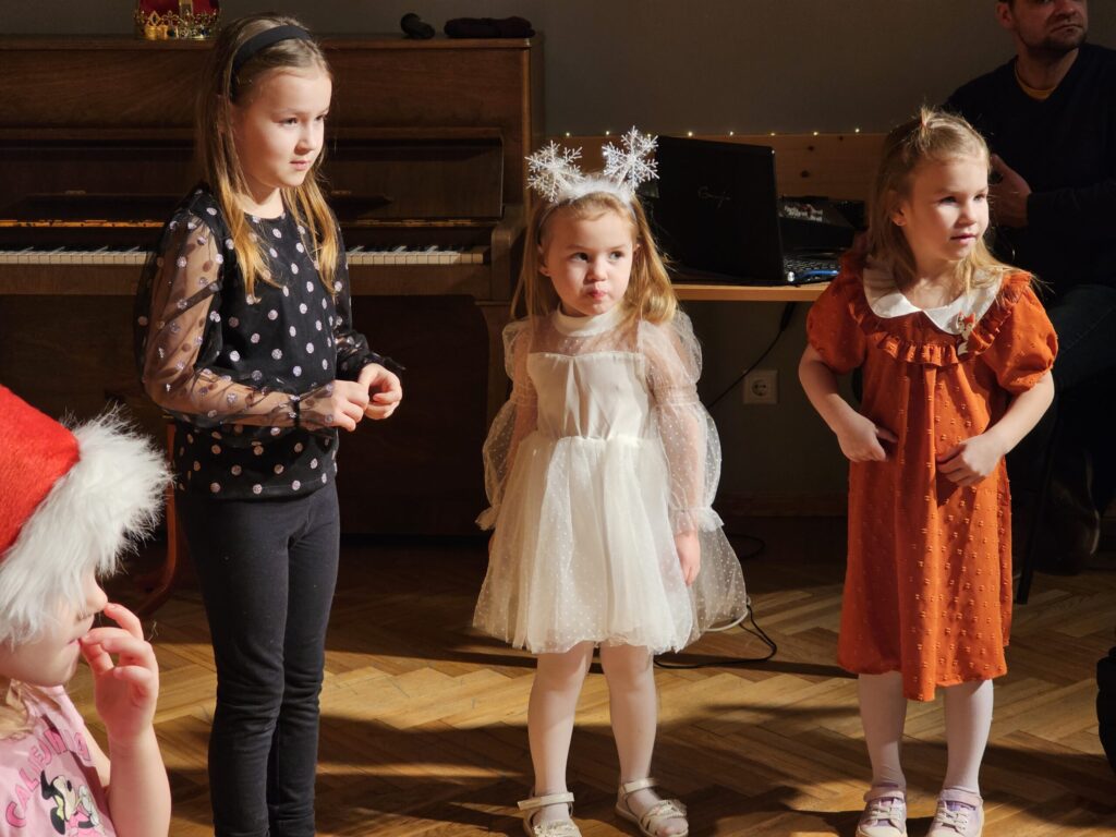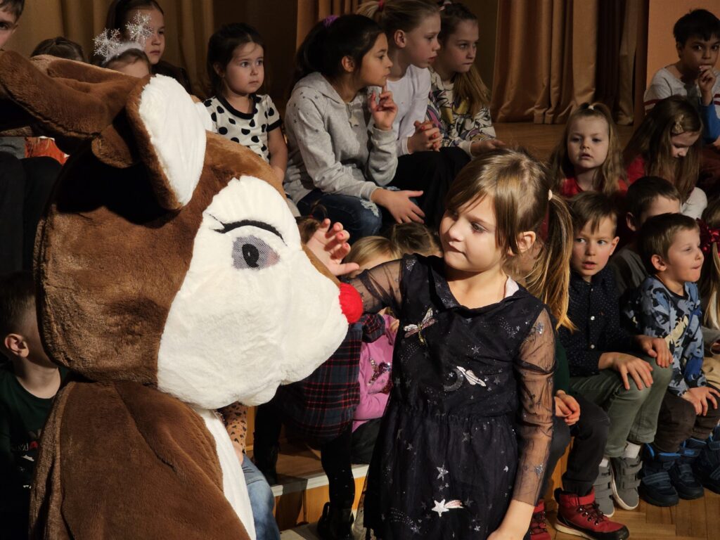 Pēc sniegpārsliņas, Ziemassvētku vecīša un brieža priekšnesuma visus iepriecināja tautas deju kolektīvs “Vainadziņš” un vidējās paaudzes deju kolektīvs “Spriņģi”. Pēc tam ikviens varēja piedalīties Ziemassvētku radošajā darbnīcā.