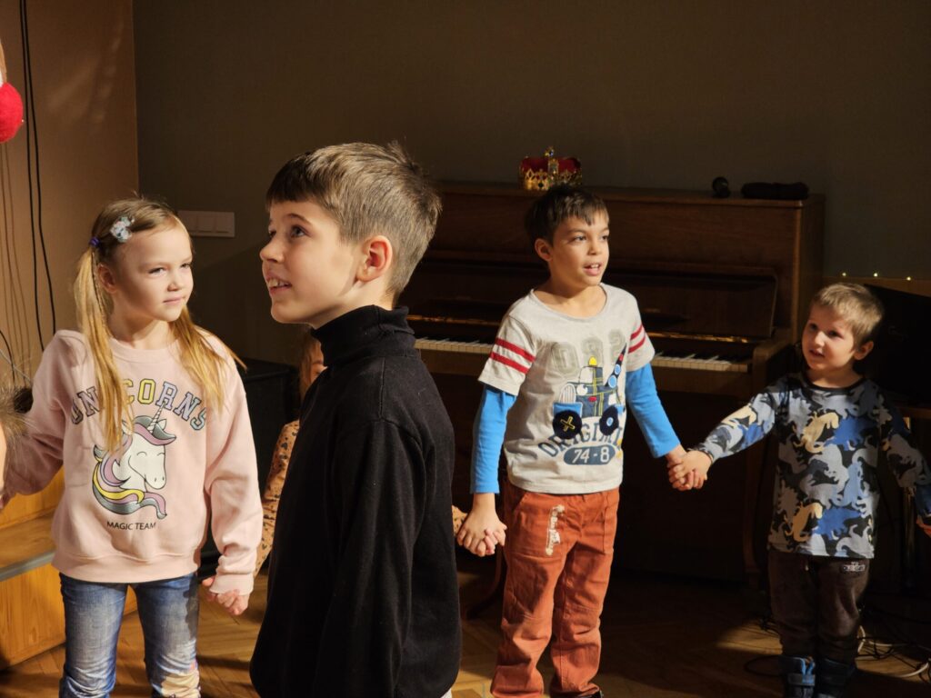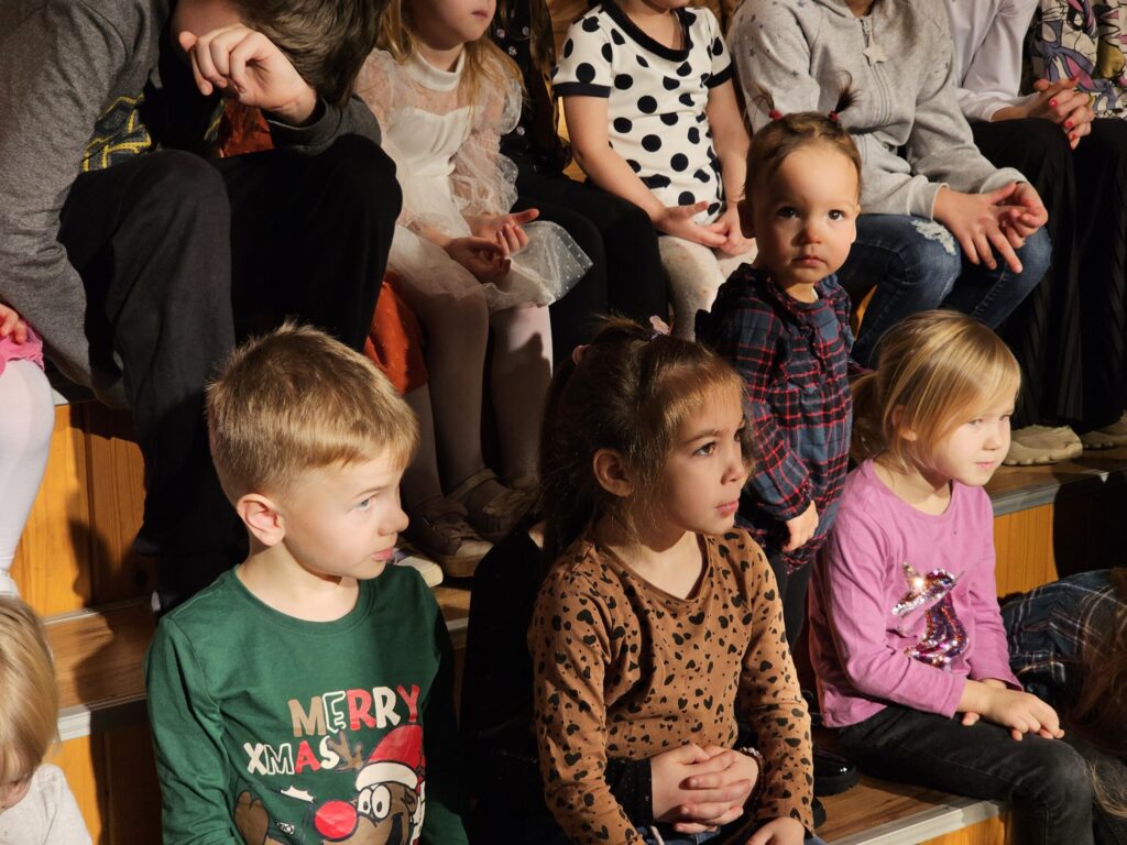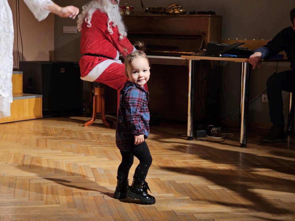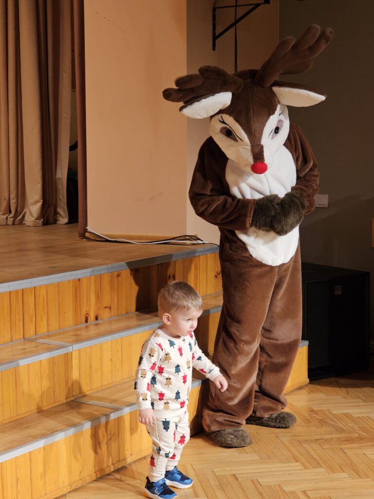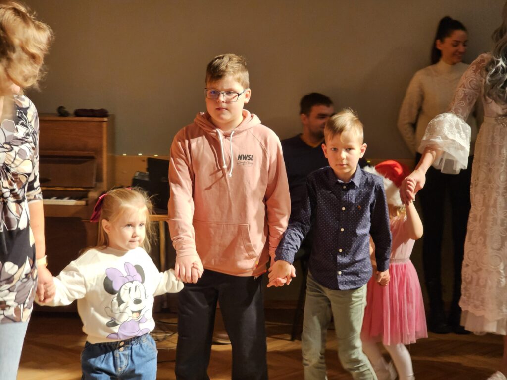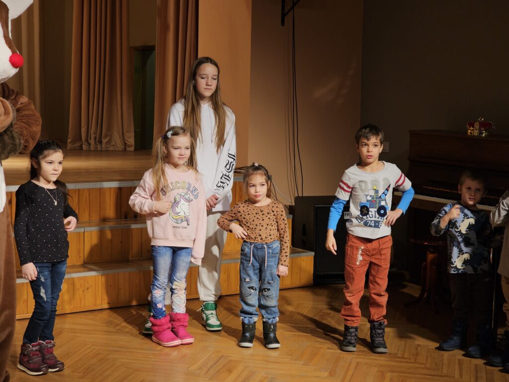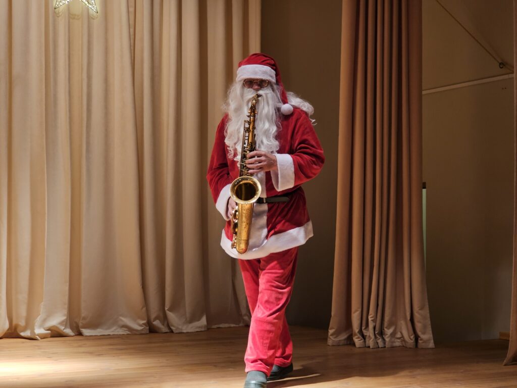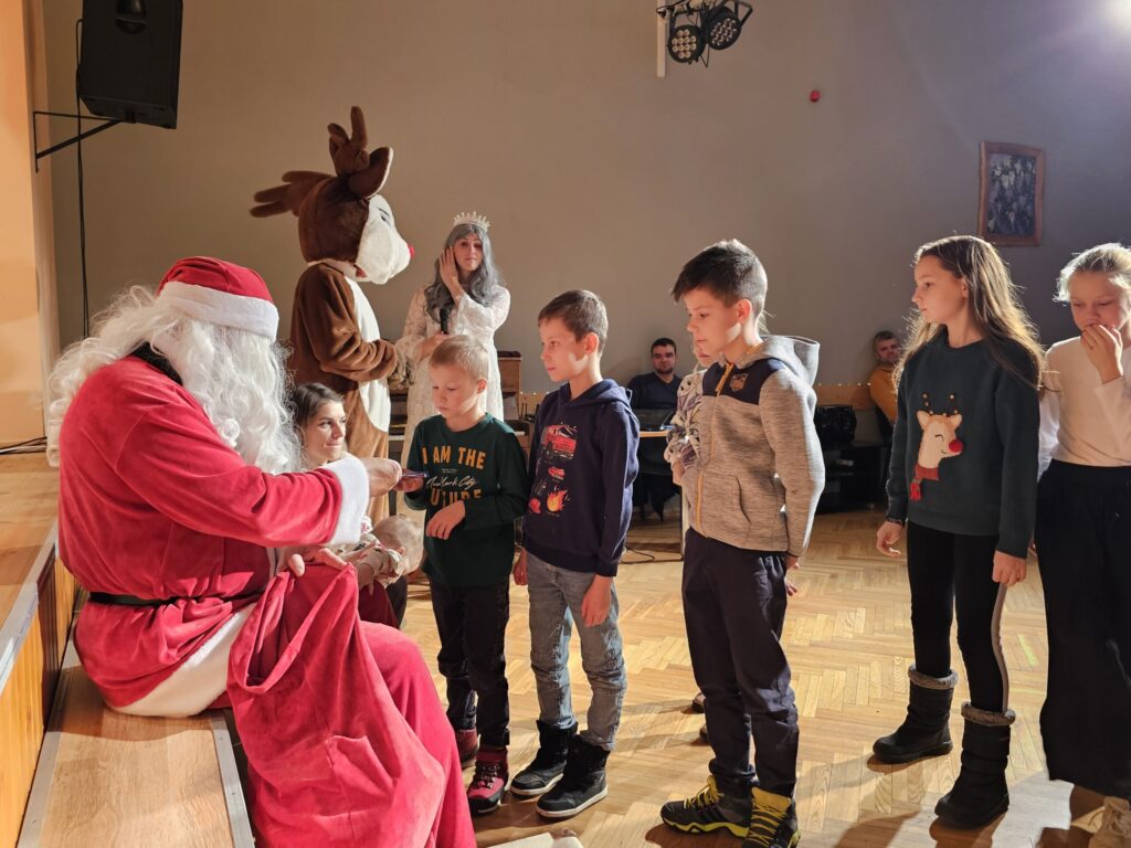 Pēc sniegpārsliņas, Ziemassvētku vecīša un brieža priekšnesuma visus iepriecināja tautas deju kolektīvs “Vainadziņš” un vidējās paaudzes deju kolektīvs “Spriņģi”. Pēc tam ikviens varēja piedalīties Ziemassvētku radošajā darbnīcā.