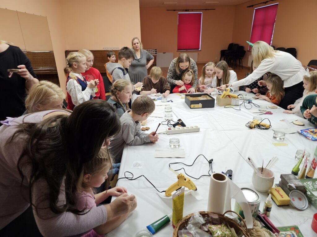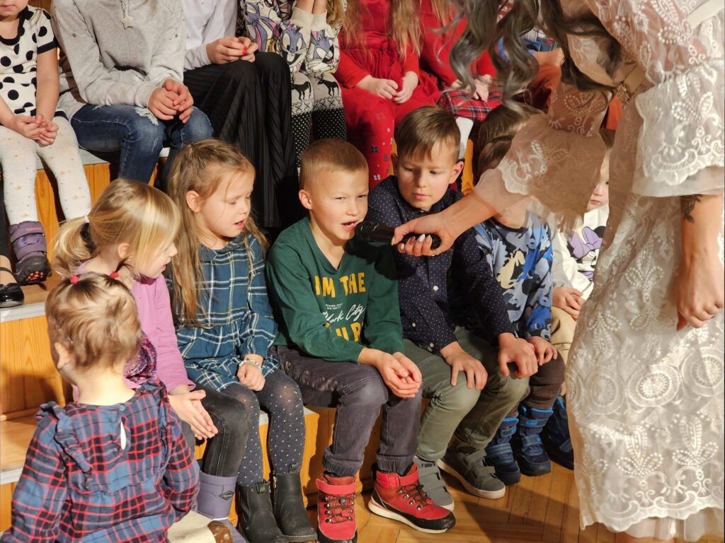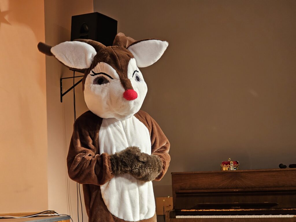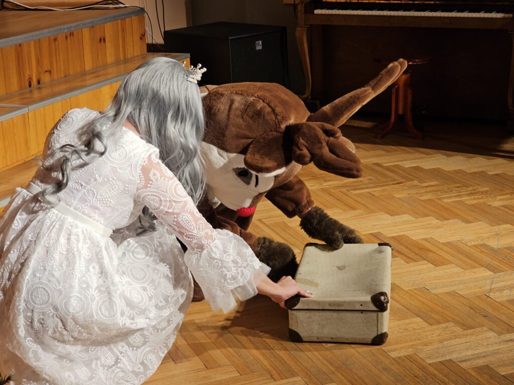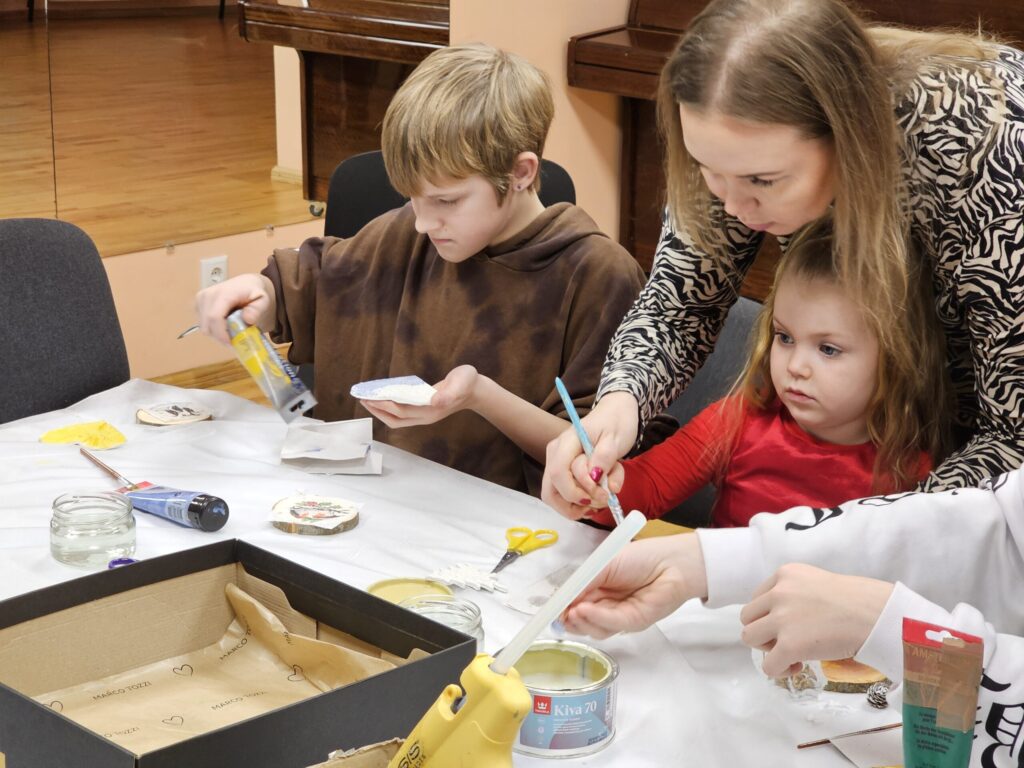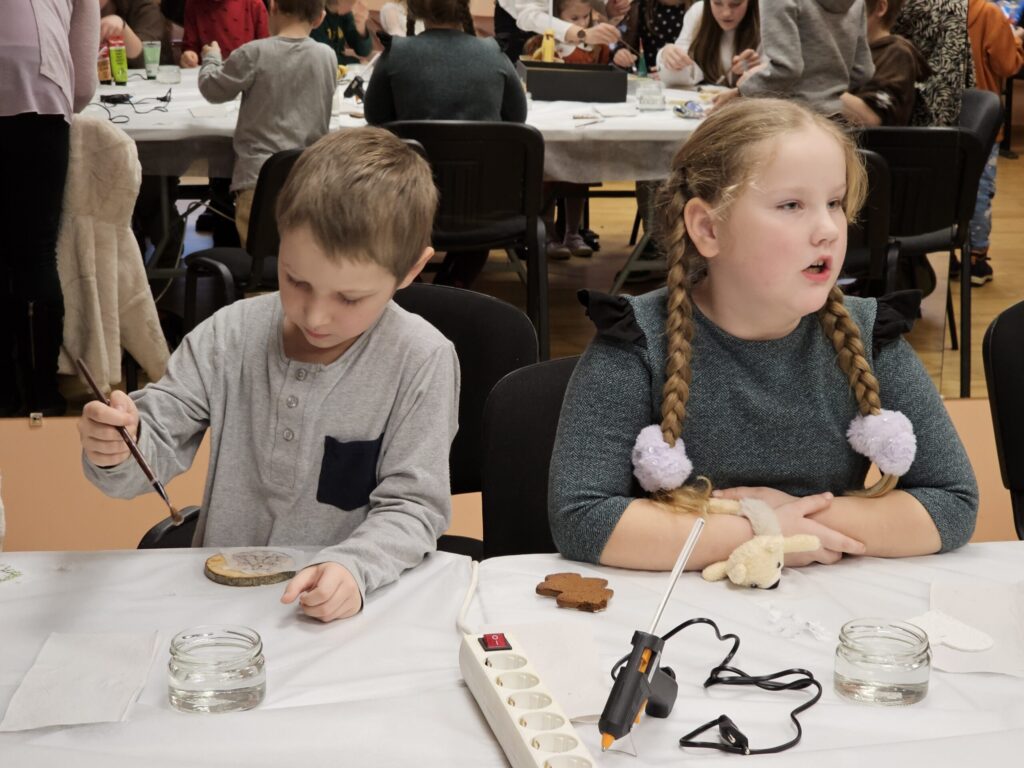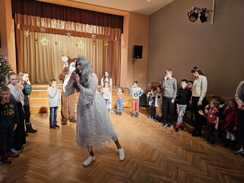 Pēc sniegpārsliņas, Ziemassvētku vecīša un brieža priekšnesuma visus iepriecināja tautas deju kolektīvs “Vainadziņš” un vidējās paaudzes deju kolektīvs “Spriņģi”. Pēc tam ikviens varēja piedalīties Ziemassvētku radošajā darbnīcā.