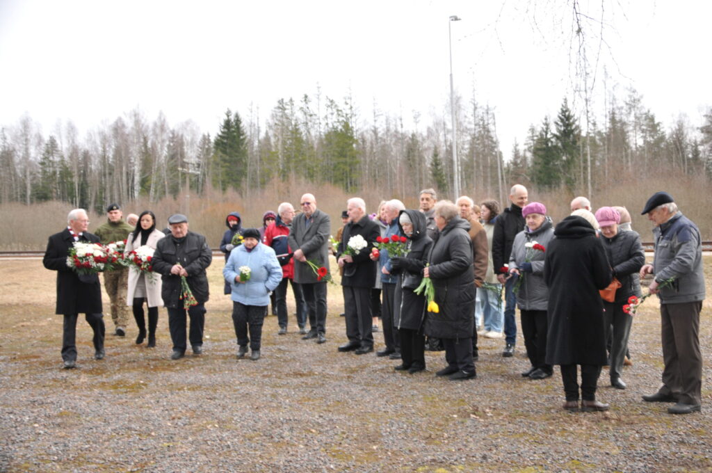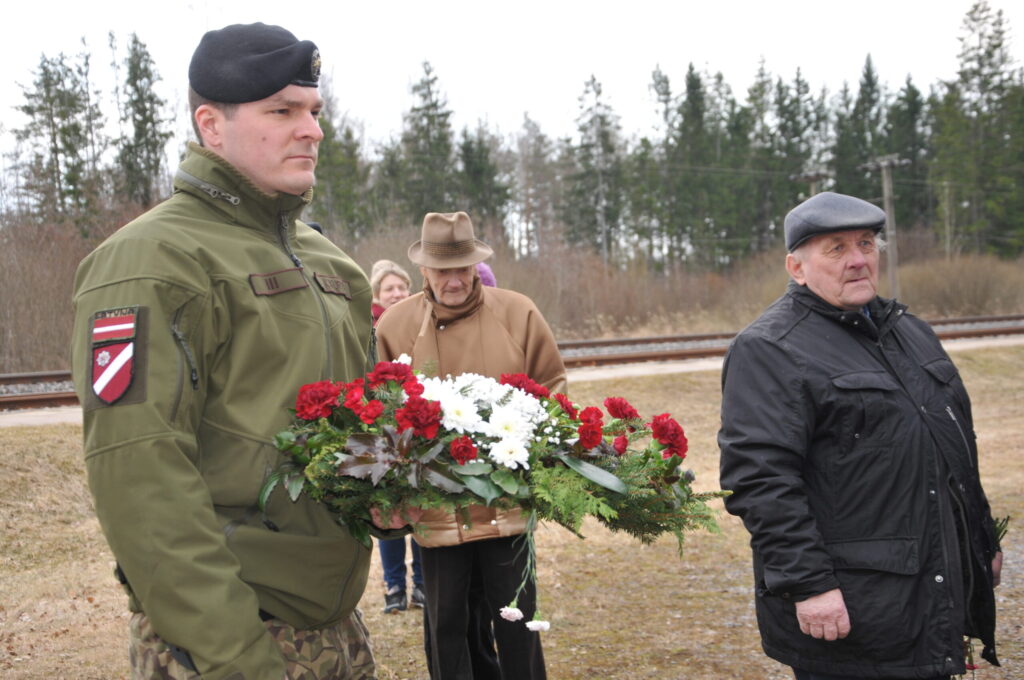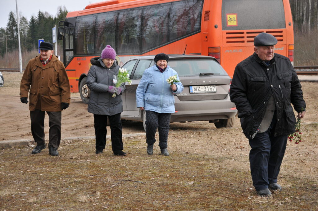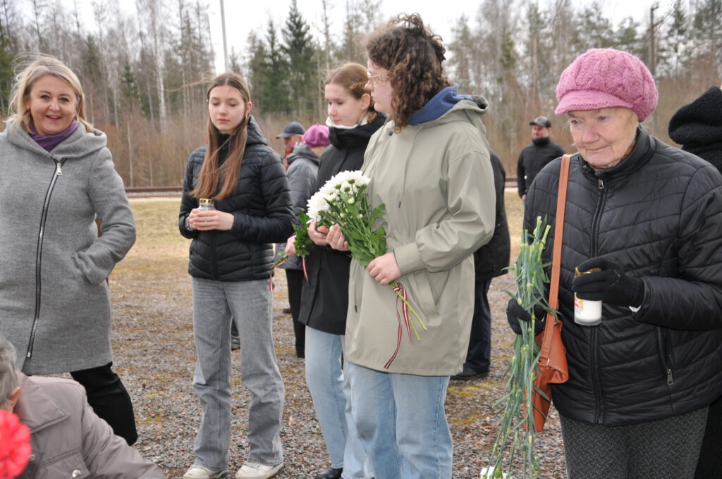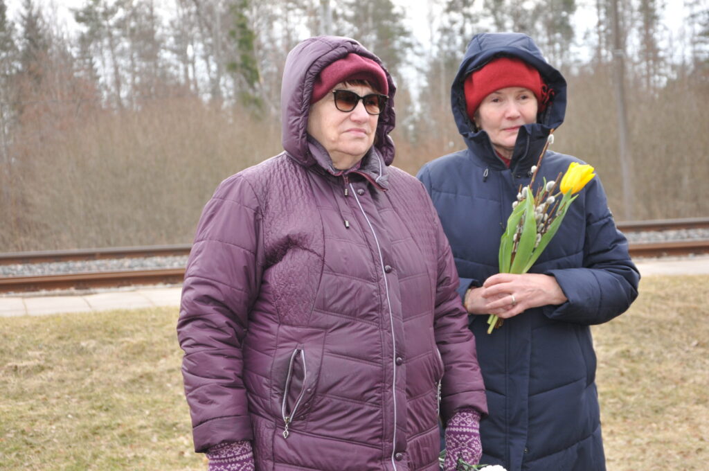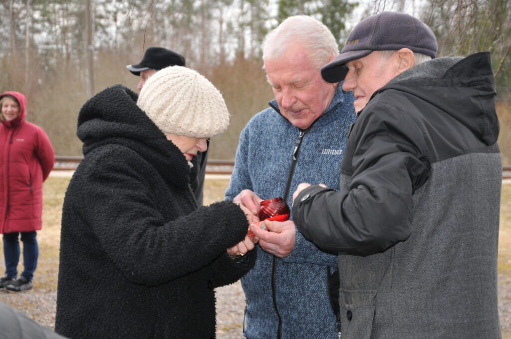FOTO: Lugažu stacijā ar ziediem un svecēm piemin padomju represijās cietušos