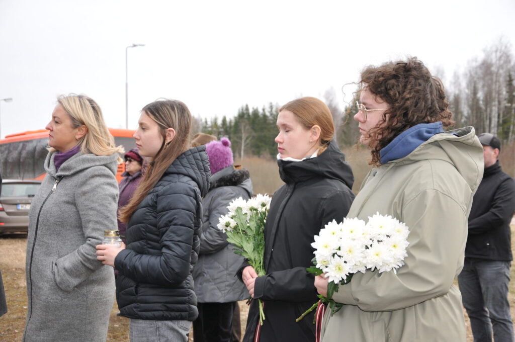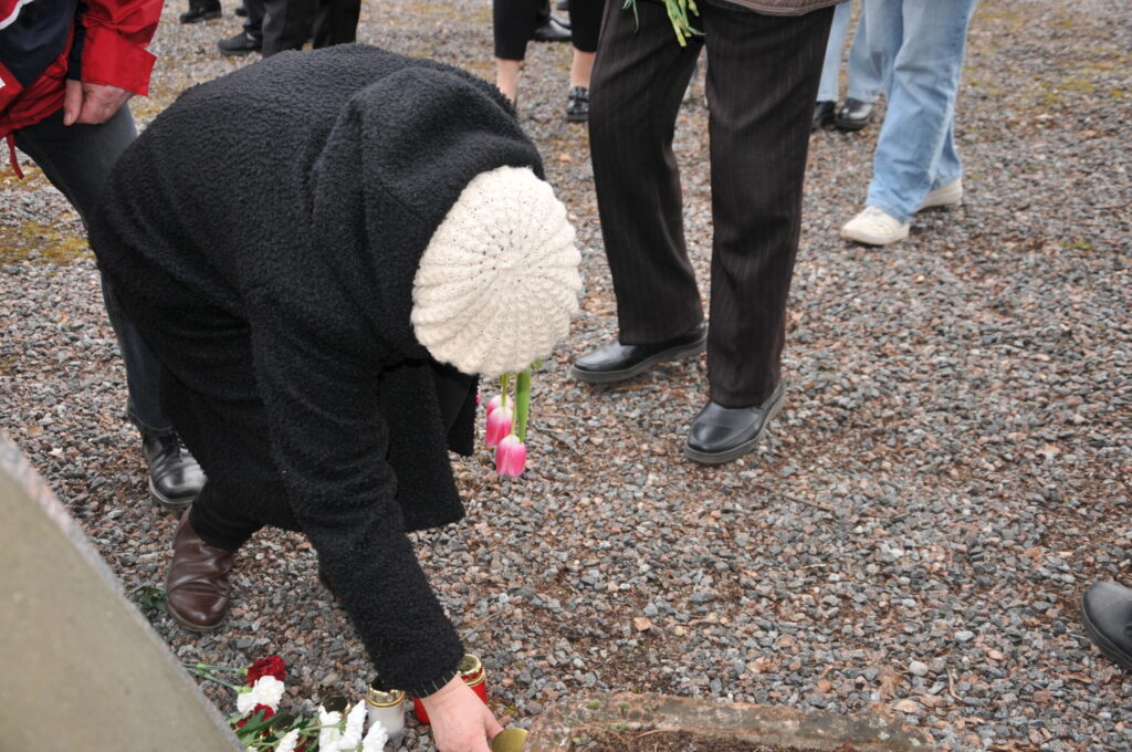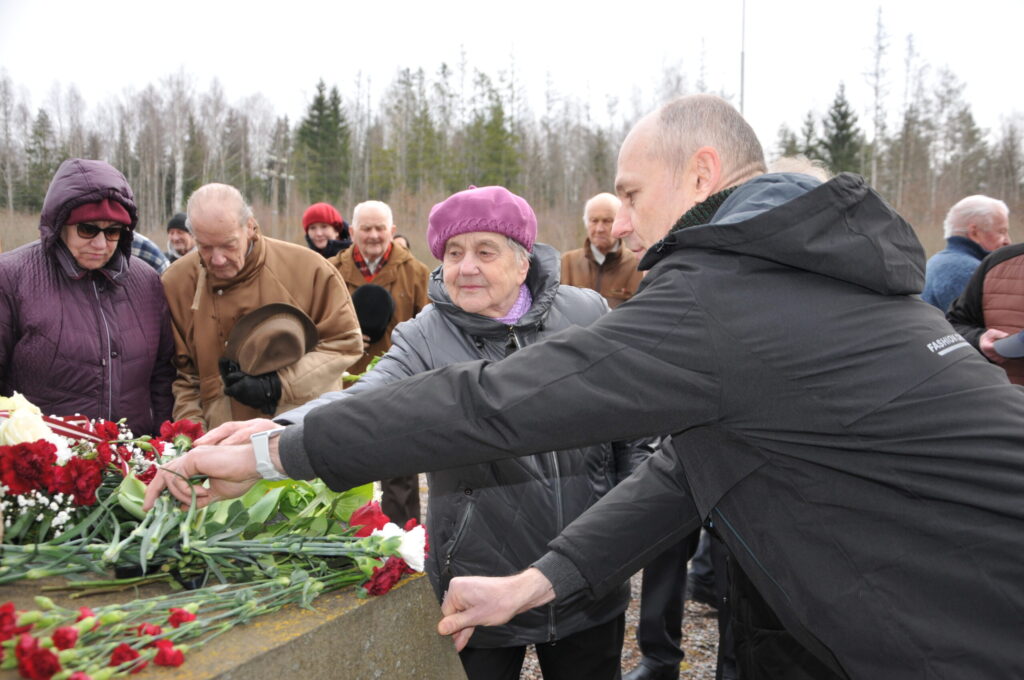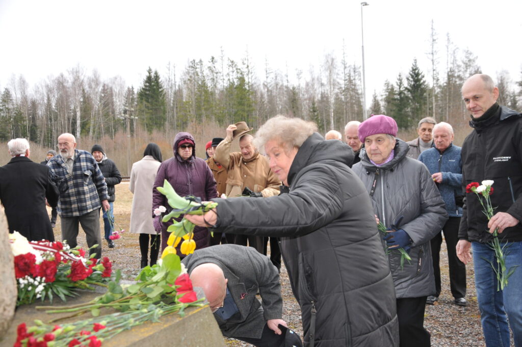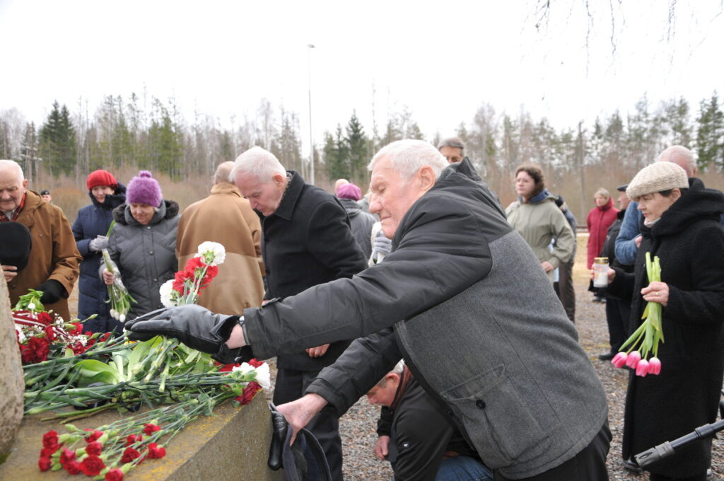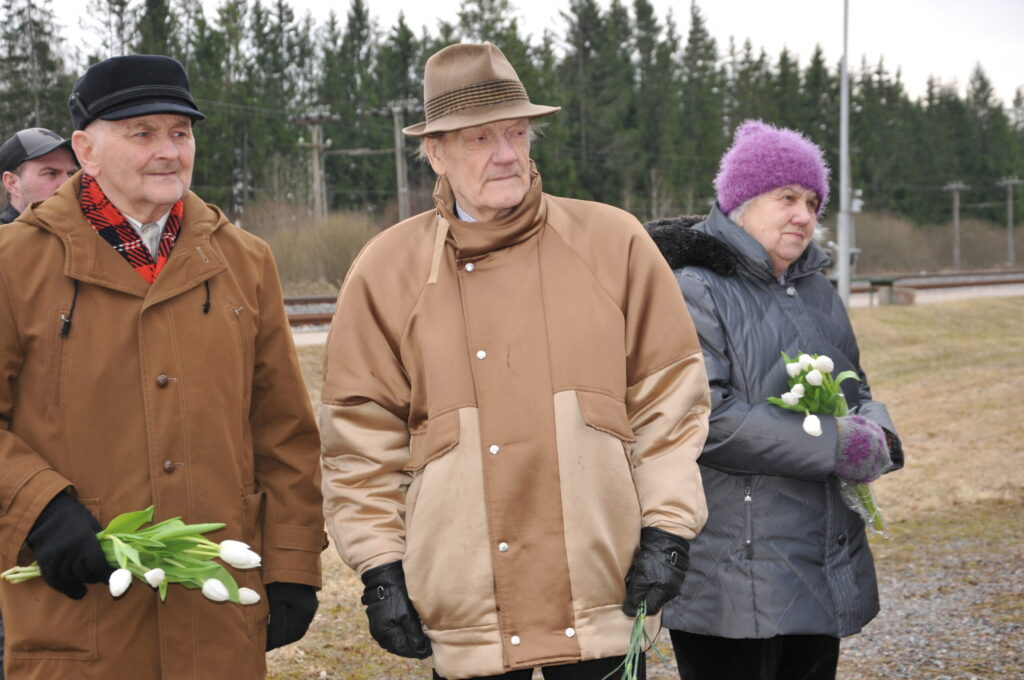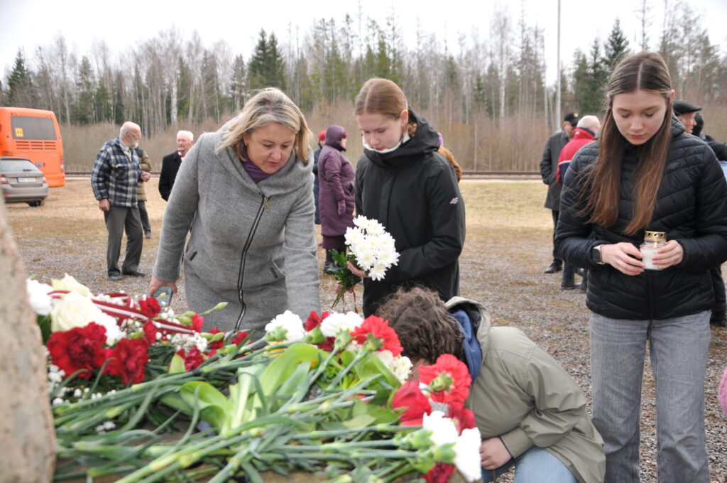 FOTO: Lugažu stacijā ar ziediem un svecēm piemin padomju represijās cietušos