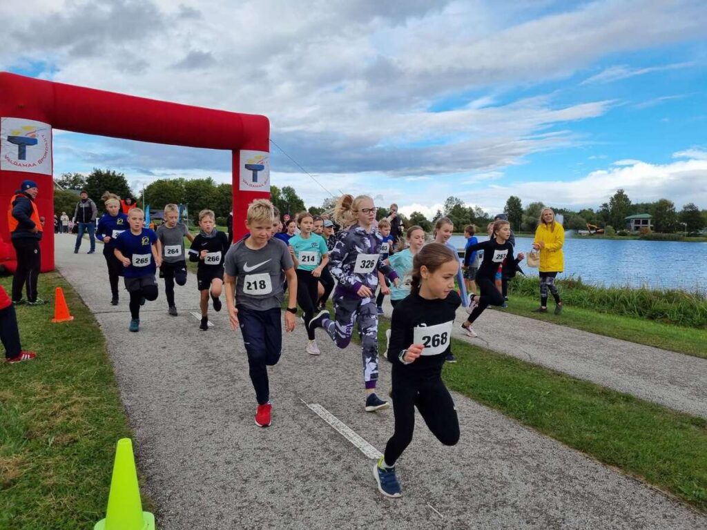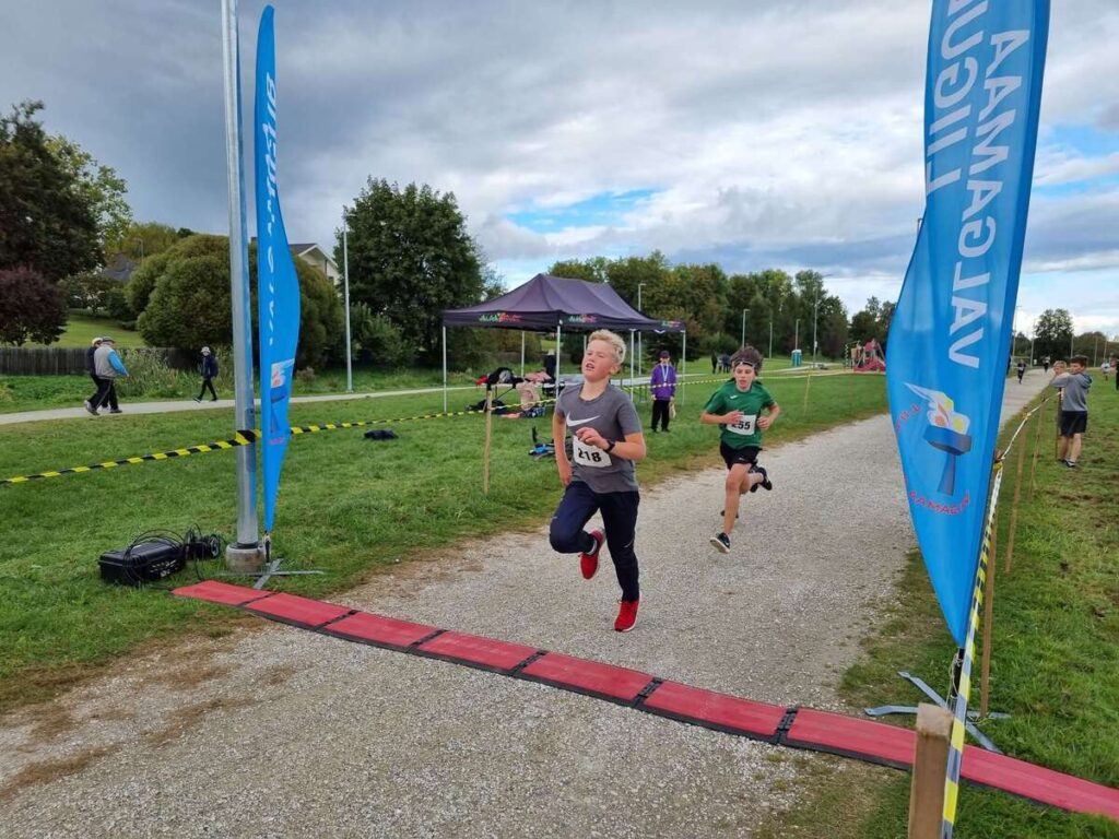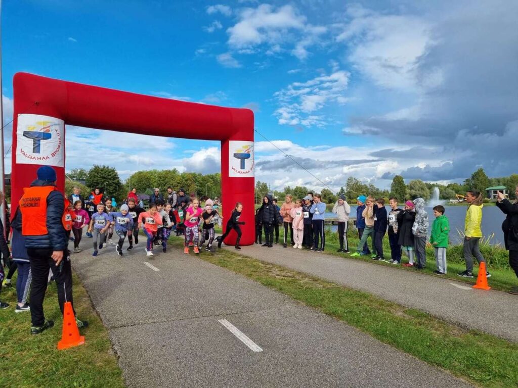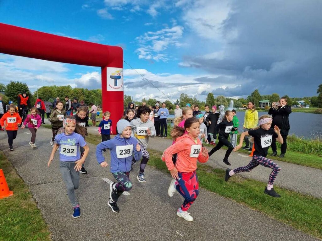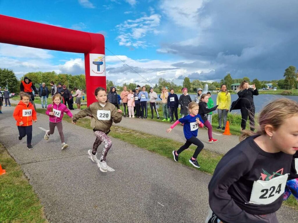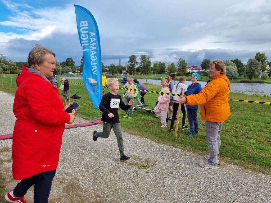 No 15:00 ik pa 10 minūtēm tika doti starti skolēnu skrējieniem, distancē kopumā devās 69 Valkas un Valgas skolēni.