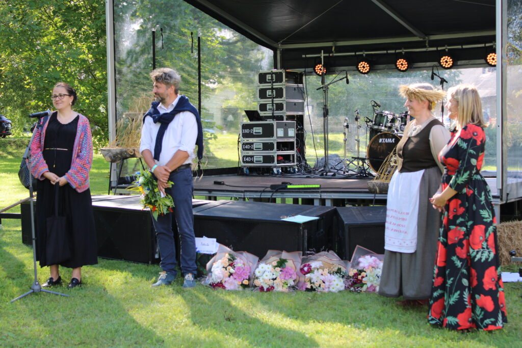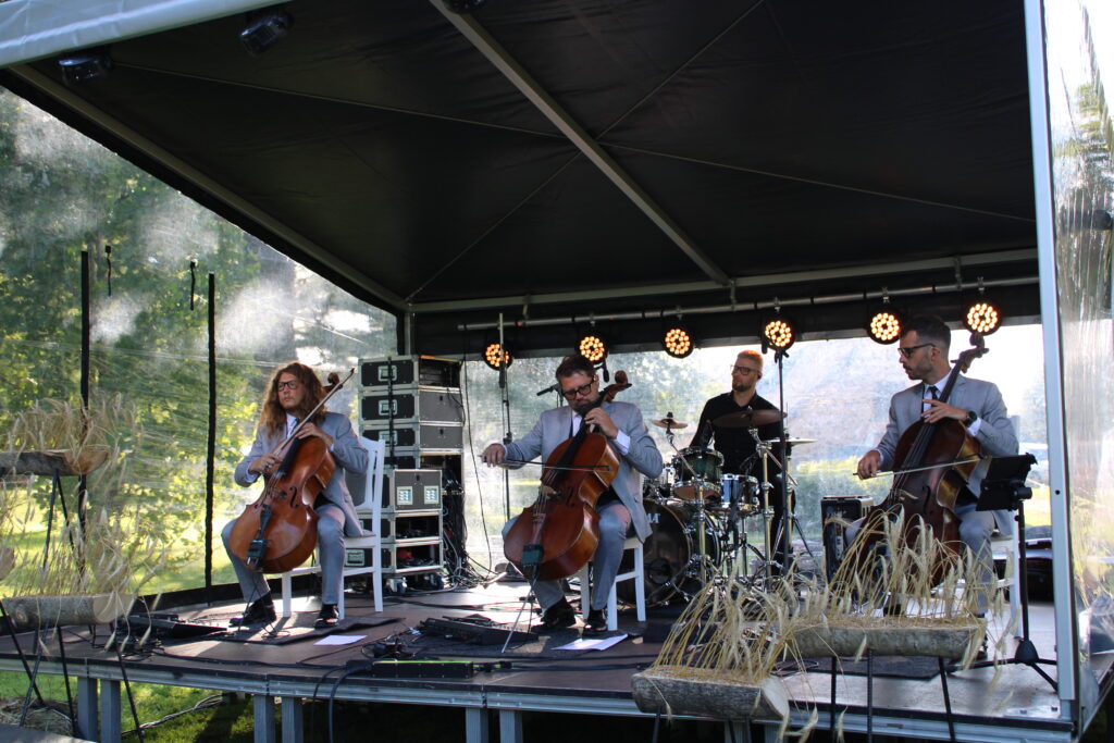 Pēc izstādes atklāšanas Mēru muižas parkā koncertu sniedza čellu trio “Melo -M”.