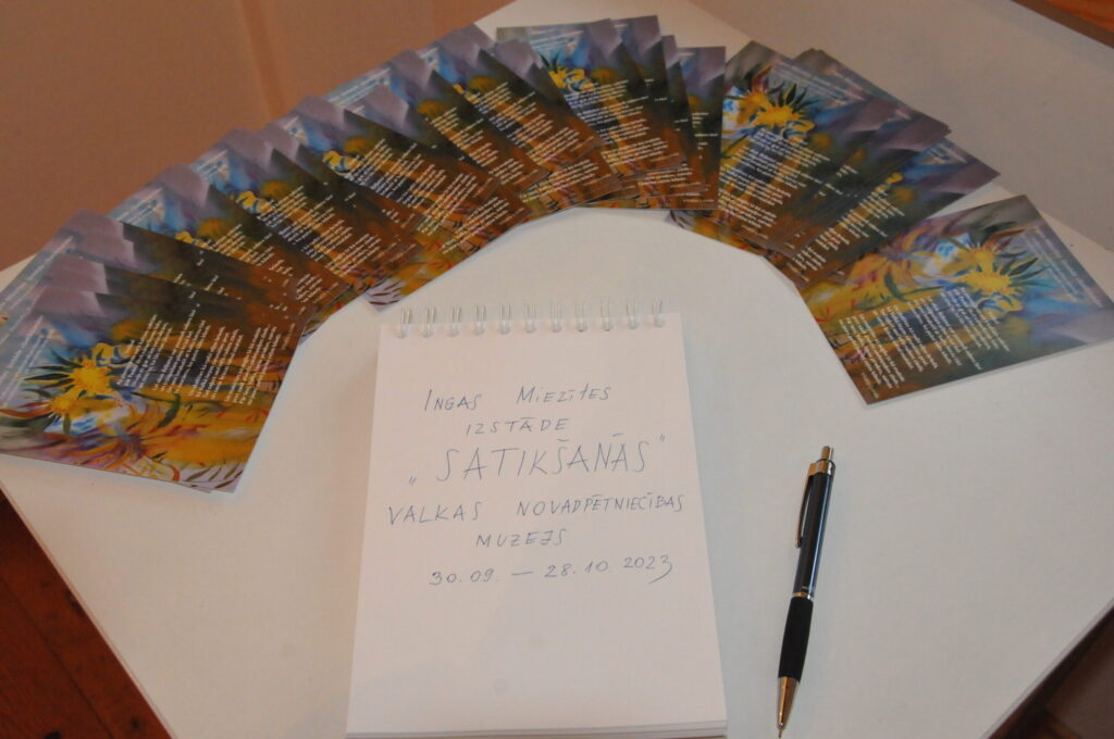 Sestdien, 30. septembrī, Valkas novadpētniecības muzejā atklāja valcēnietes, kuras dzīves ceļš aizvijies līdz Cēsīm, Ingas Miezītes pirmo personālizstādi “Satikšanās”. Sirsnīgajā pasākumā satikās Ingas mamma, Valkā pazīstamā rokdarbniece Ārija Lozda, mākslinieces tētis – žurnālists un dzejnieks Vitālijs Lozda, kurš notikušo vēroja no mākoņa maliņas un Ingas mazmeitiņa – Elza, kurai arī ļoti patīk zīmēt un radoši izpausties. Izstādē satikās Ingas radi, draugi un klasesbiedri, kā arī kolēģi no Draudzīgā aicinājuma Cēsu valsts ģimnāzijas. Izstādē apskatāmi mākslinieces zīmētie akvareļi. Muzeja izstāžu zālē zied Ingas Miezītes darbos zied krāšņi ziedi, bet muzeja pagalmā – rudens rozes.