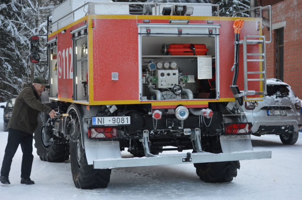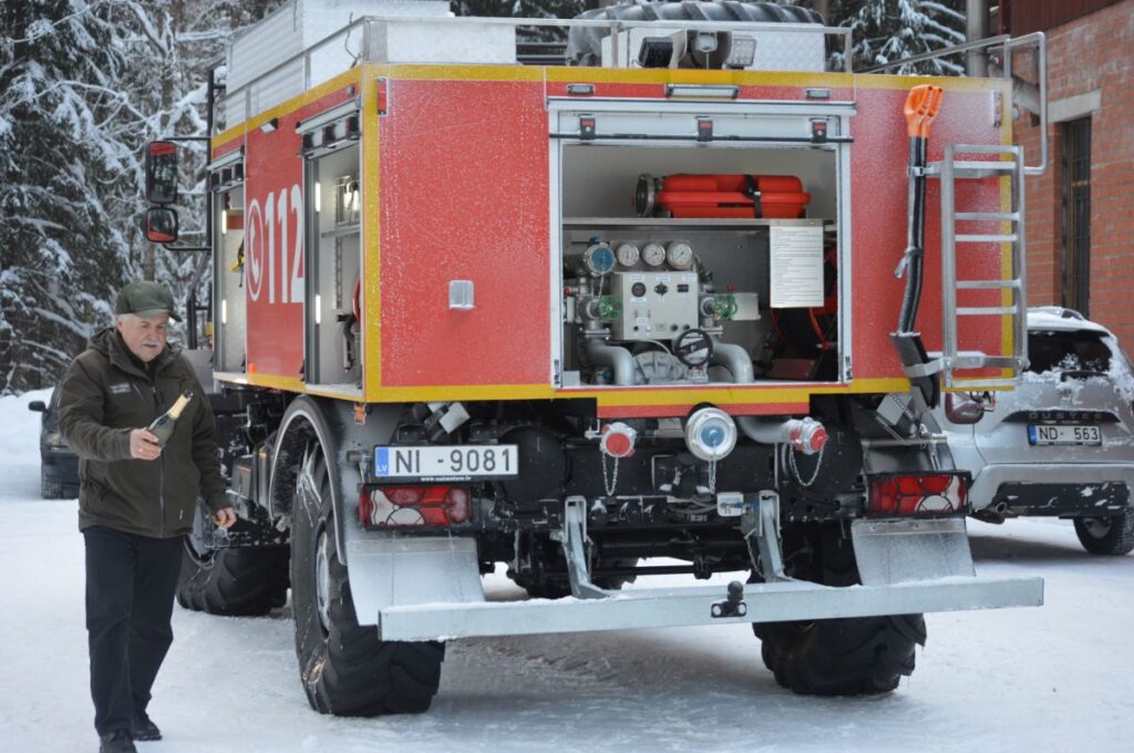 Valsts meža dienesta Ziemeļaustrumu virsmežniecība saņēmusi jaunu, šogad ražotu un īpaši meža ugunsgrēku dzēšanai pielāgotu automašīnu “Mercedes Benz Unimog”.