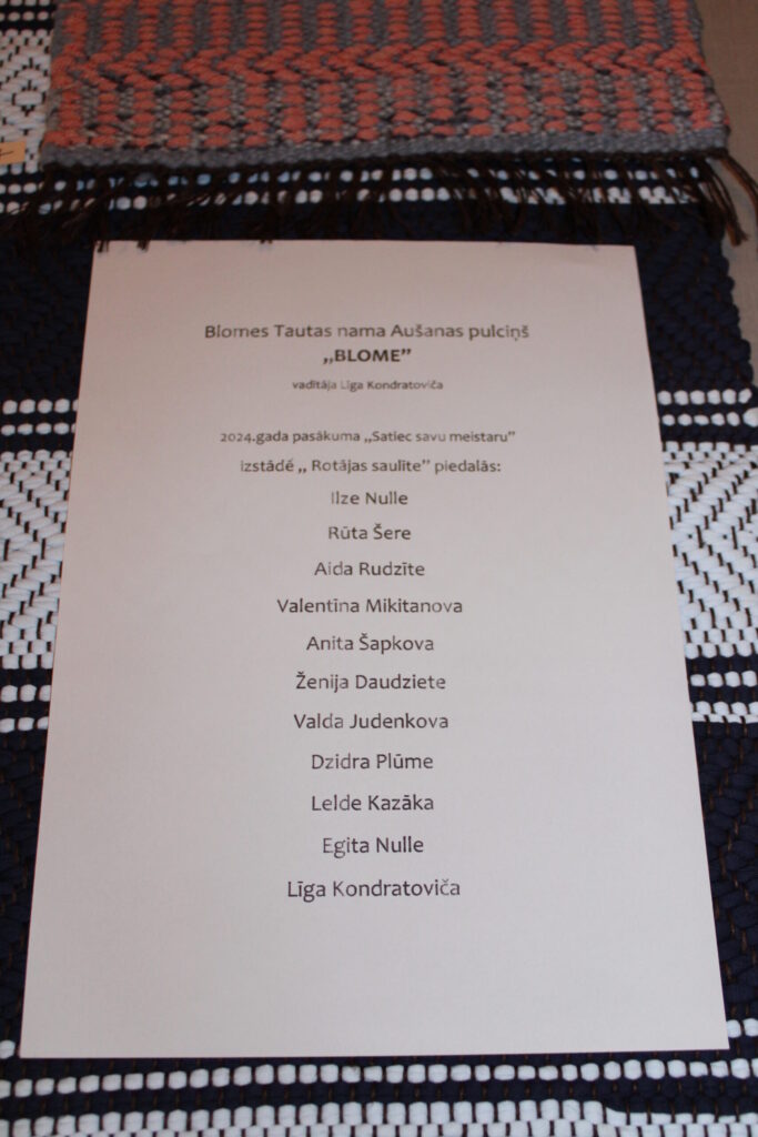 Piektdien, 5. aprīlī, “Satiec savu meistaru” “ienāca” Smiltenes novada Blomes tautas namā, kur tika atklāta Blomes tautas nama rokdarbnieču pulciņa “Blumenhof”, aušanas pulciņa “Blome” un Cēsu novada Liepas rokdarbnieču pulciņa “Liepas kamolītis” rokdarbu izstāde “Rotājas saulīte”.