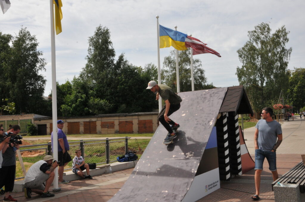 Sportists ar pavisam vienkāršu skrituļdēli un bez jelkādiem ceļu un elkoņu aizsargiem skatītājiem demonstrēja elpu aizraujošus trikus. Šo interesanto pasākumu rīkoja Baltijas valstīs lielākais Sporta muzejs- Igaunijas Sporta un Olimpiskai muzejs no Tartu par godu ekstrēmo sporta veidu izstādes atklāšanai. Skeitbordistu paraugdemonstrējumu ar aplausiem sveica gan igauņi, gan arī latvieši. Daudzi redzēto iemūžināja savās viedierīcēs.
