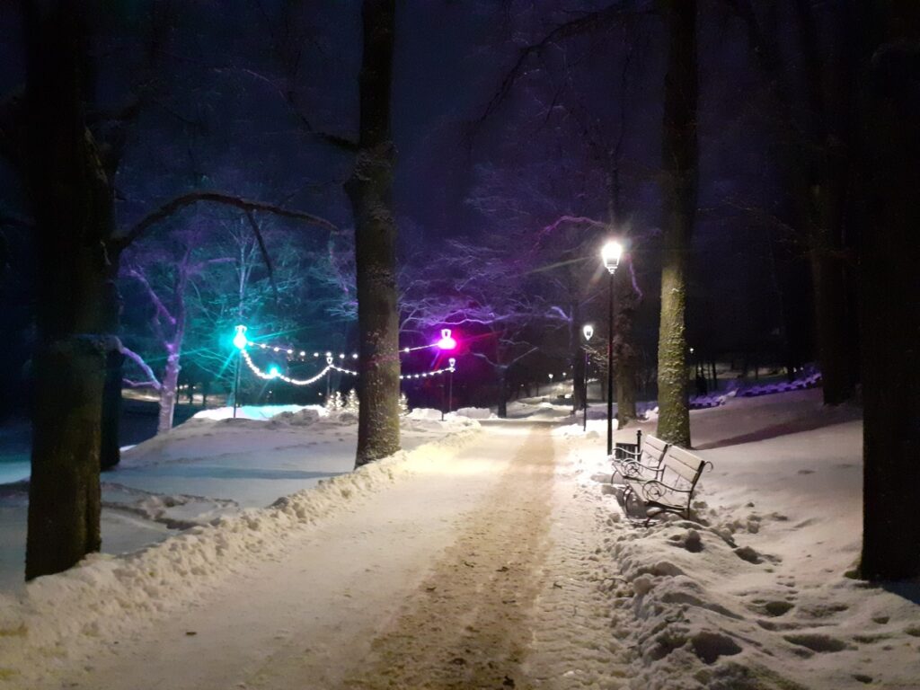 Tikmēr Ziemassvētku noskaņa jau ienākusi Smiltenes centrā, pie novada Kultūras centra un Vecajā parkā, kas ir lieliska vieta pastaigām, it īpaši vakarā, kad tiek izgaismota estrāde pie Vidusezera un sirdsveida dekors pie Parka viesnīcas “Brūzis”.