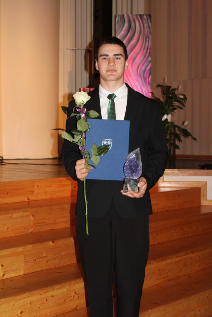 “Gada balva par augstiem sasniegumiem mācību darbā profesionālās ievirzes (mūzika, māksla) un interešu izglītībā” – Smiltenes Mūzikas skolas 5. eifonija spēles klases audzēknim Elmāram Lapiņam.
