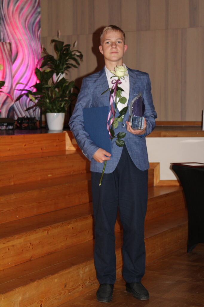 “Gada balva par augstiem sasniegumiem mācību darbā pamatskolas posmā” – Dāvja Ozoliņa Apes pamatskolas 9. klases skolēnam Tomasam Gustavam Celenbergam.