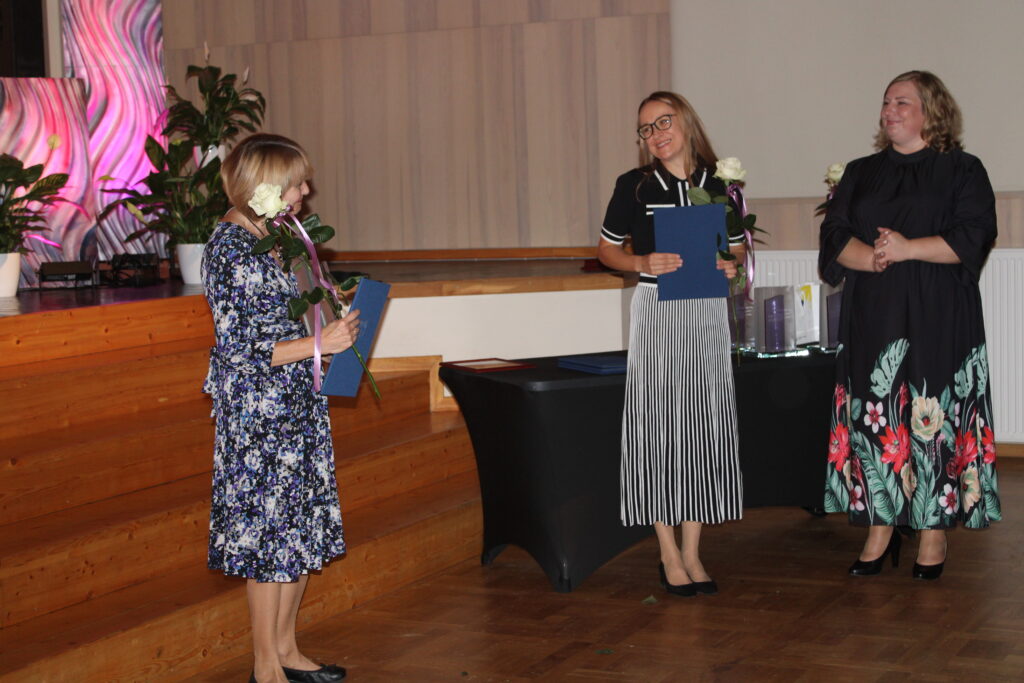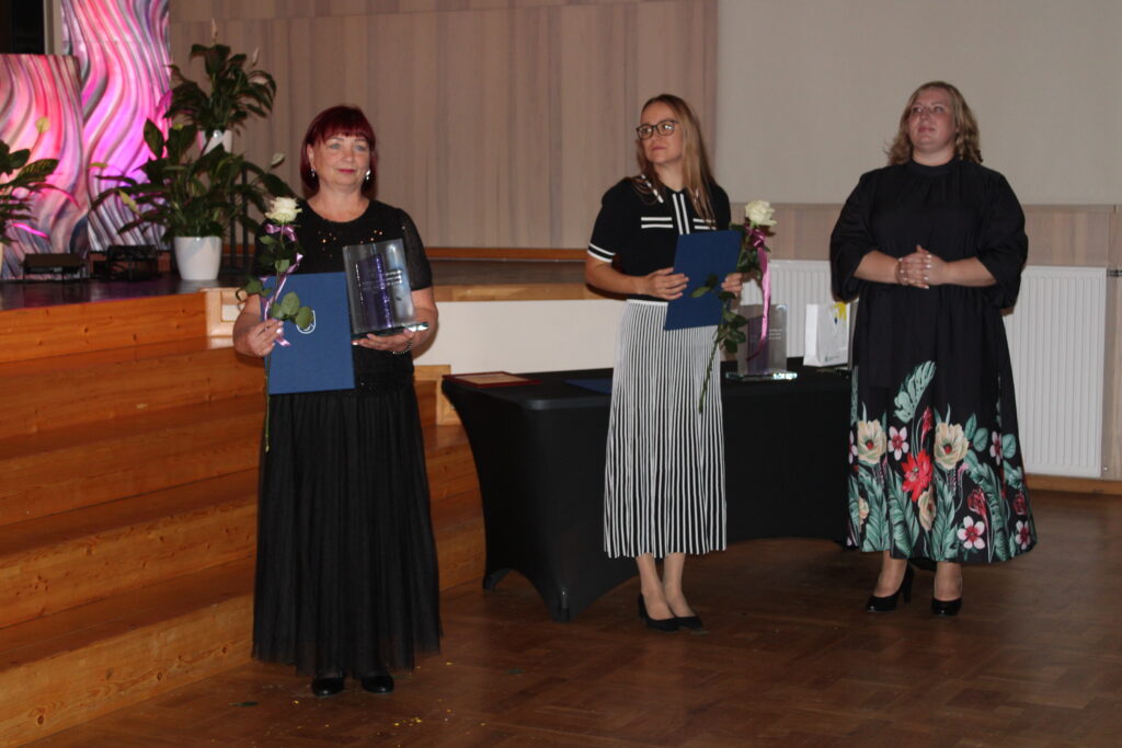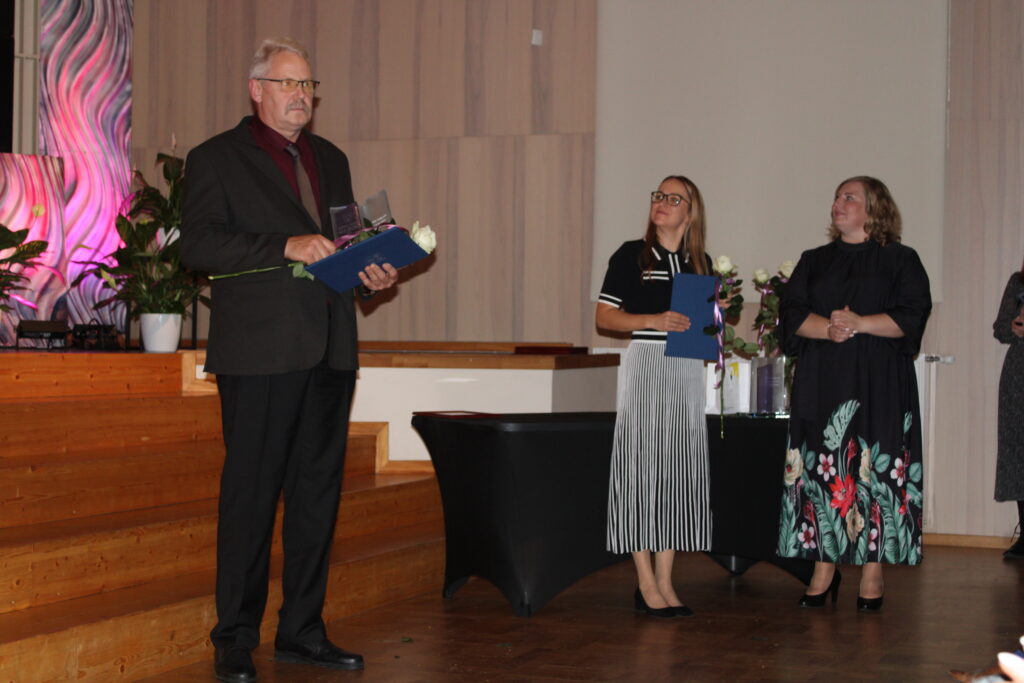 “Gada balva izglītības procesa atbalstam” – Dāvja Ozoliņa Apes pamatskolas skolotājai Aldai Liepiņai un Raunas pamatskolas saimniecības pārzinim pirmsskolā Zintim Volosovam.