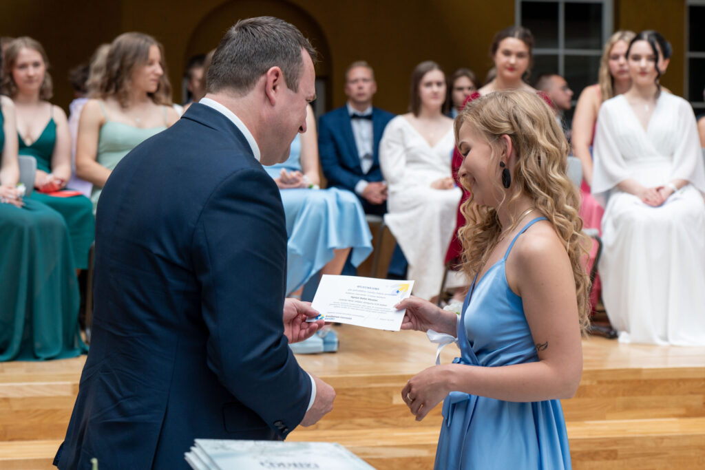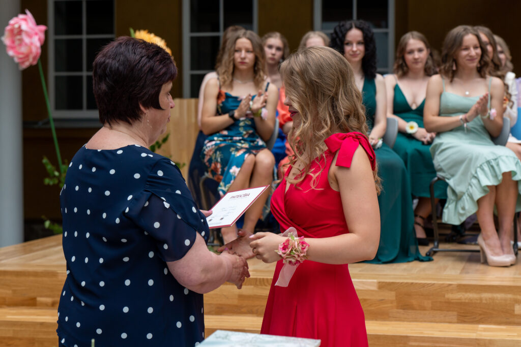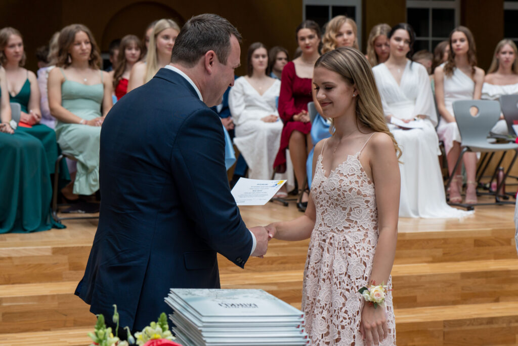 12.klases absolvente Kristiāna Kļaviņa izlaidumā par augstiem mācību sasniegumiem un aktīvu sabiedrisko darbu saņēma Ministru prezidenta Atzinības rakstu, skolas ilggadējo mecenātu Annas un Birutas Zadiņas prēmiju un arī Smiltenes novada pašvaldības apliecinājumu par pašvaldības naudas balvu.