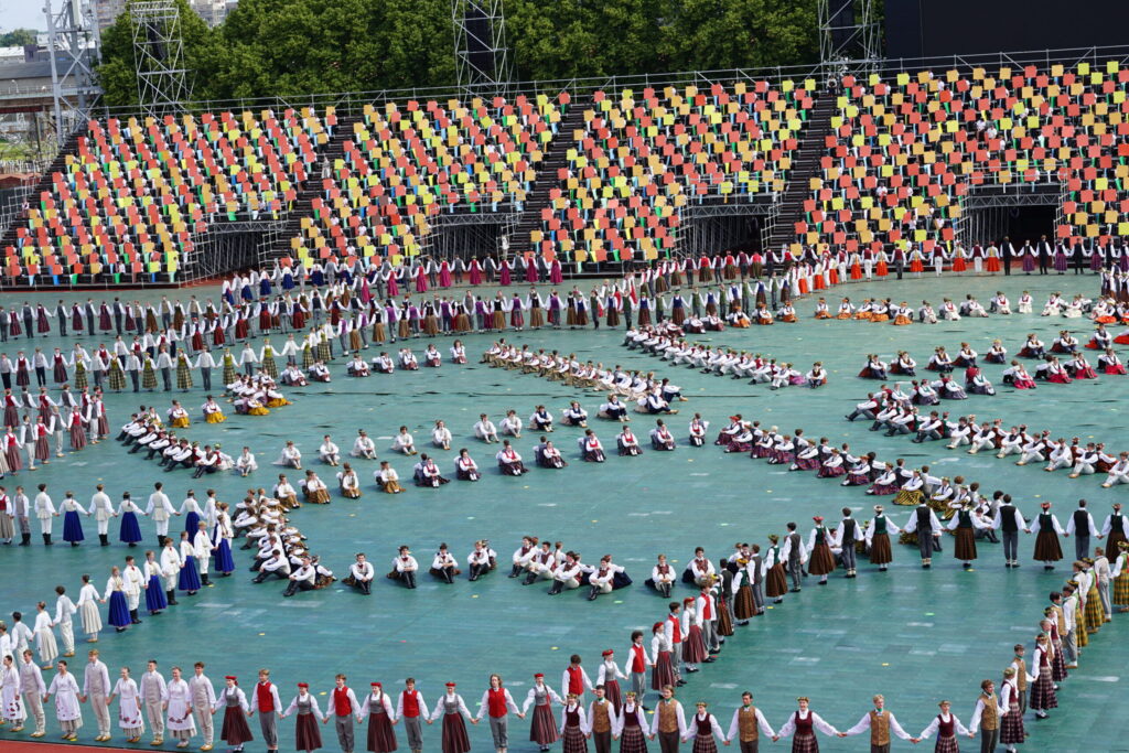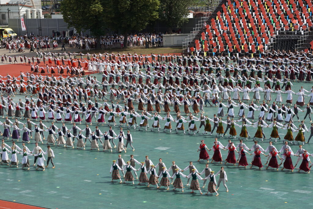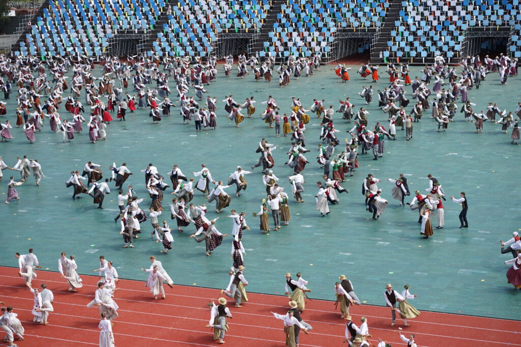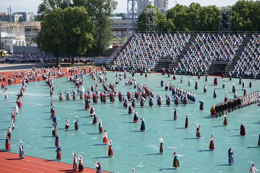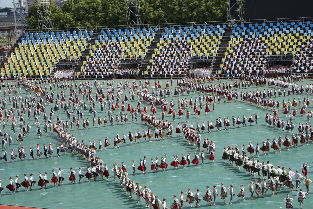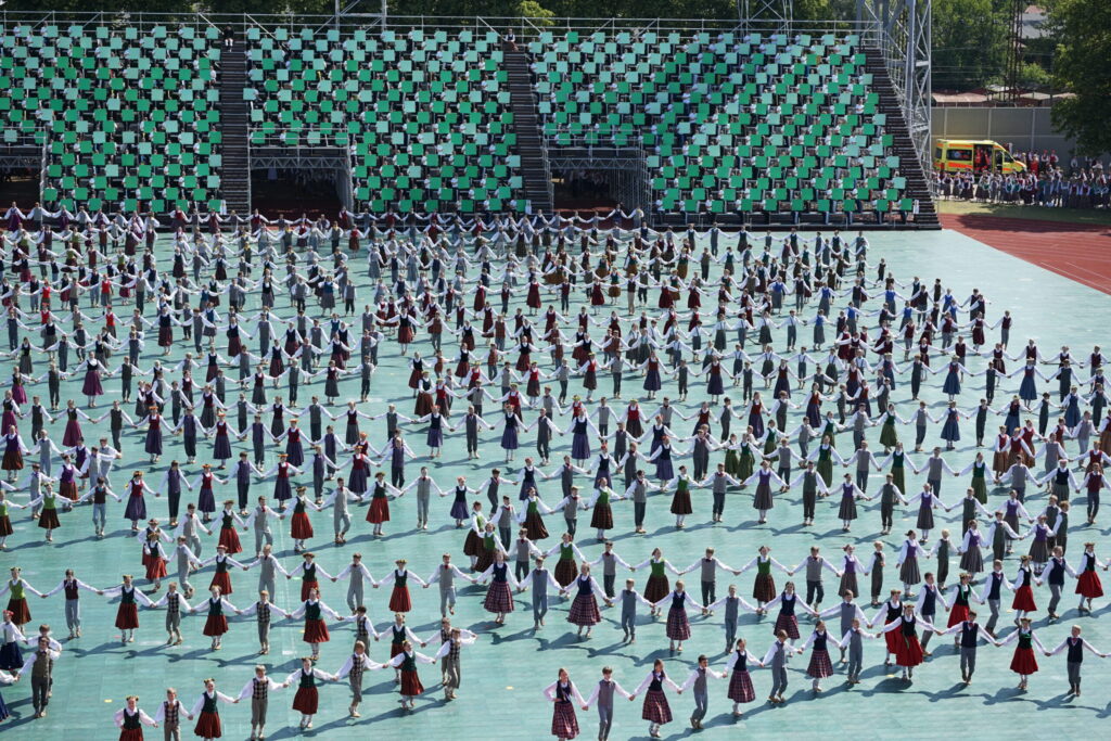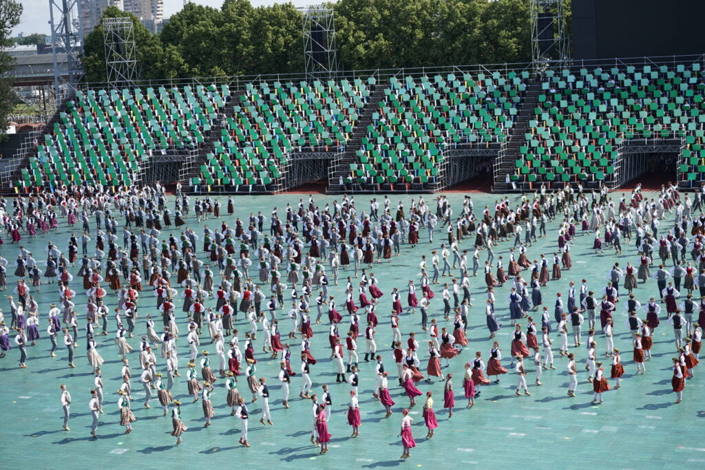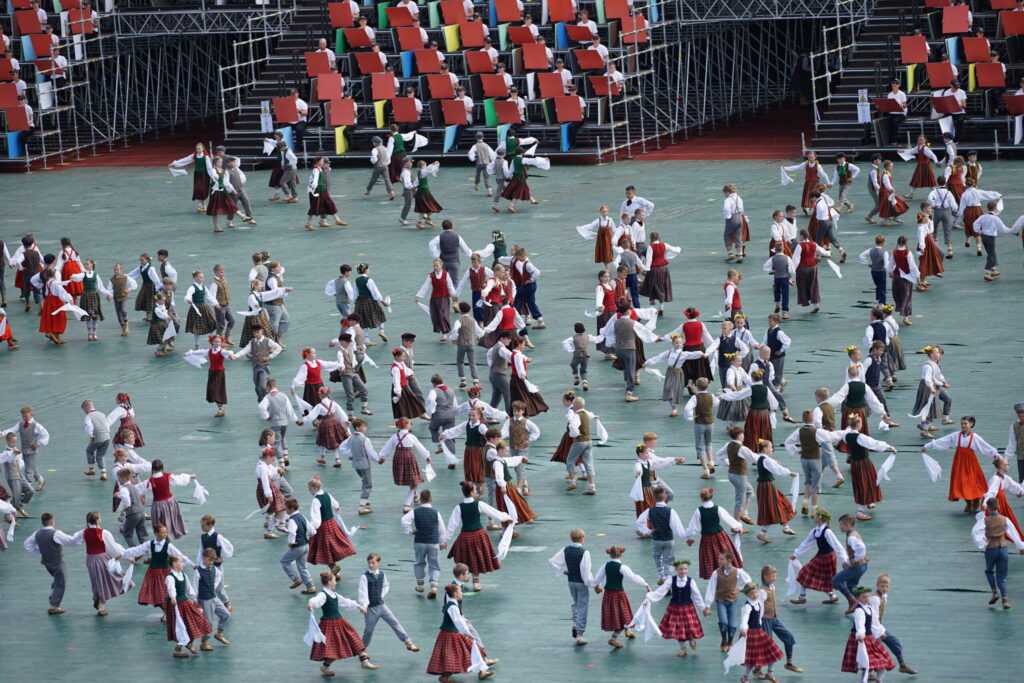 Deju lielkoncerta “Es atvēru Laimas dārzu” ģenerālmēģinājums Daugavas stadionā.