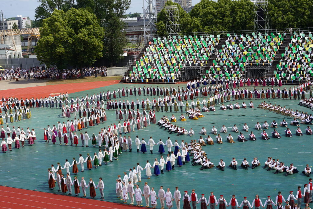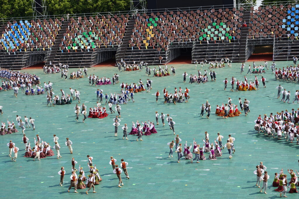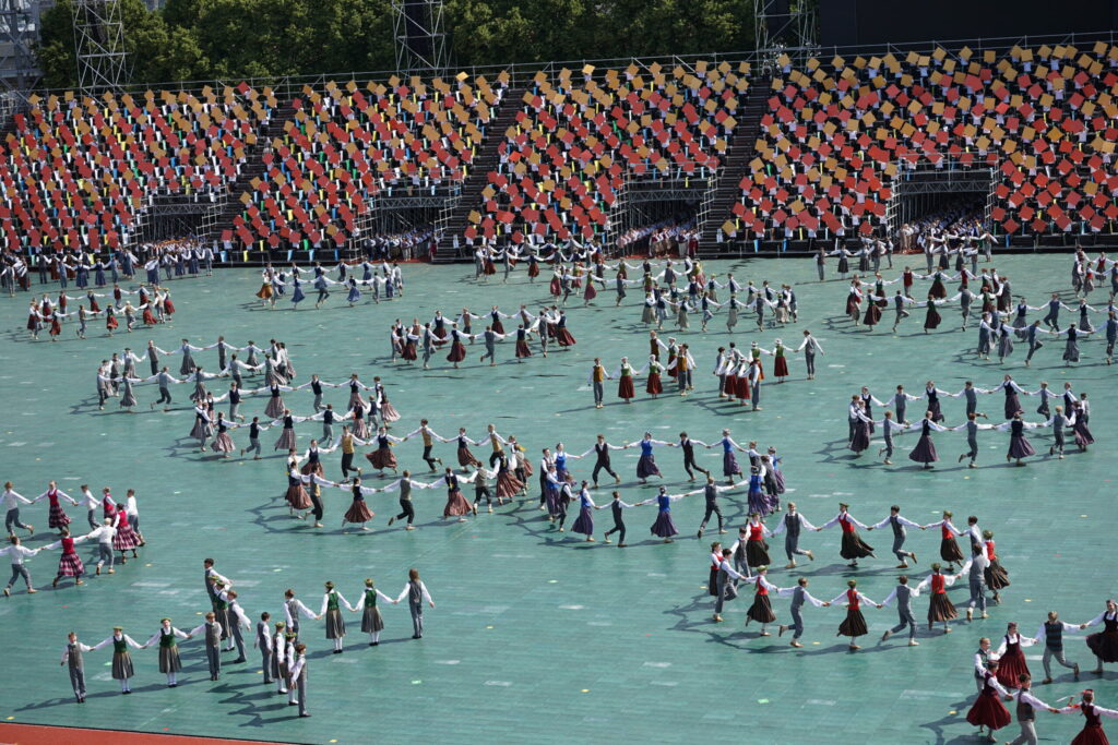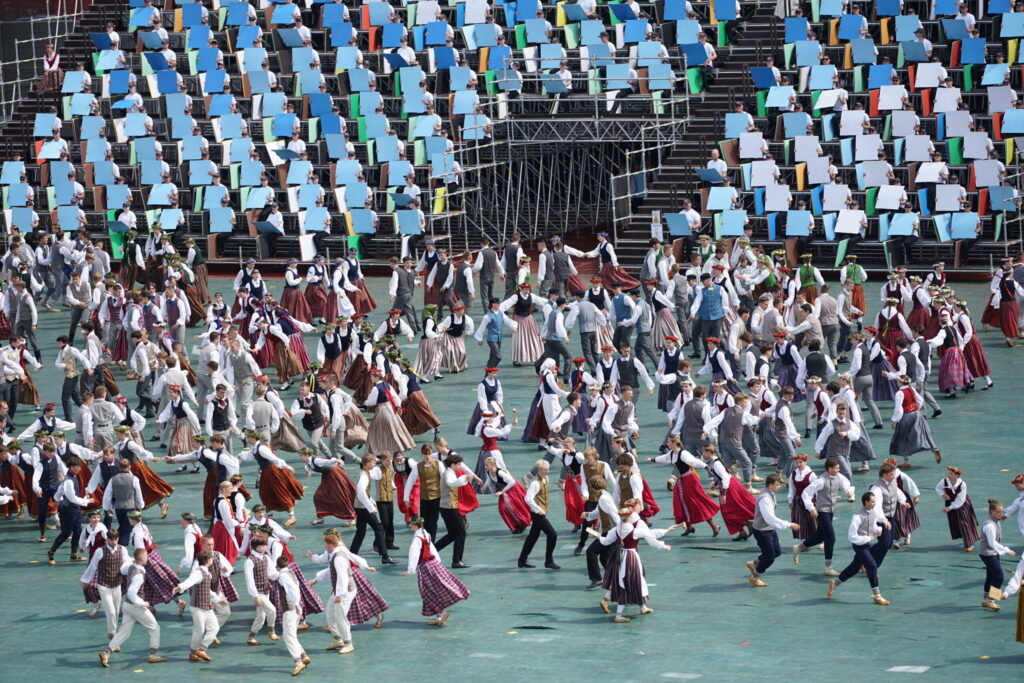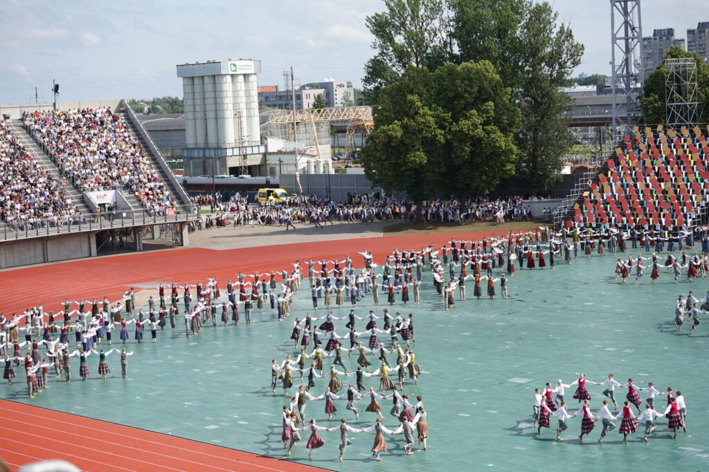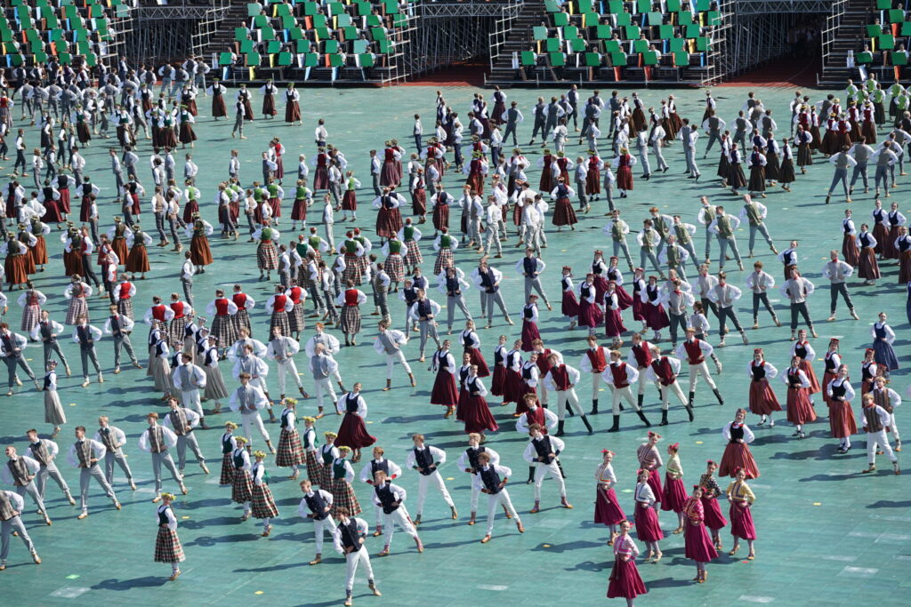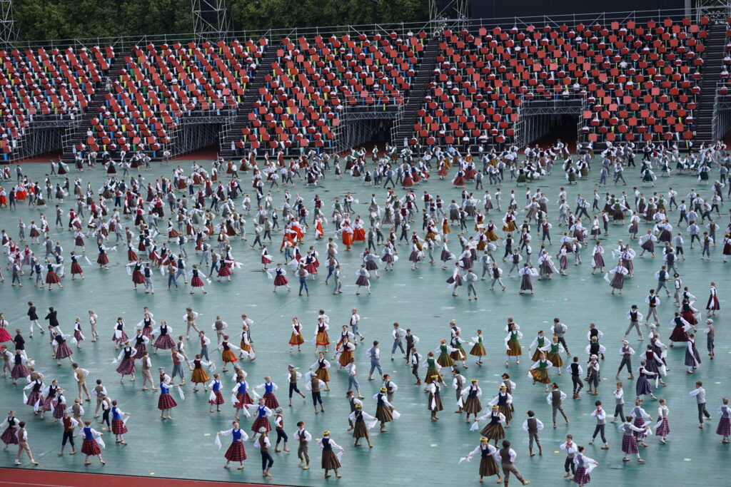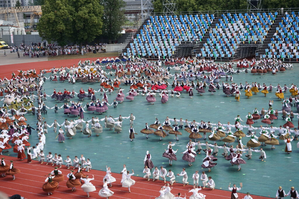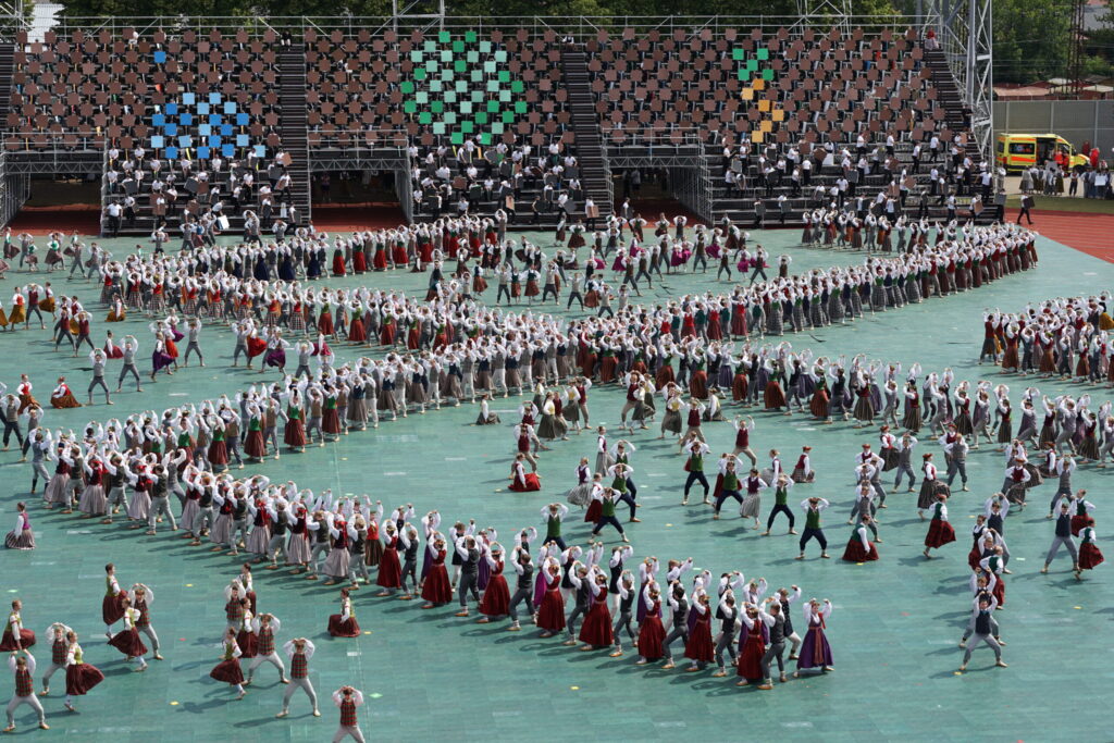 Deju lielkoncerta “Es atvēru Laimas dārzu” ģenerālmēģinājums Daugavas stadionā.