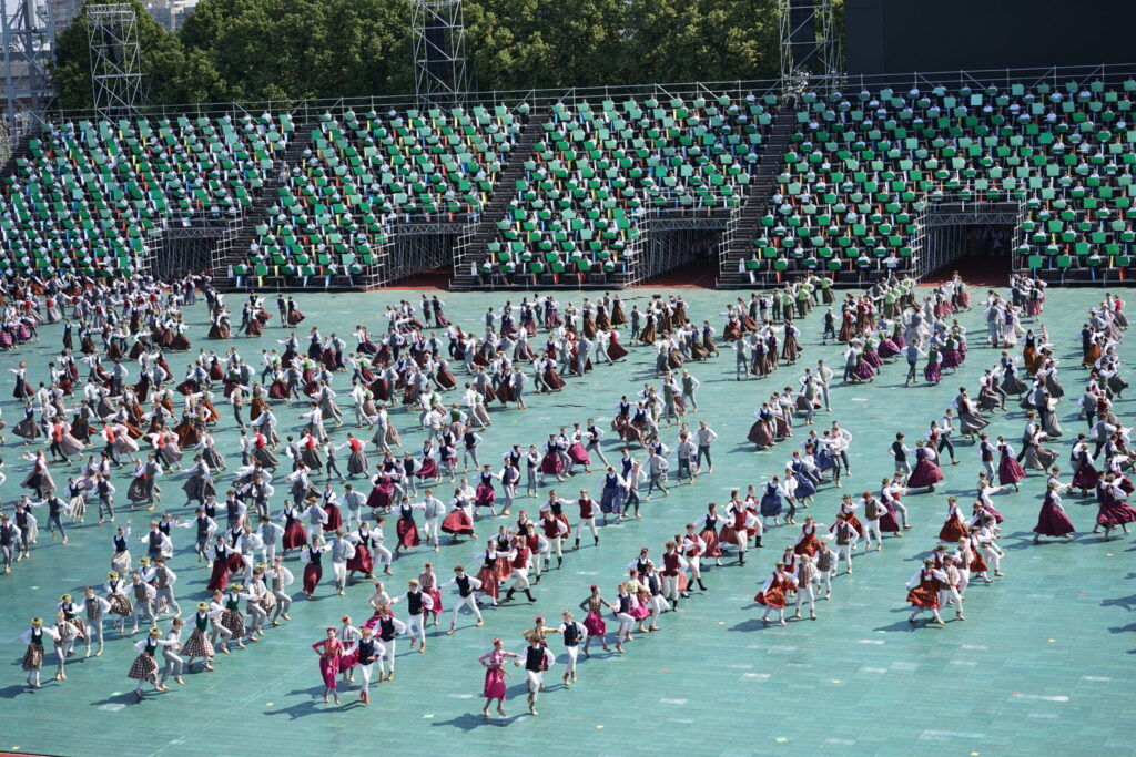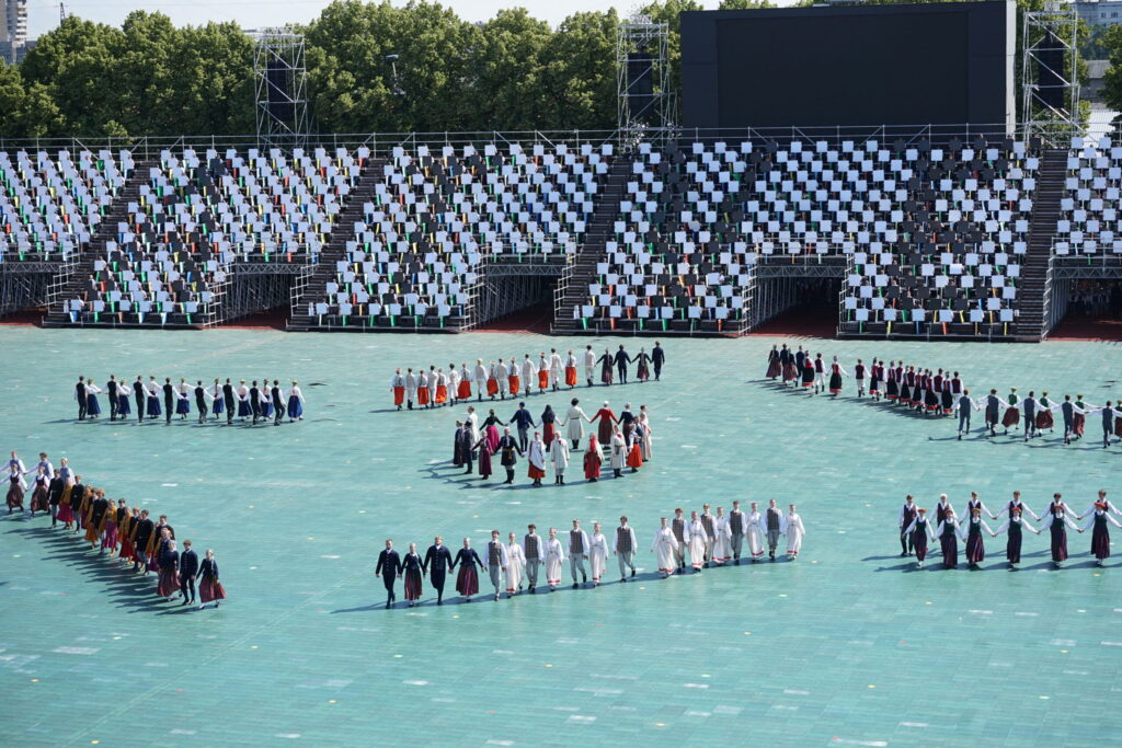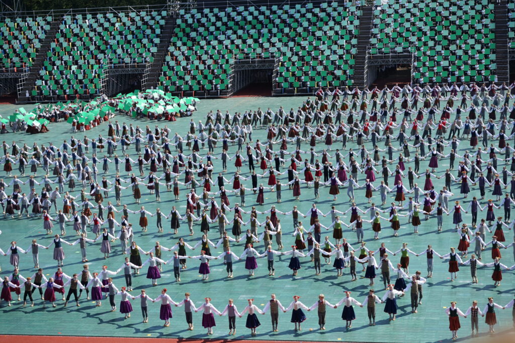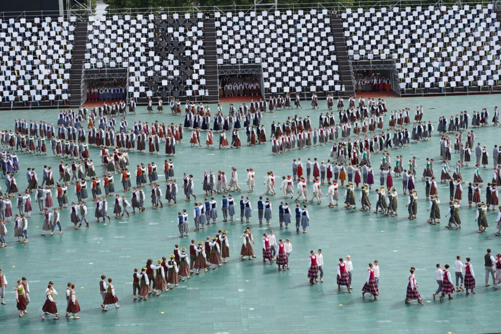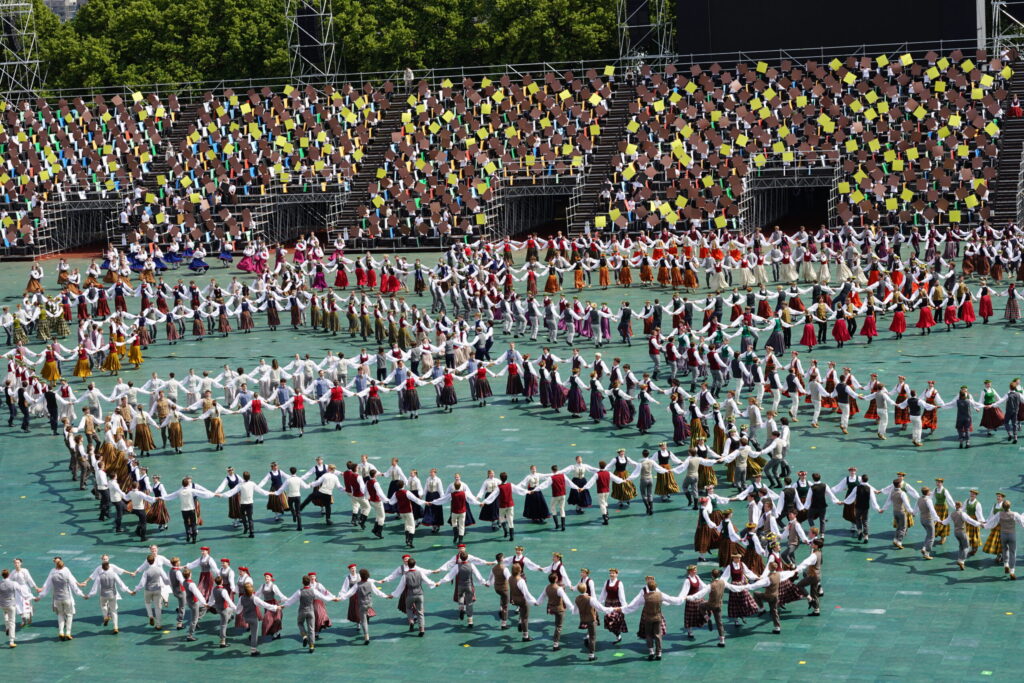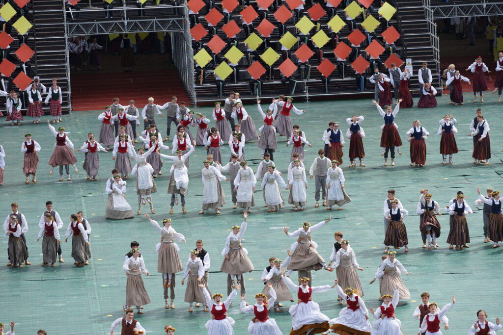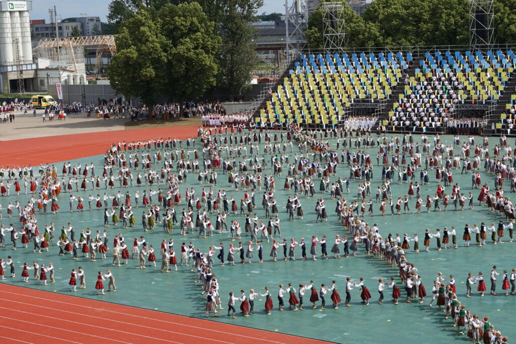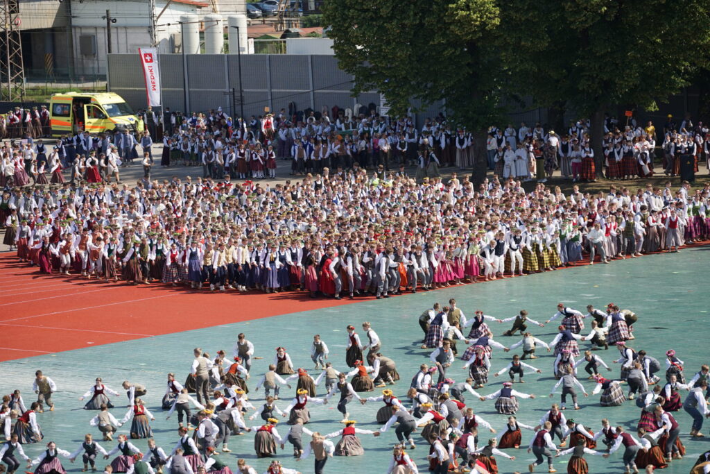Deju lielkoncerta “Es atvēru Laimas dārzu” ģenerālmēģinājums Daugavas stadionā.